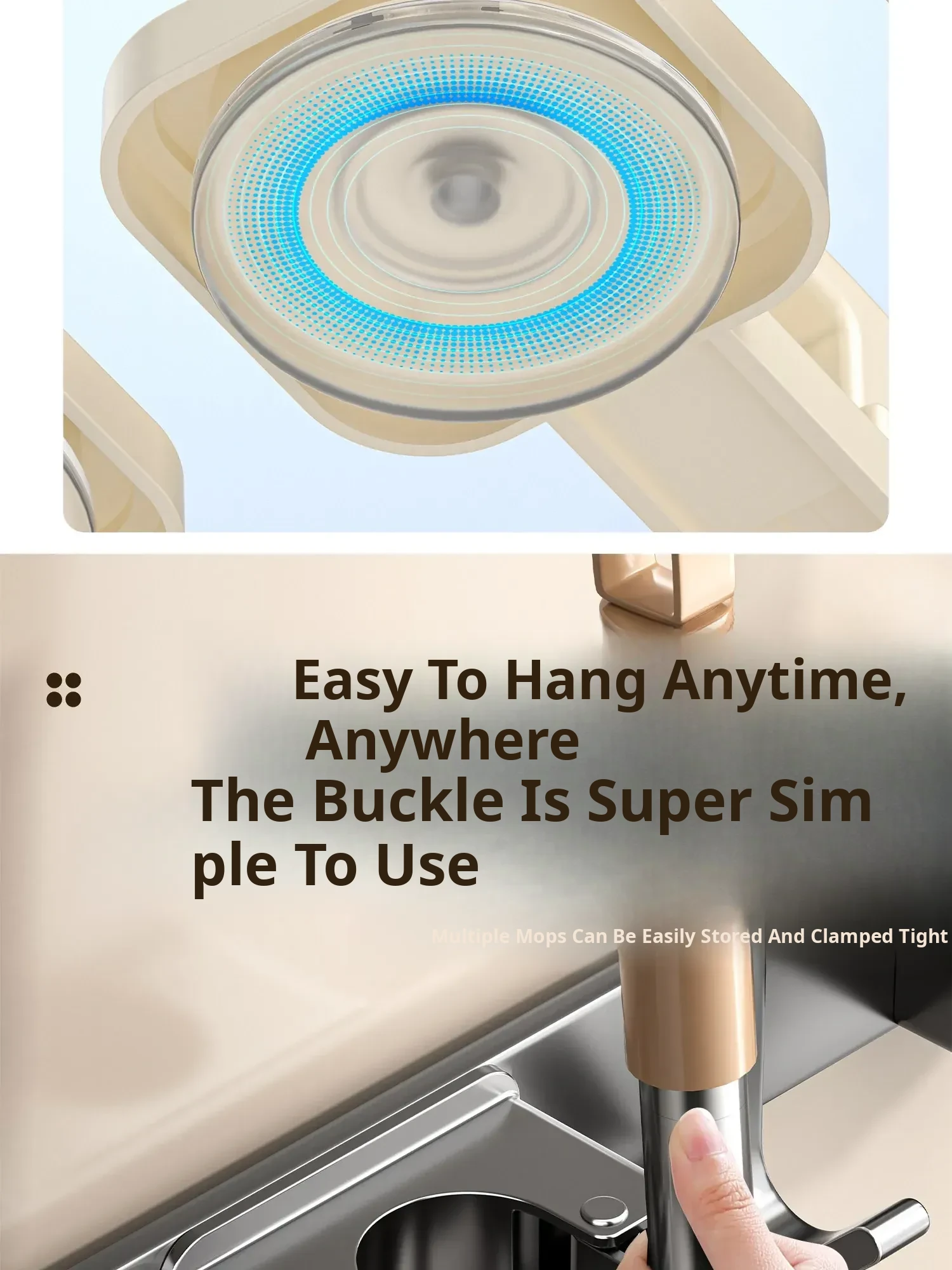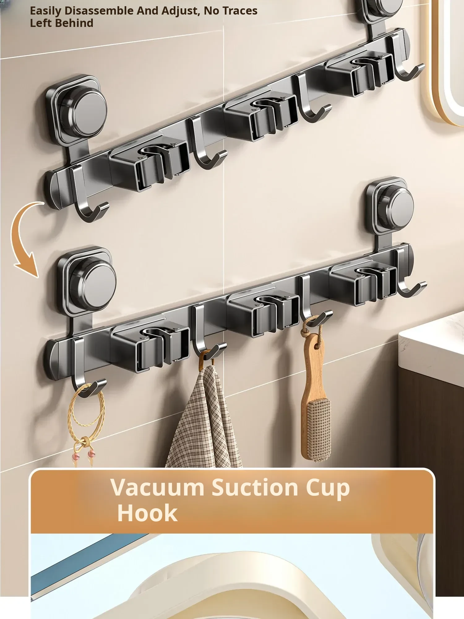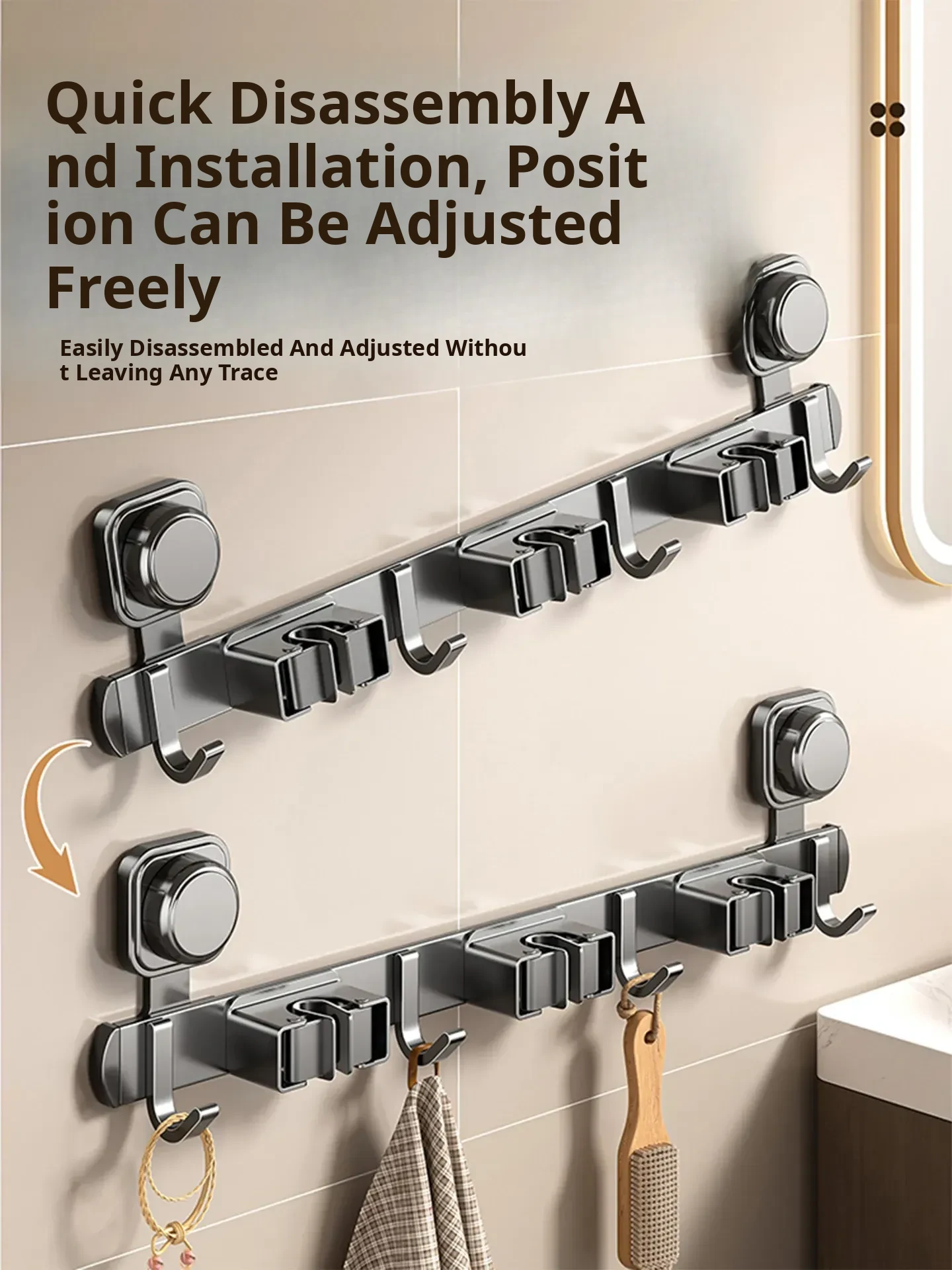 Suction Mop Holder - No Drill Wall-Mounted Broom and Mop Clip, Space-Saving Organizer for Bathroom, Perfect Storage Solution for Cleaning Tools