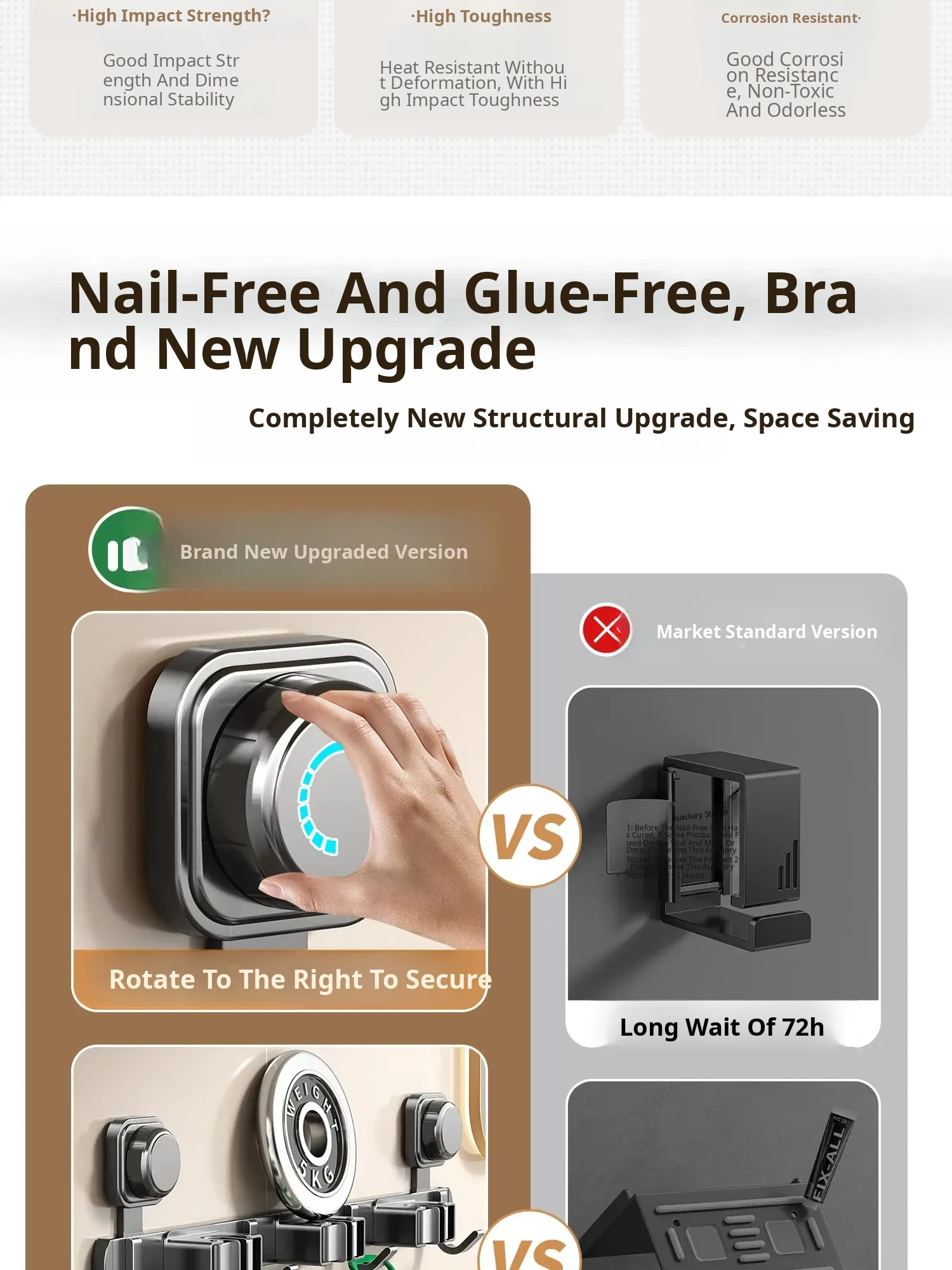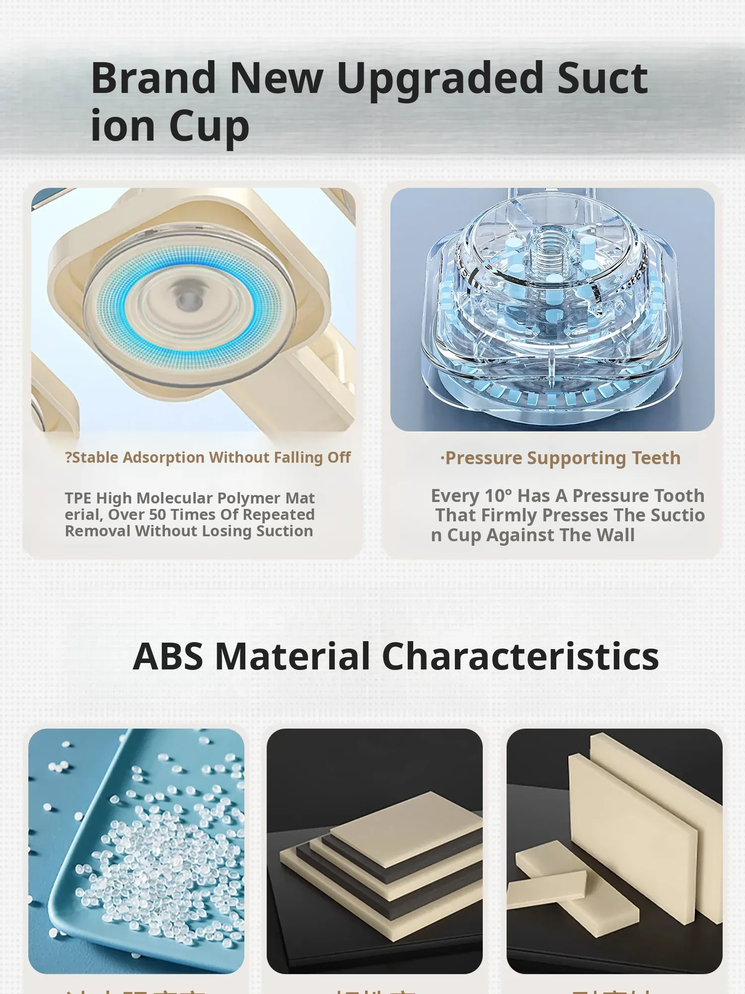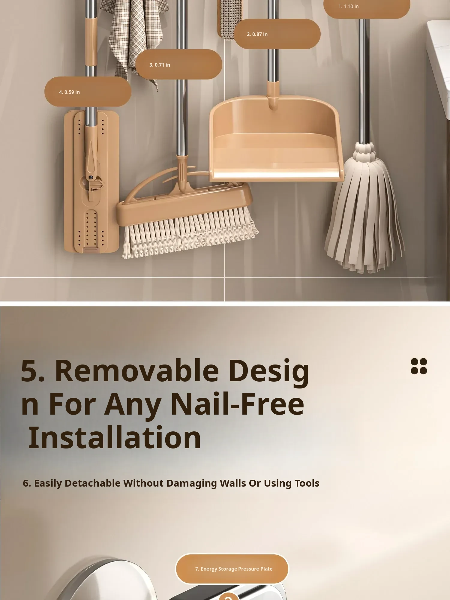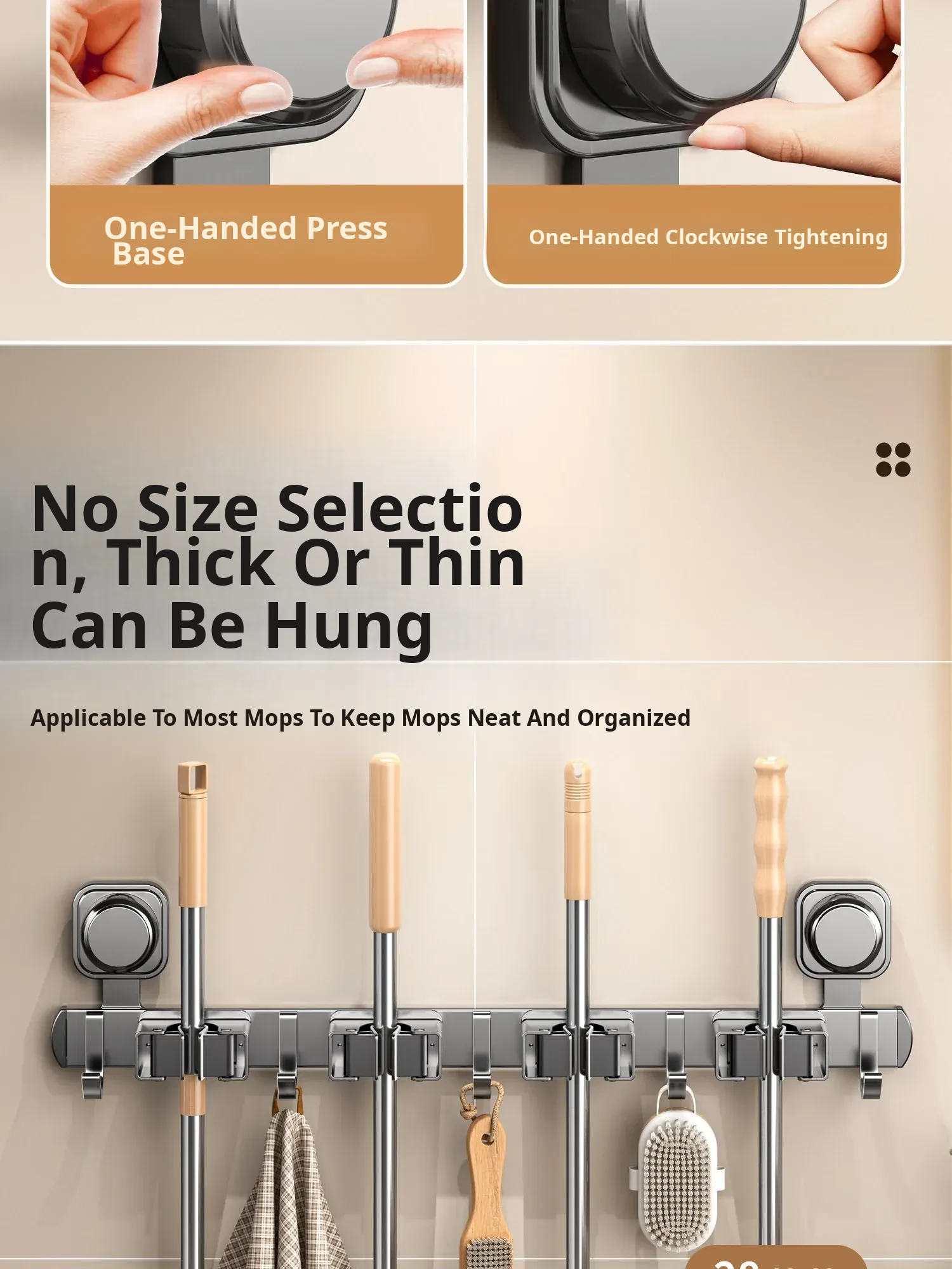 Suction Mop Holder - No Drill Wall-Mounted Broom and Mop Clip, Space-Saving Organizer for Bathroom, Perfect Storage Solution for Cleaning Tools