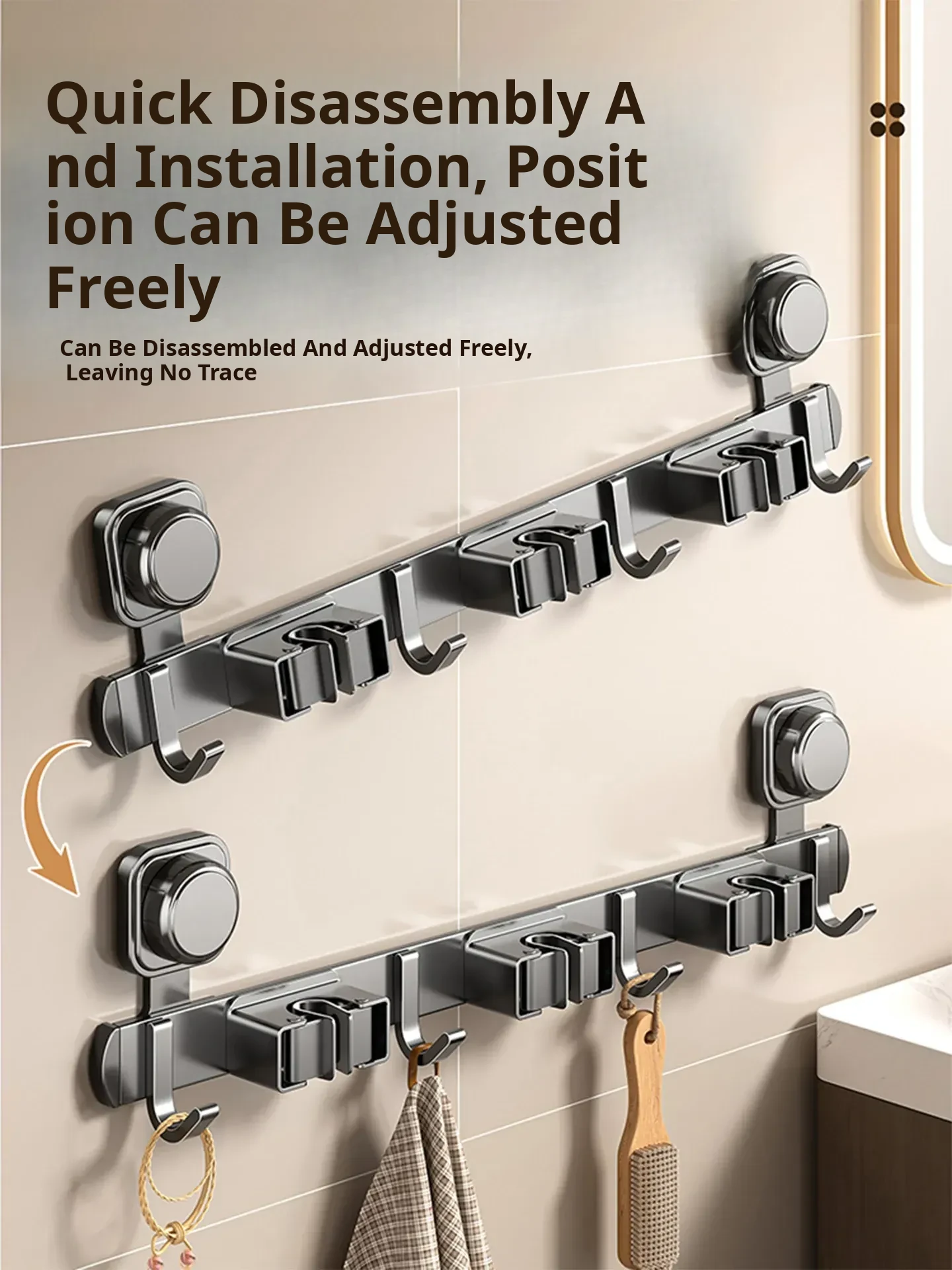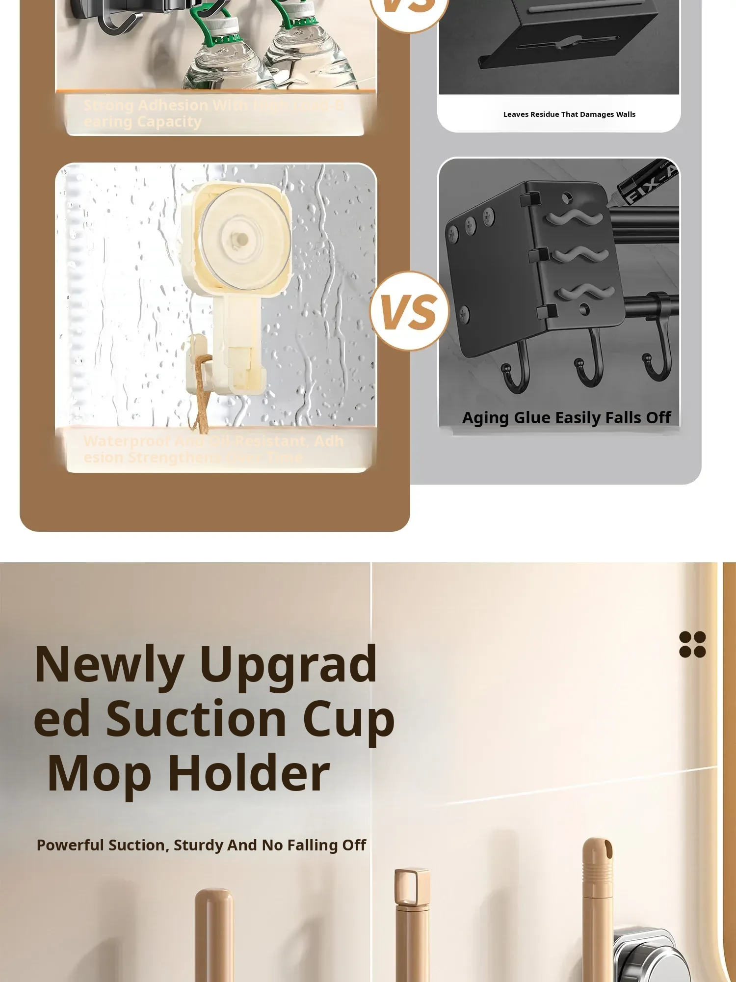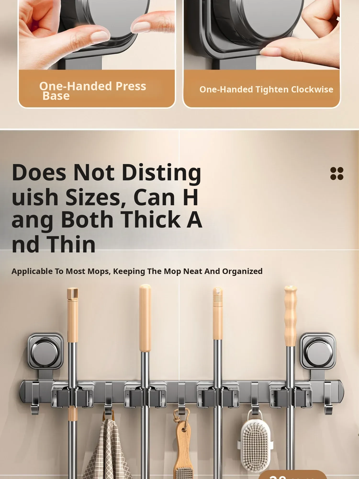 Suction Mop Wall-Mounted Holder - No Drill Hooks for Bathroom Storage - Organize Your Broom, Brush, and Cleaning Tools with Ease!