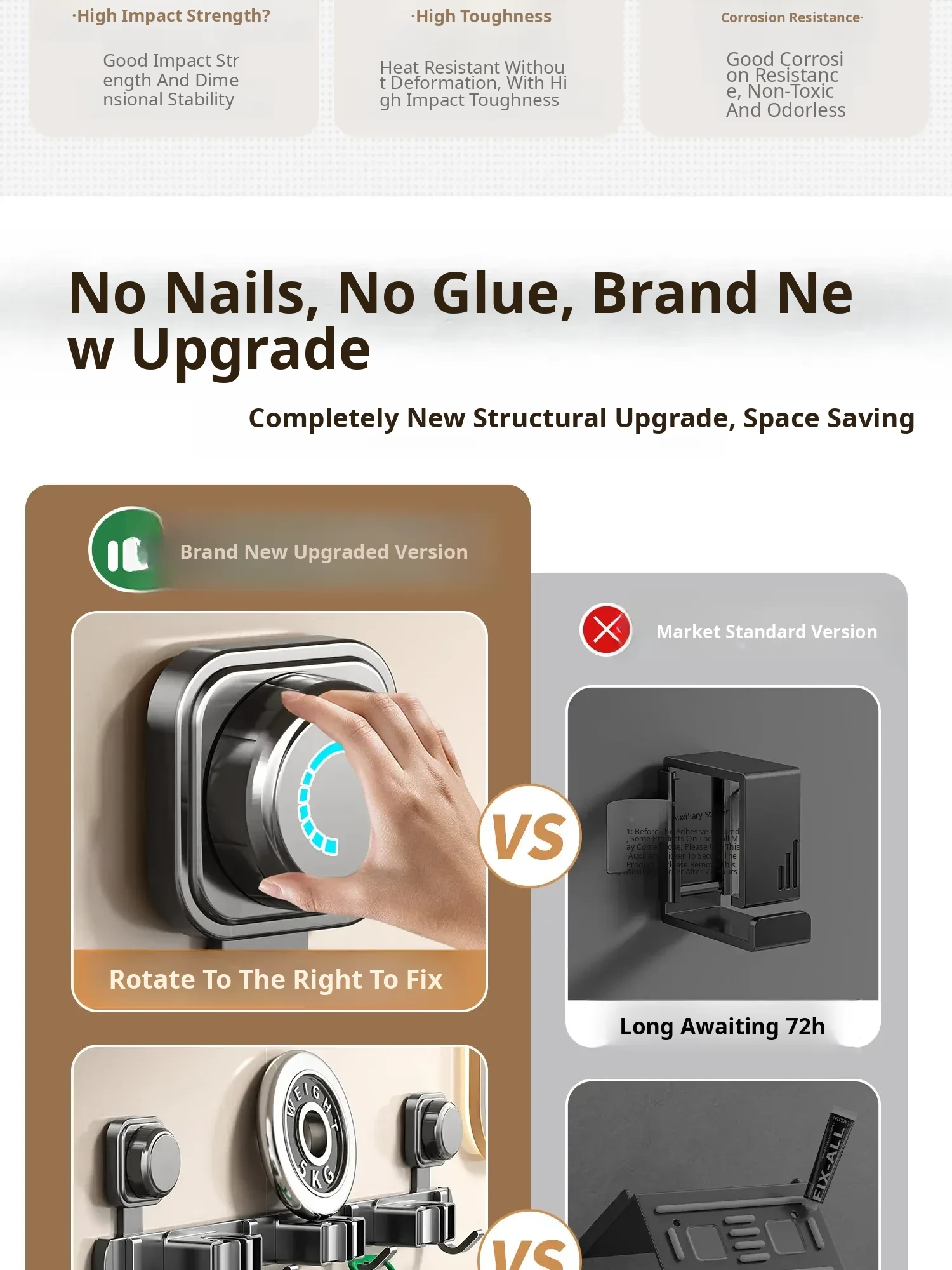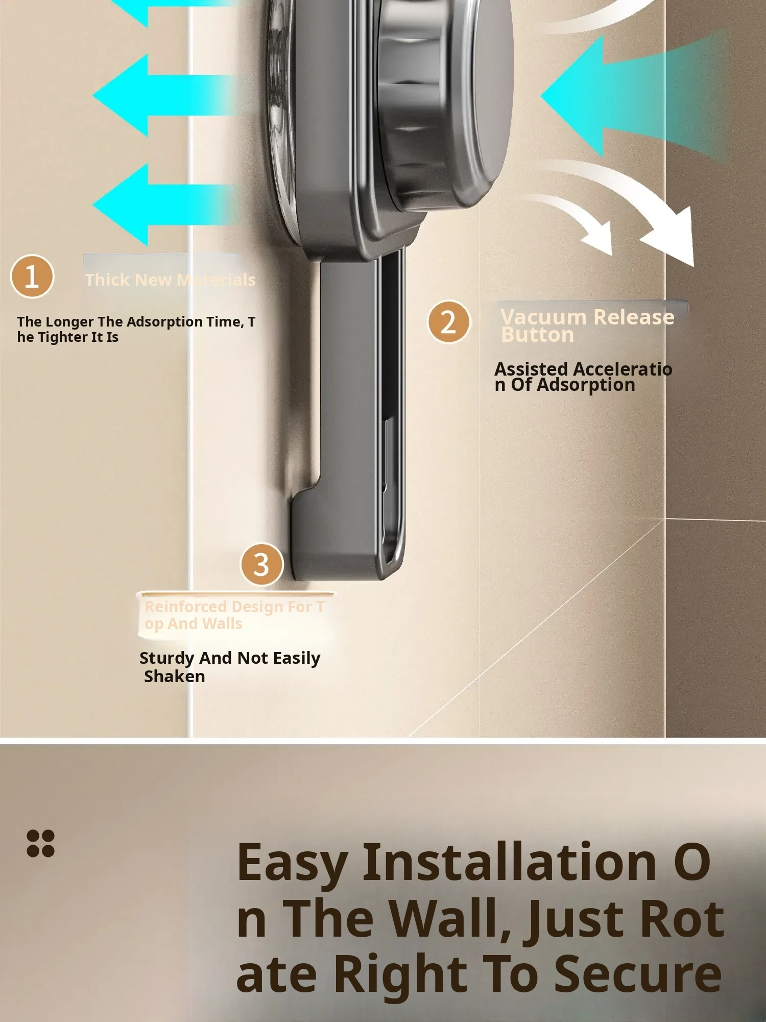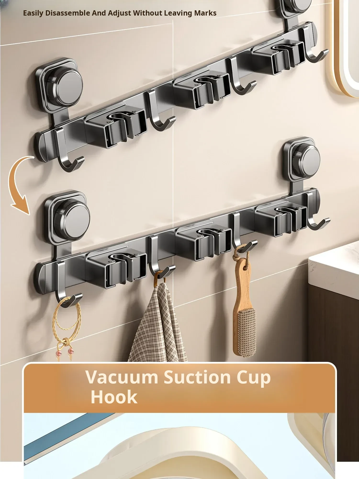 Suction Mop Wall-Mounted Holder - No Drill Hooks for Bathroom Storage - Organize Your Broom, Brush, and Cleaning Tools with Ease!