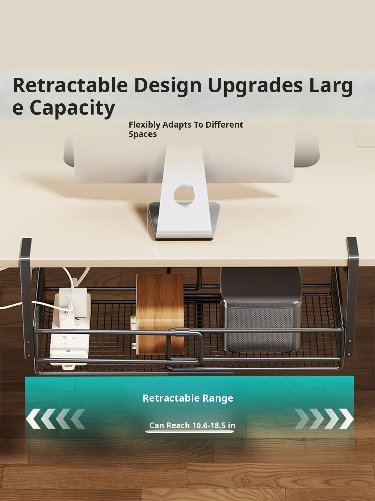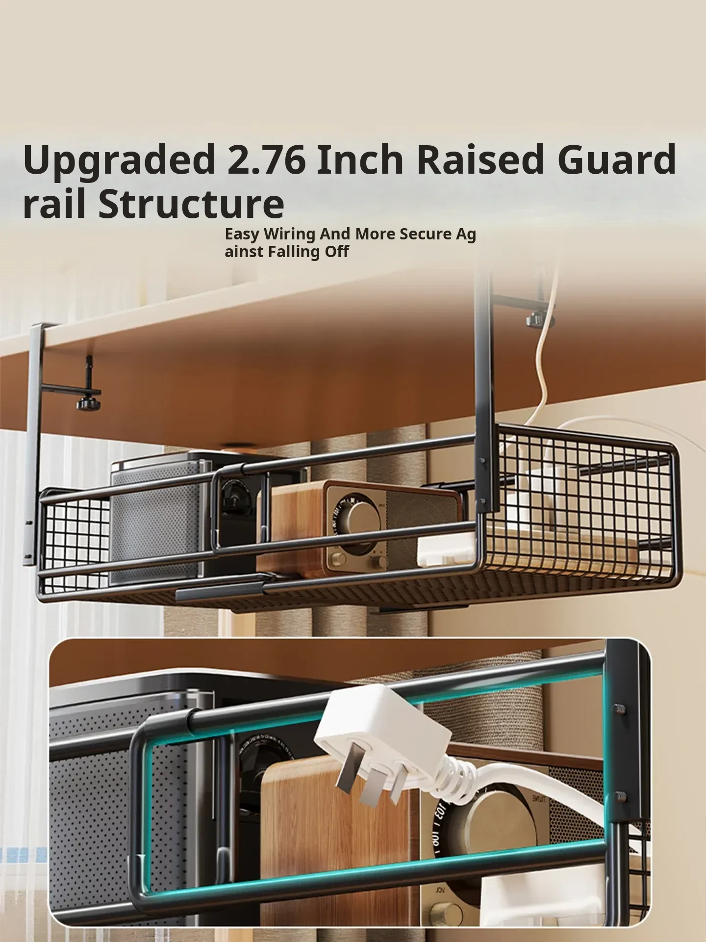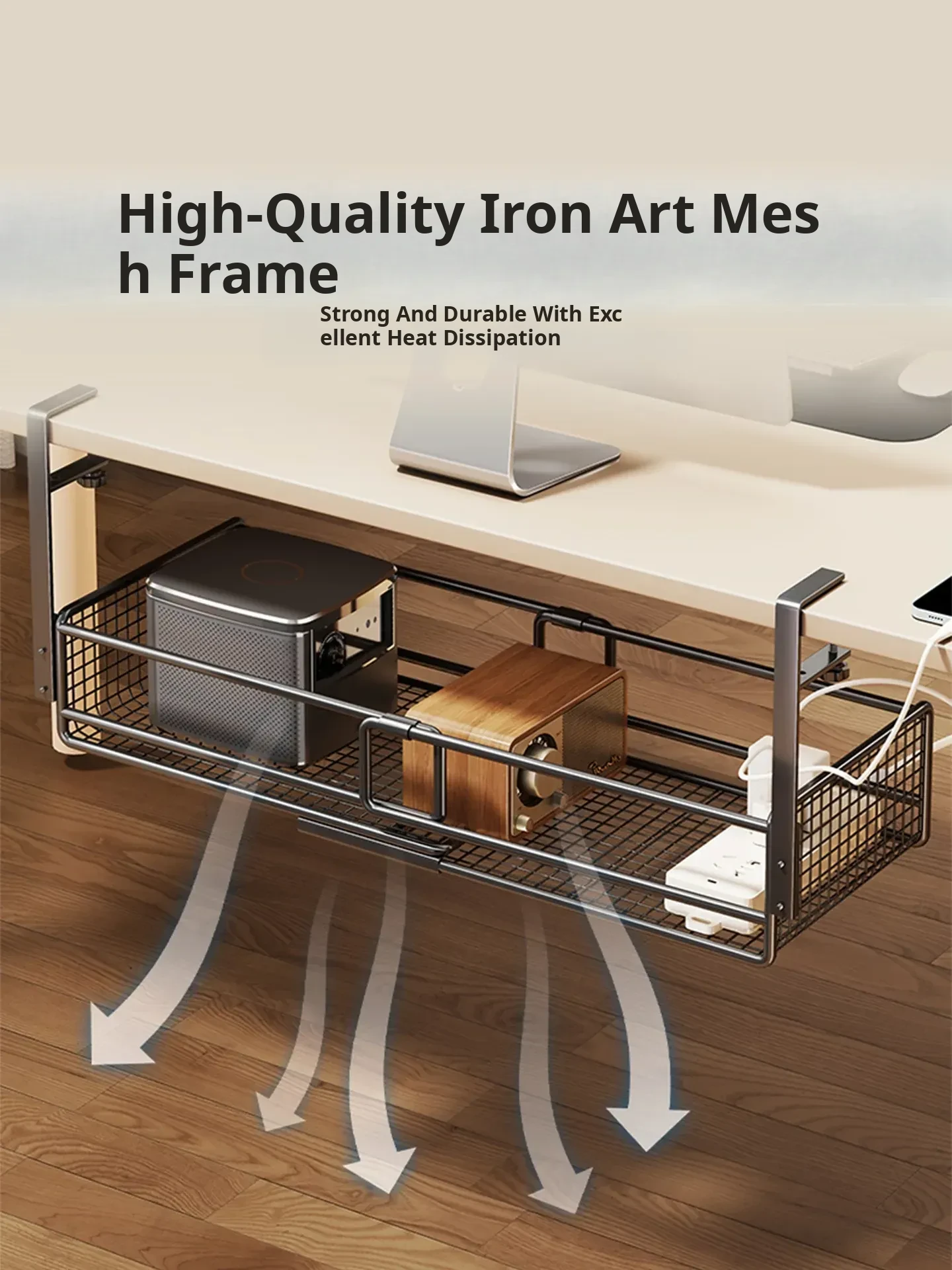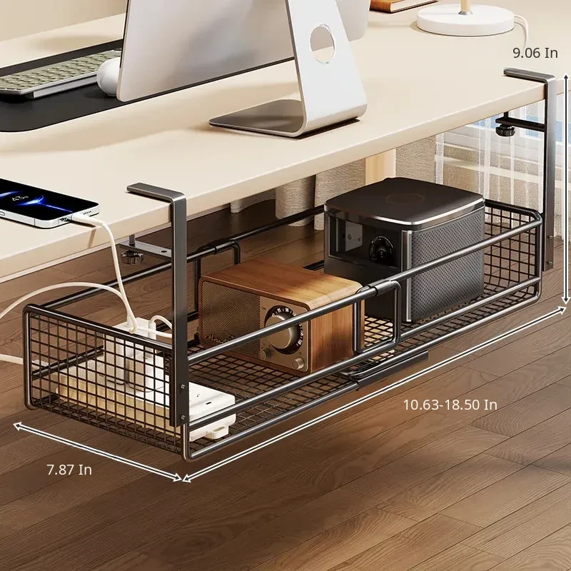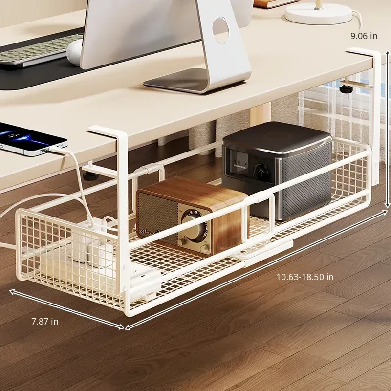 Under-Desk Cable Management Shelf with Power Strip Holder – Perfect for Organizing Data Cables, Router Basket, and Keeping Your Workspace Tidy!