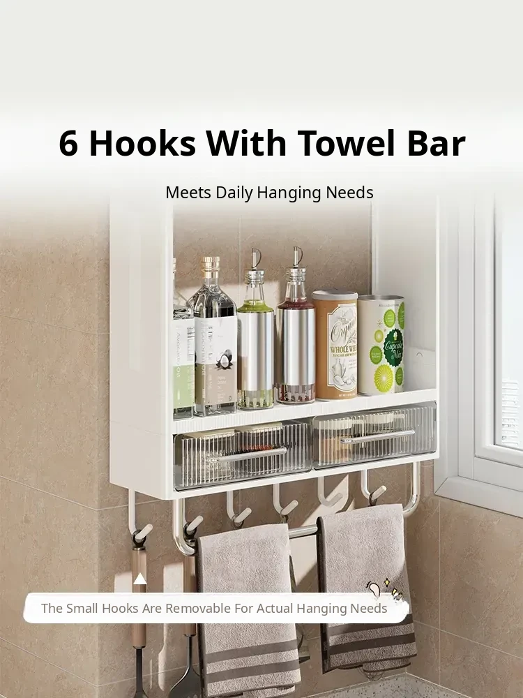 [Heightened Model] Two Layers with Drawers + 6 Hooks + Towel Bar