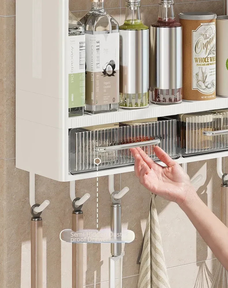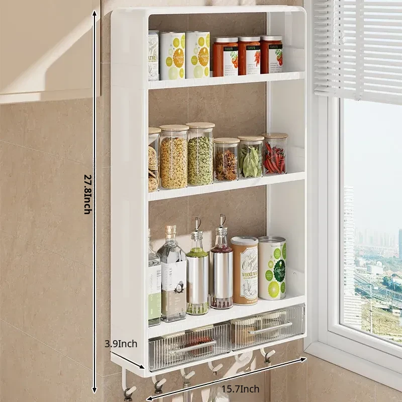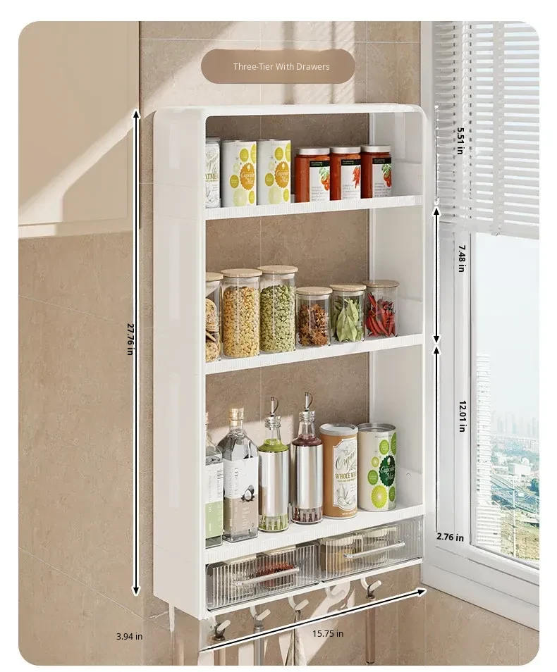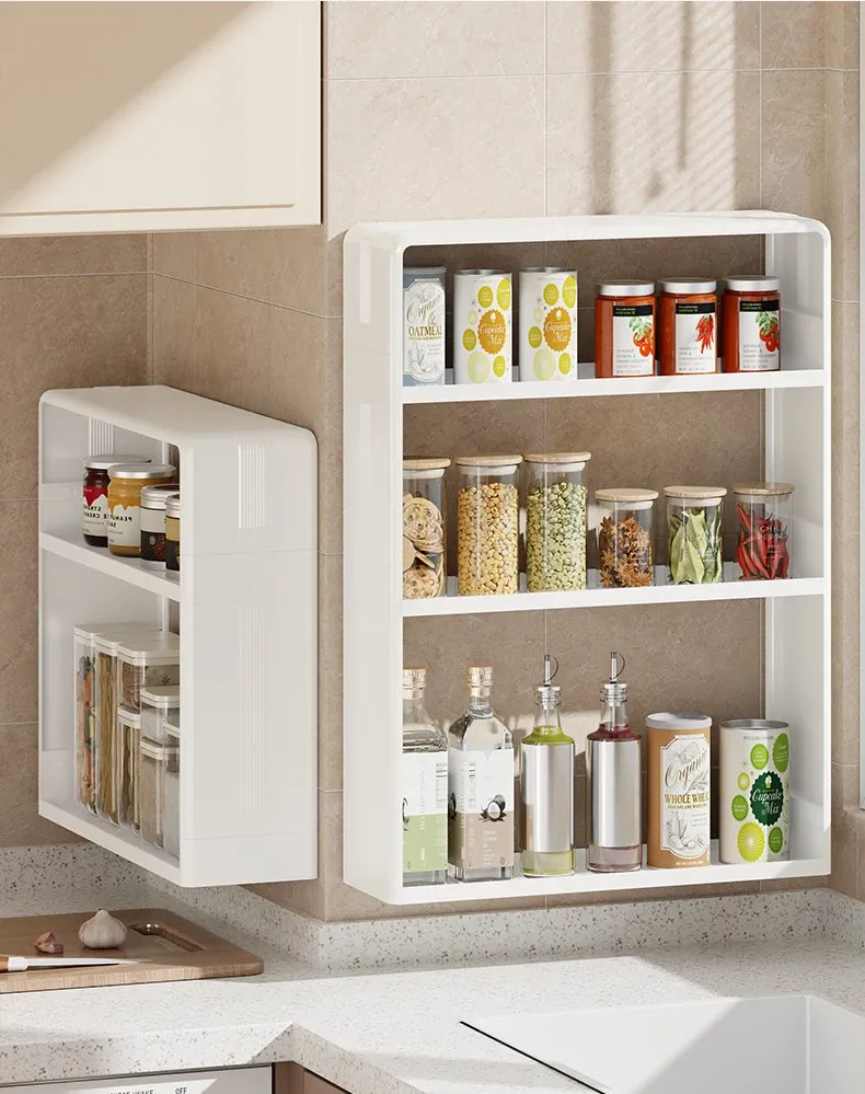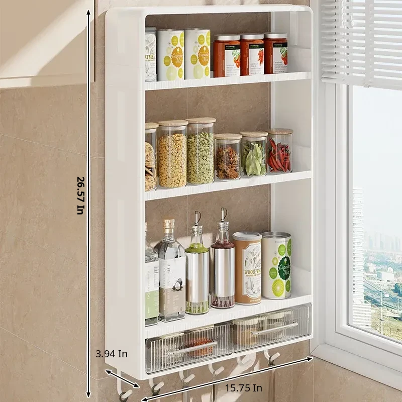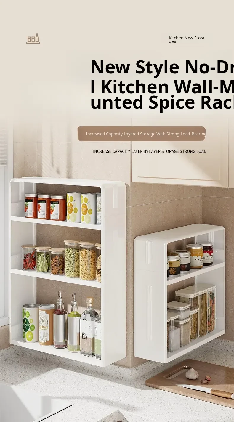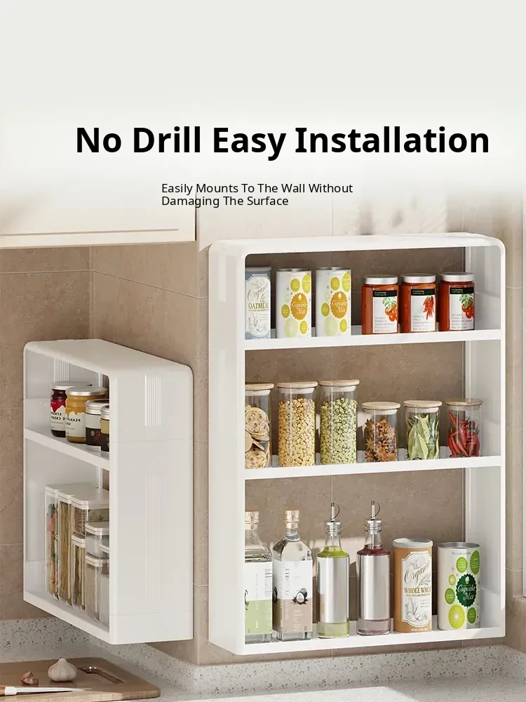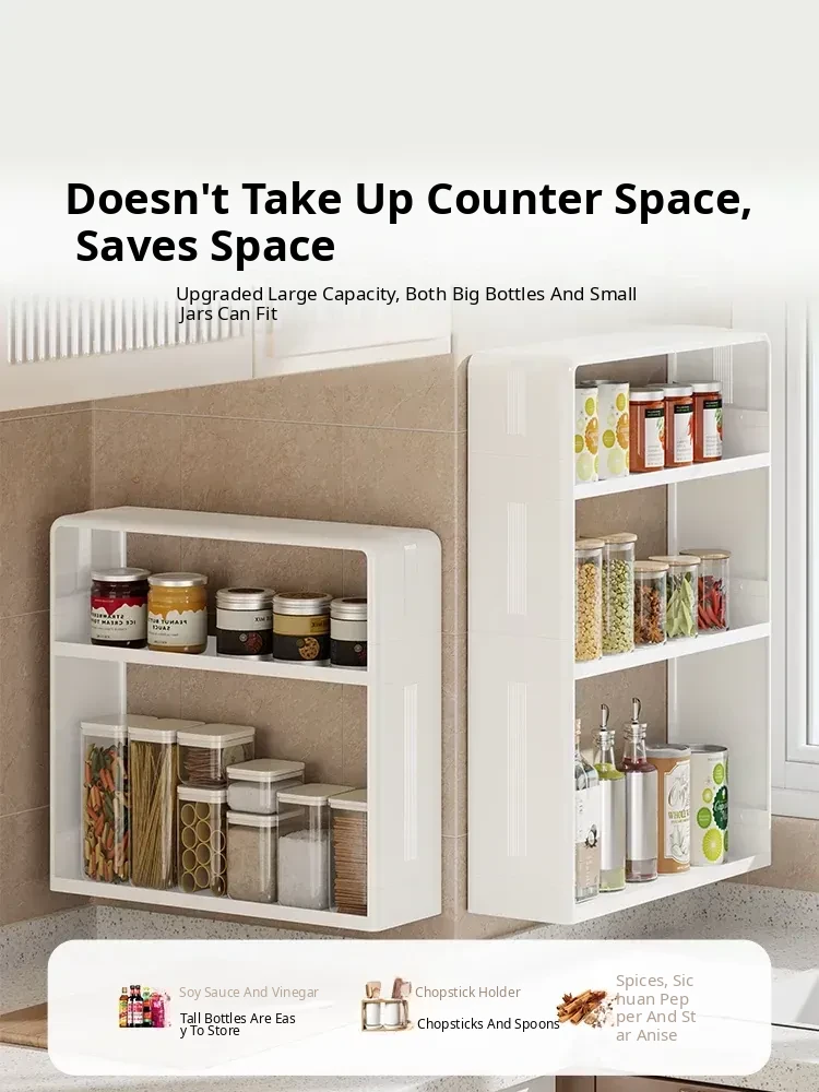 Wall-Mounted Kitchen Storage Rack - No Drilling Required, Multi-Functional Spice Organizer for Oil, Salt, Soy Sauce, and Vinegar - Perfect for Home Use!