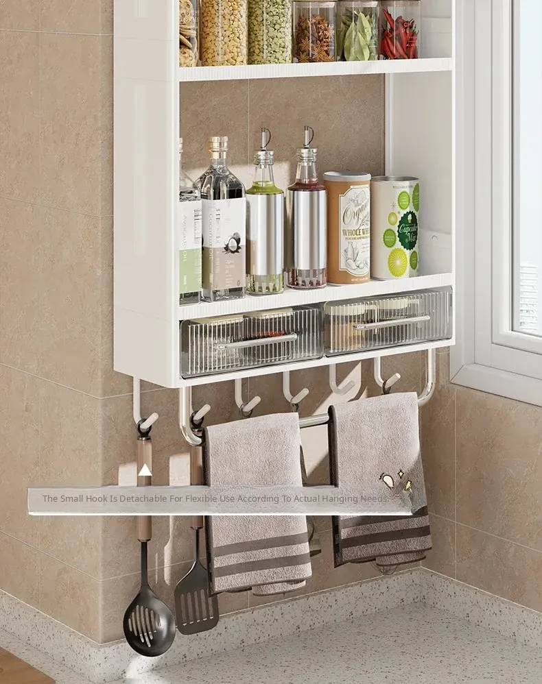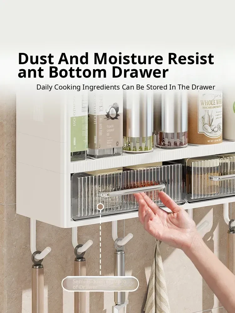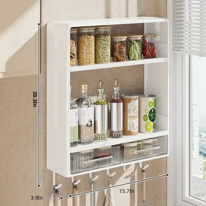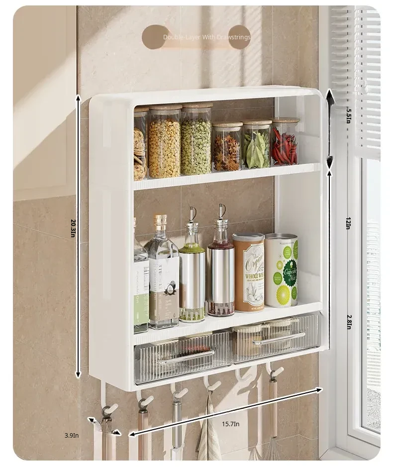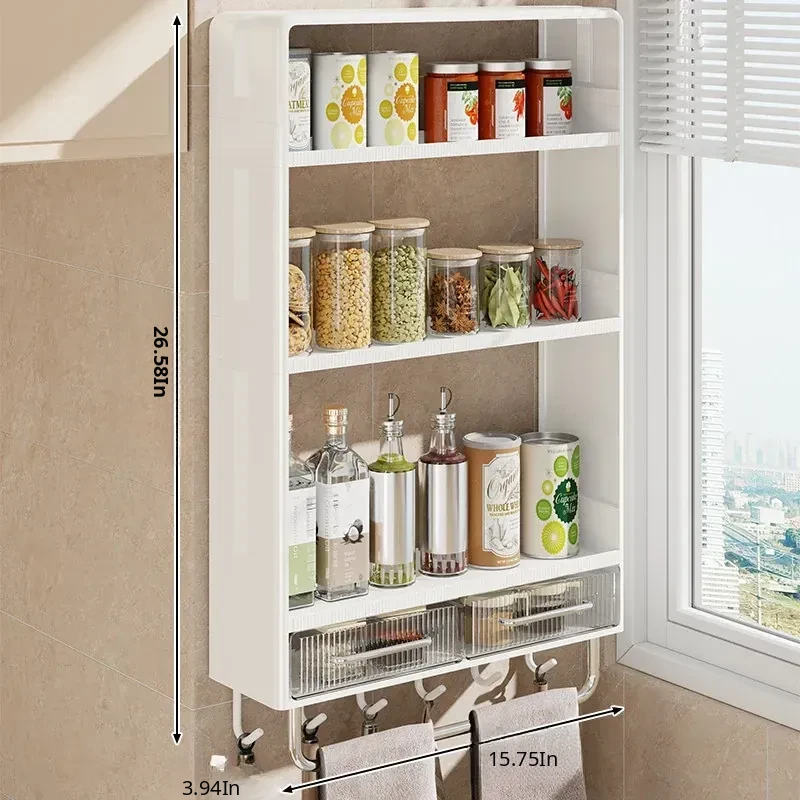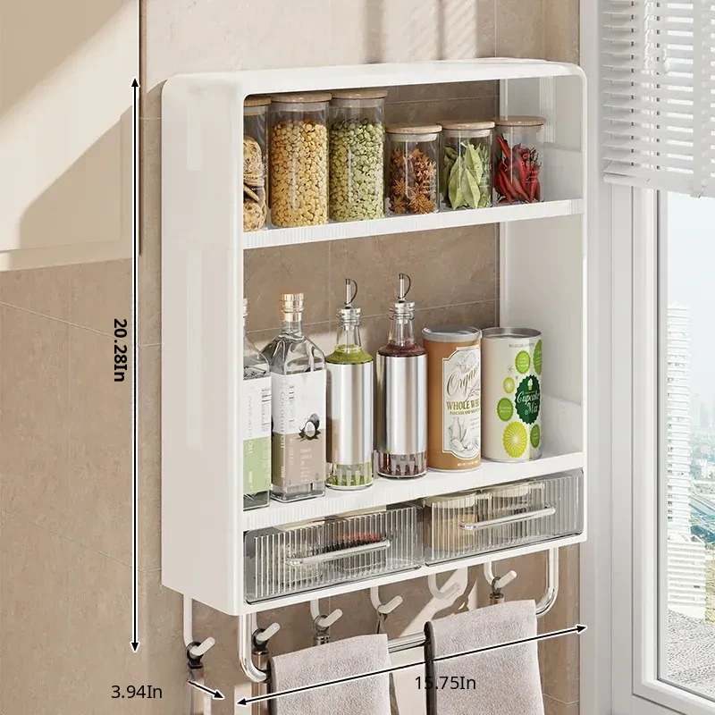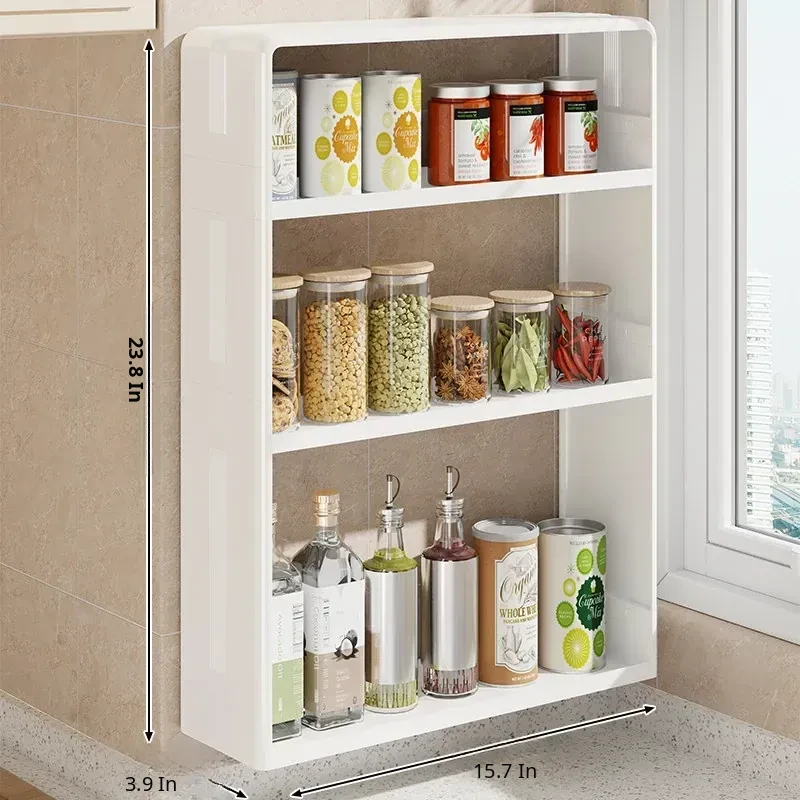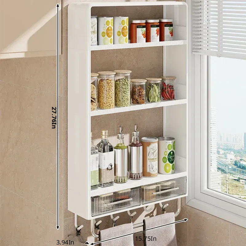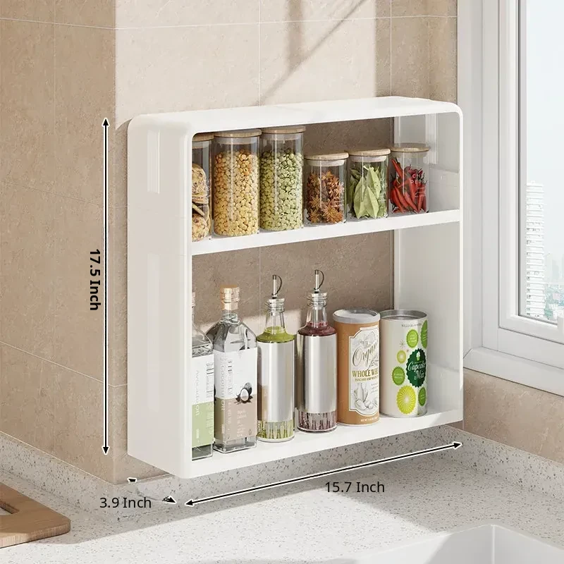 Wall-Mounted Kitchen Storage Rack - No Drilling Required, Multi-Functional Spice Organizer for Oil, Salt, Soy Sauce, and Vinegar - Perfect for Home Use!
