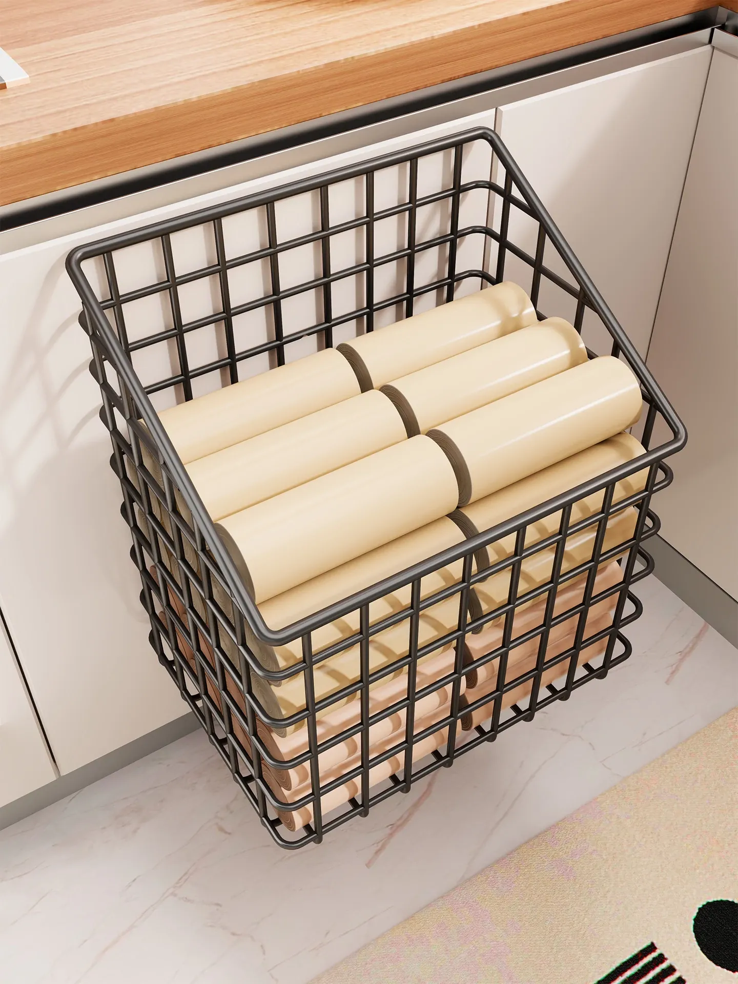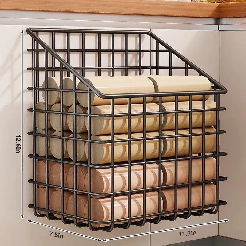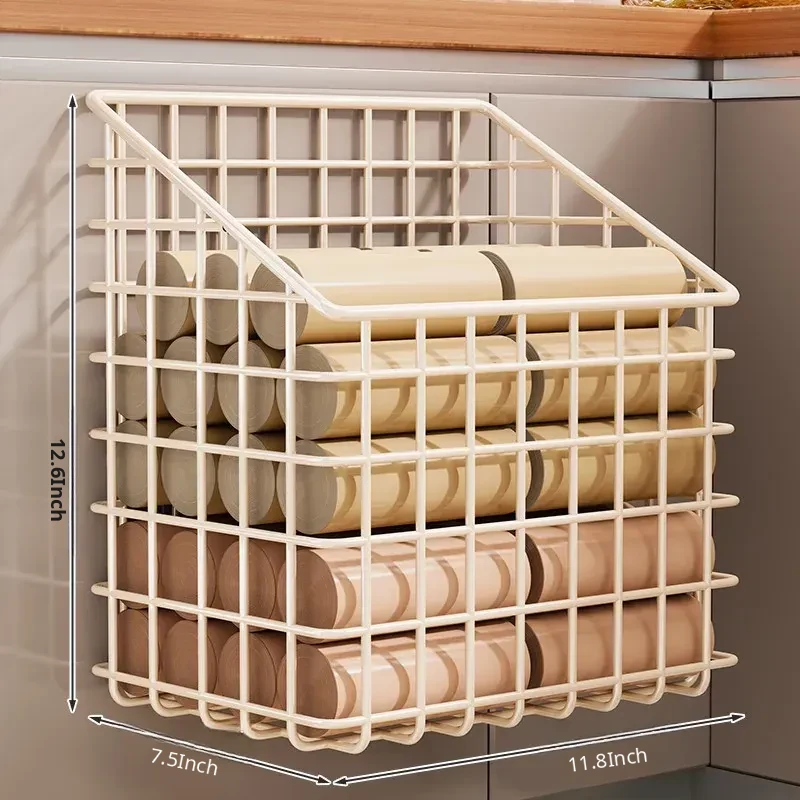 Wall-Mounted Kitchen Trash Bag Organizer - Space-Saving, Large Capacity Storage Rack for Plastic and Shopping Bags, Perfect for Home Use