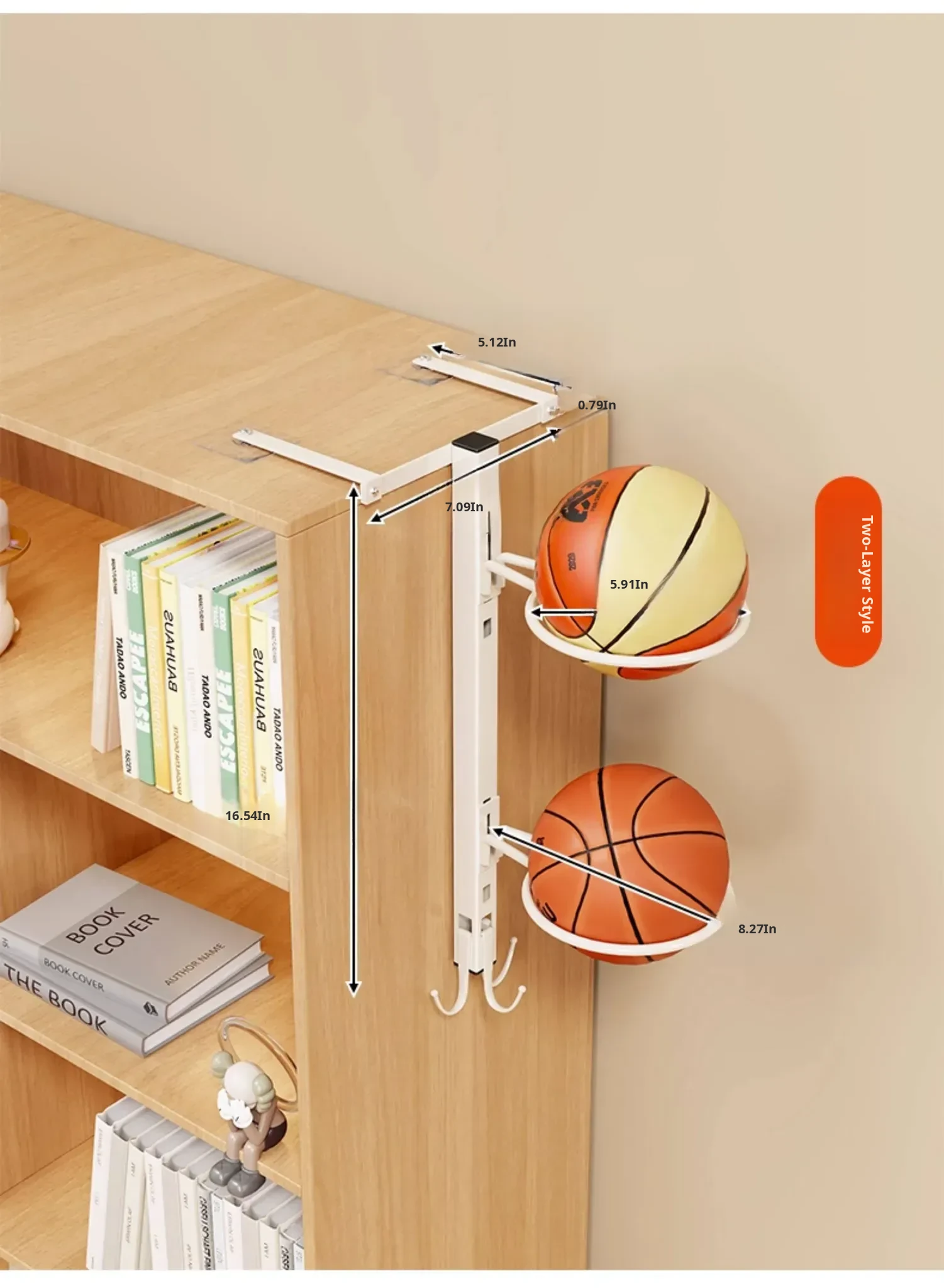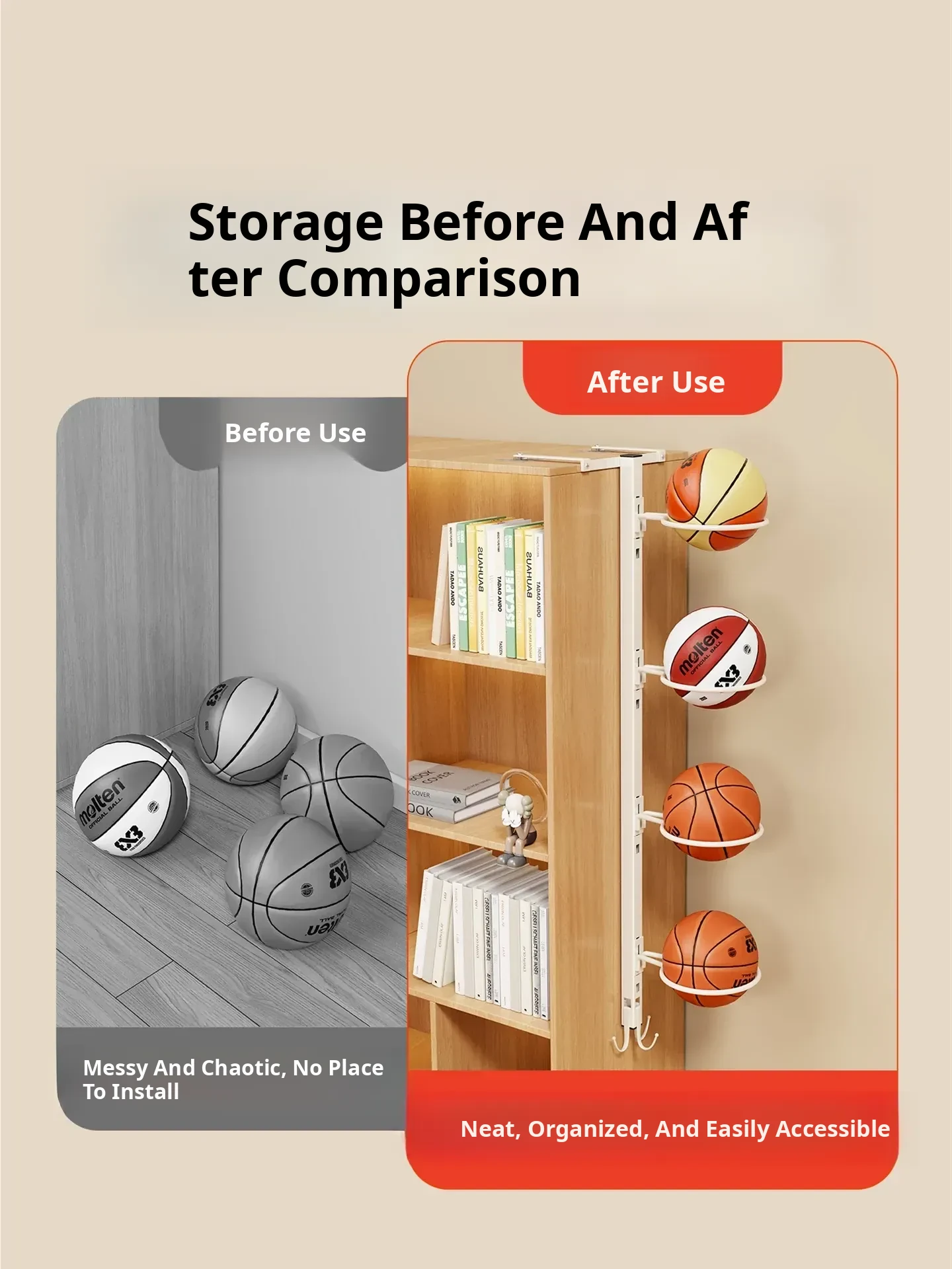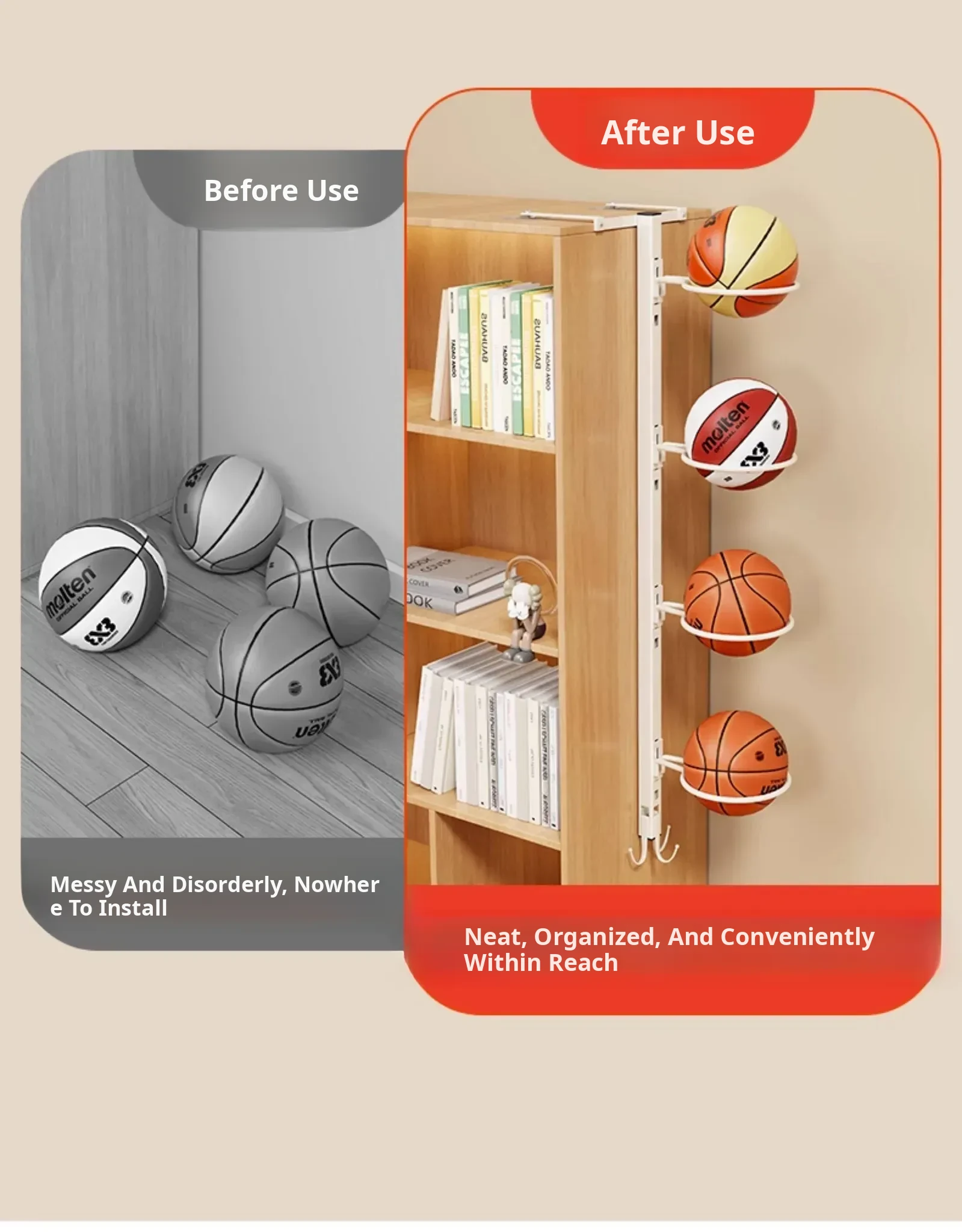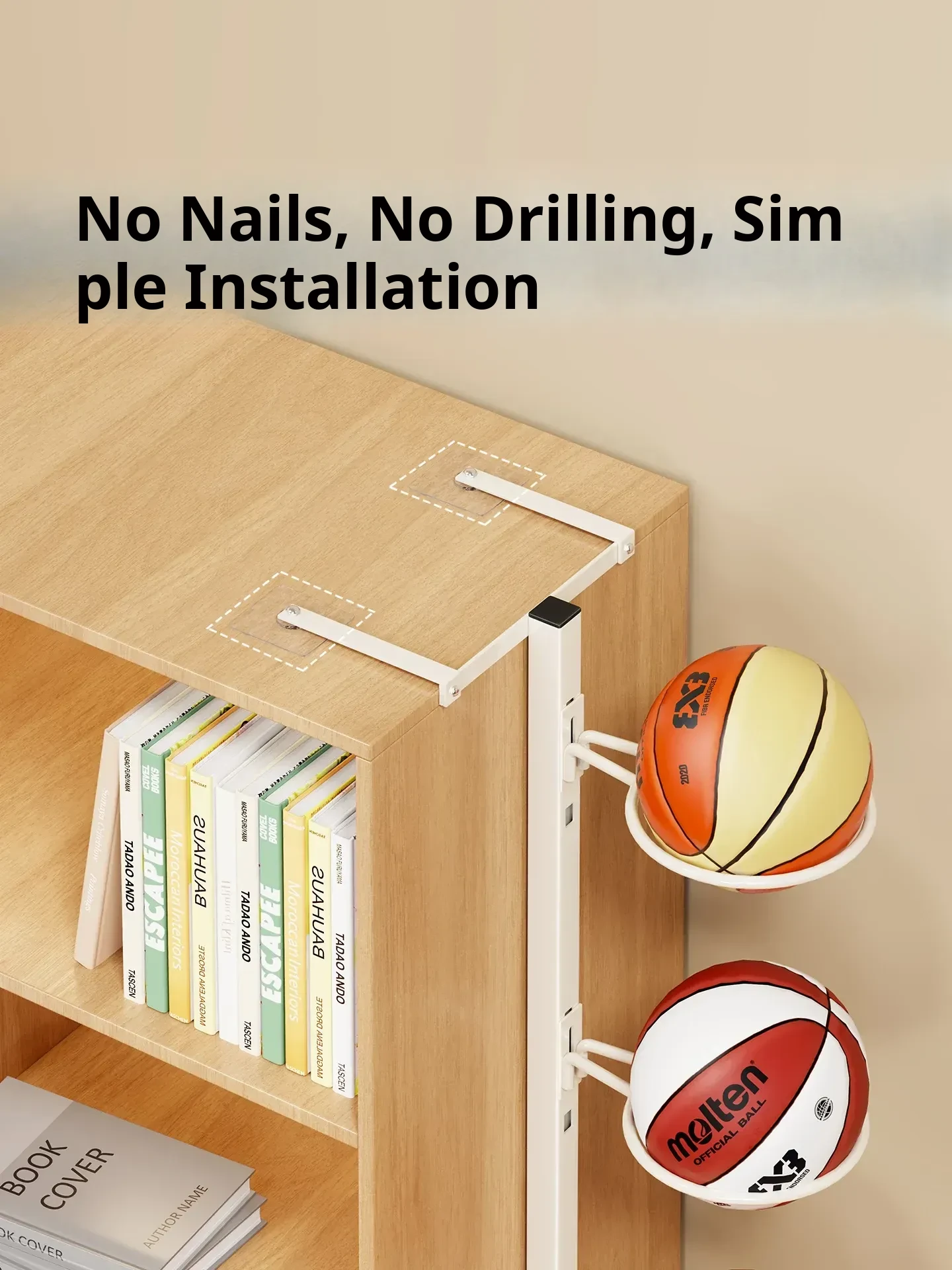 Wall-Mounted Multi-Layer Sports Storage Rack - No Drilling Required for Basketball, Volleyball, and Soccer Balls - Perfect Space-Saving Solution for Home Organization