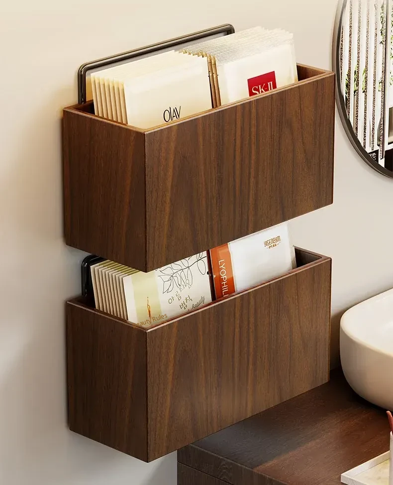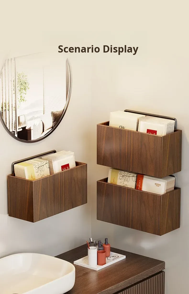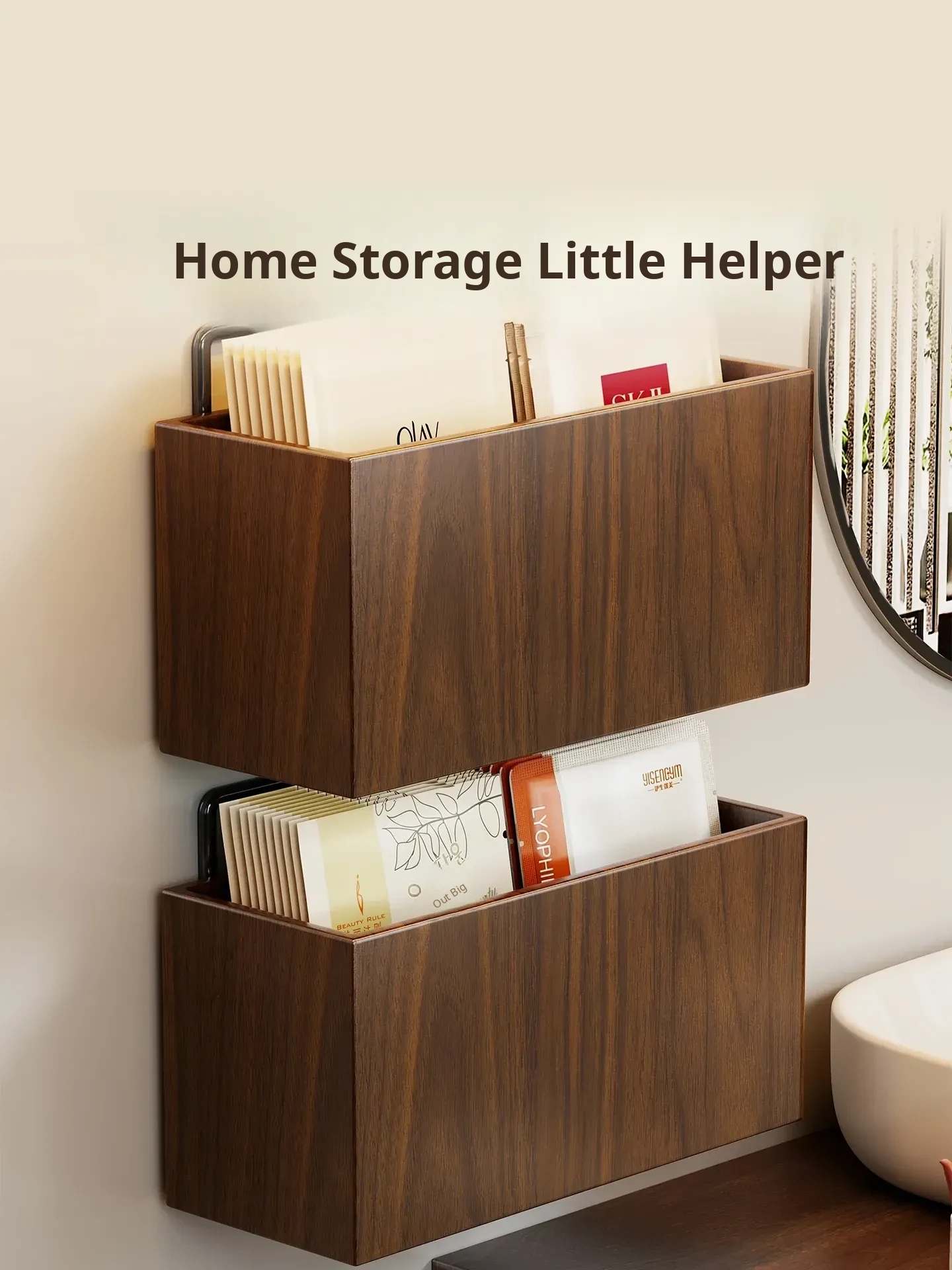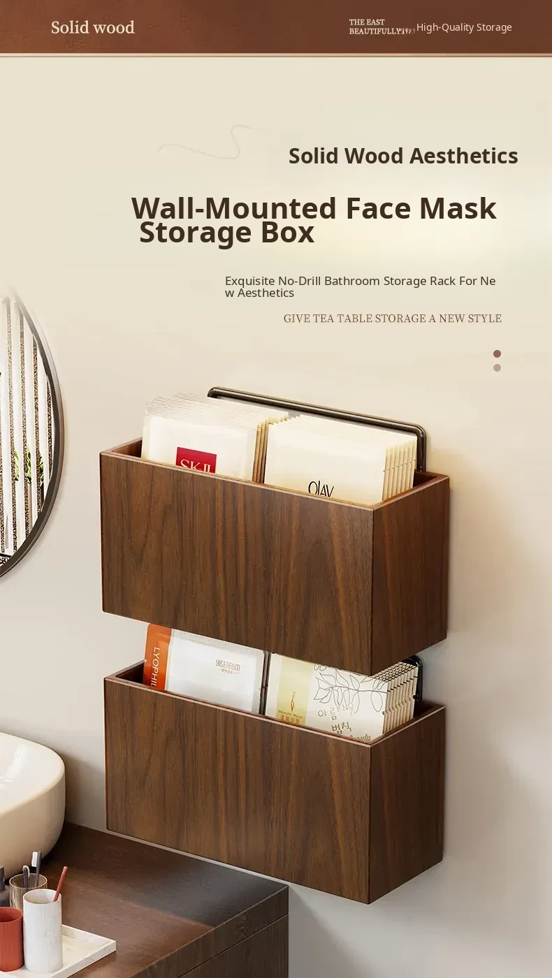 Wooden Face Mask Storage Box - Wall-Mounted Cosmetic Organizer for Skincare Products, No Drilling Required, Perfect for Dorms and Clutter-Free Living!