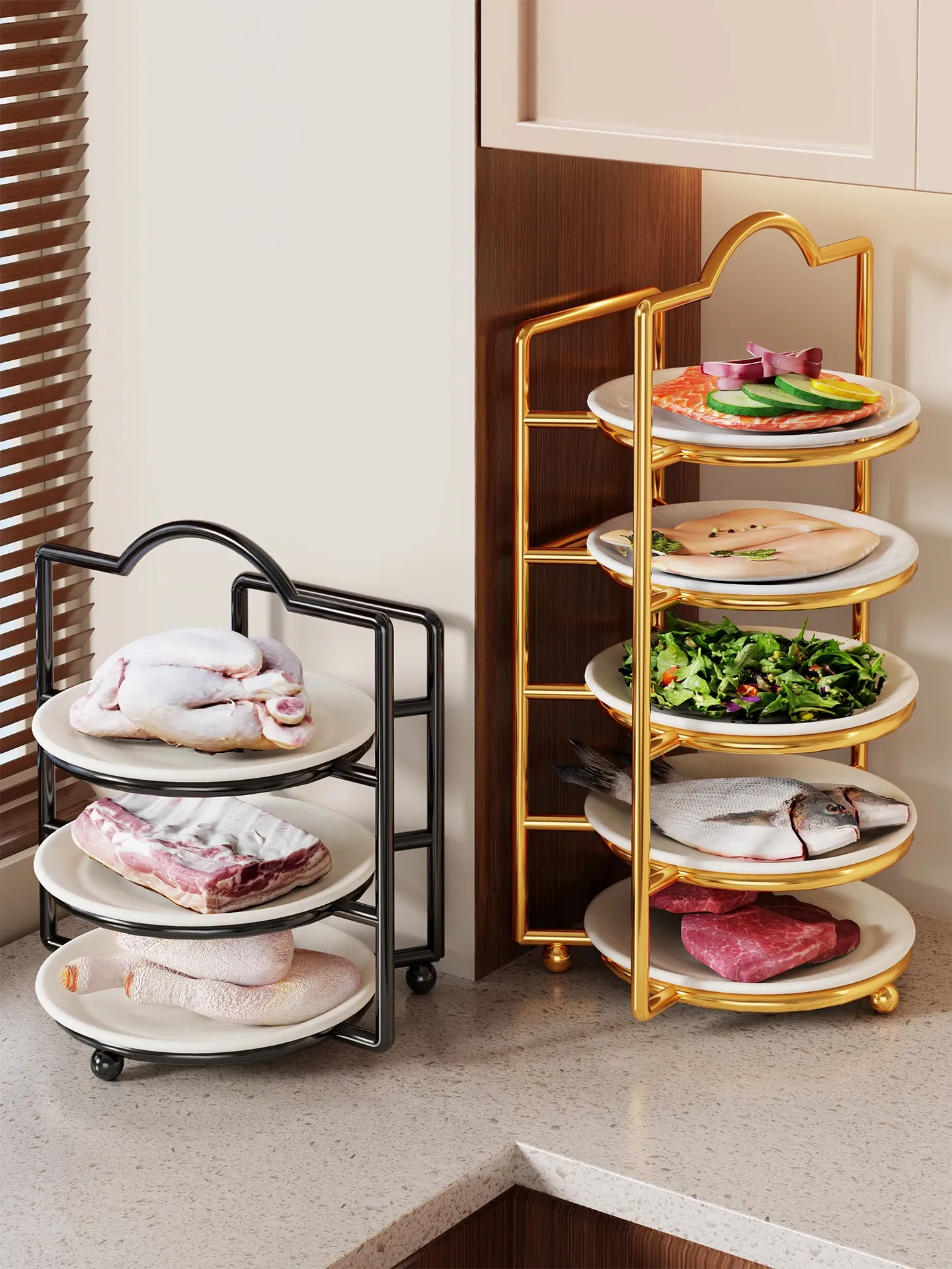 Multifunctional Kitchen Storage Rack - Space-Saving Wall-Mounted Plate Organizer for Meal Prep, Ideal for Home Use, Multi-Tier Design for Efficient Countertop Organization