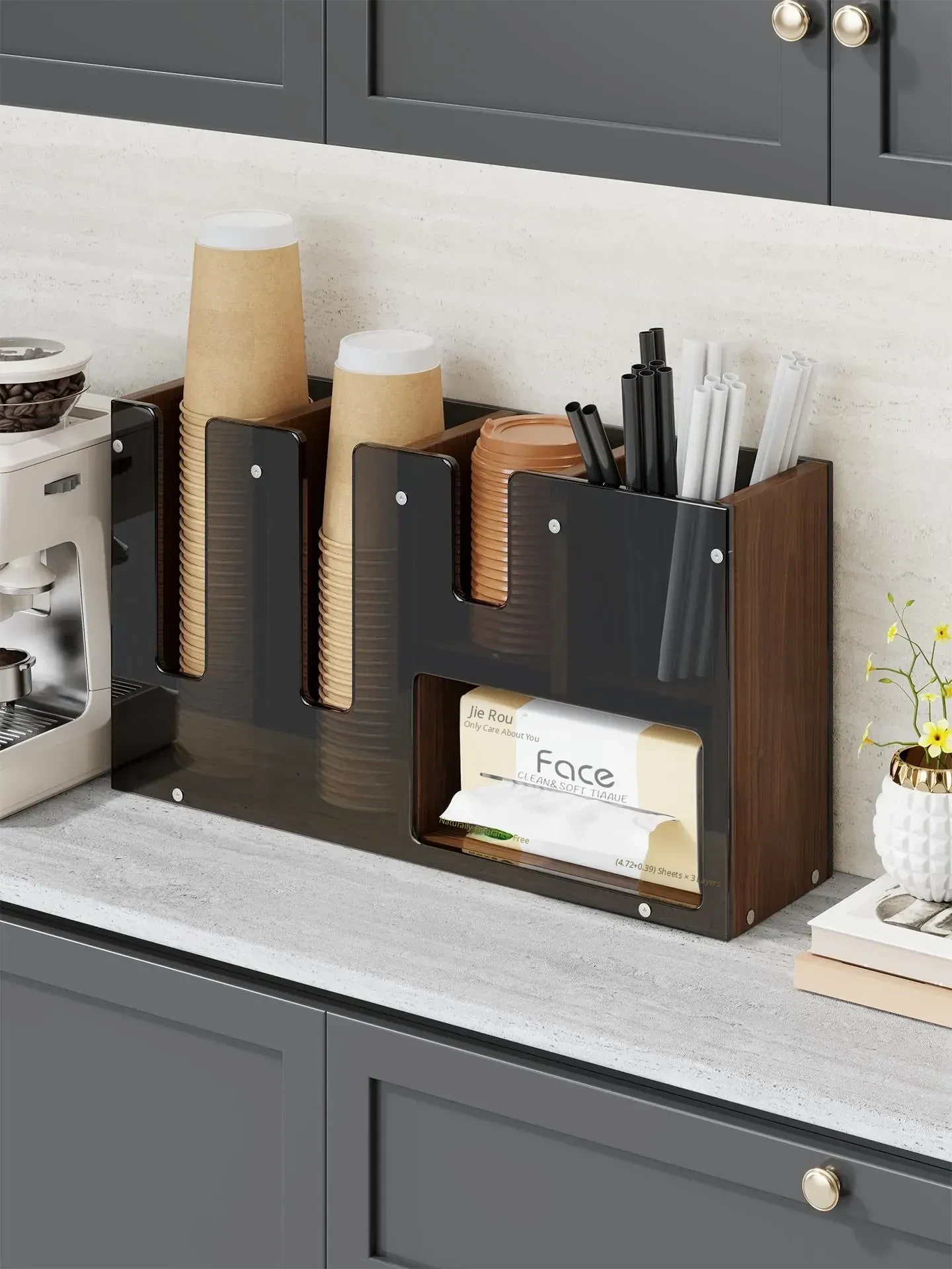 Acrylic Cup Holder for Entryway - Stylish Disposable Cup Stand for Milk Tea Shops, Organizes Paper Cups, Straws, and Napkins - Perfect for Your Countertop Decor!
