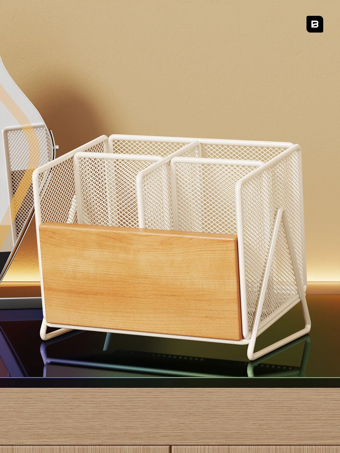 Elegant Makeup Organizer: Multi-Compartment Storage Box for Lipsticks, Brushes, and Miscellaneous Items - The Ultimate Vanity Storage Solution!