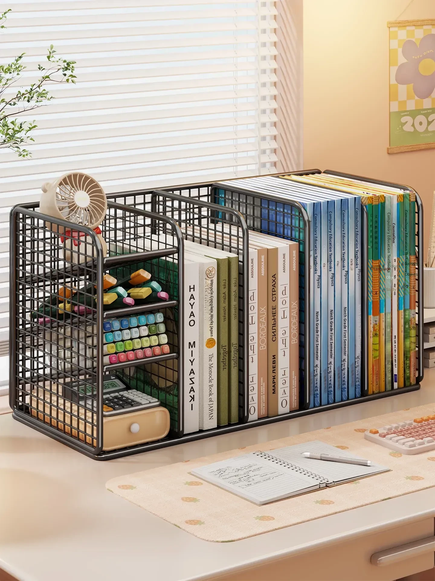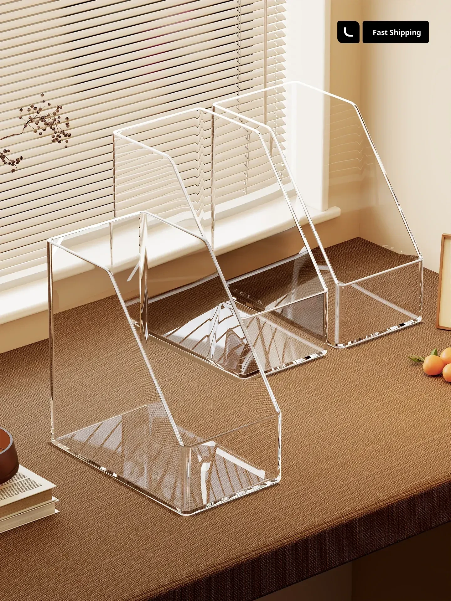 Transparent Book Holder and Organizer - Desk File Storage Rack for Students and Office - Divided Paper and Document Organizer for Efficient Workspace Management