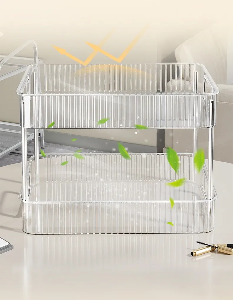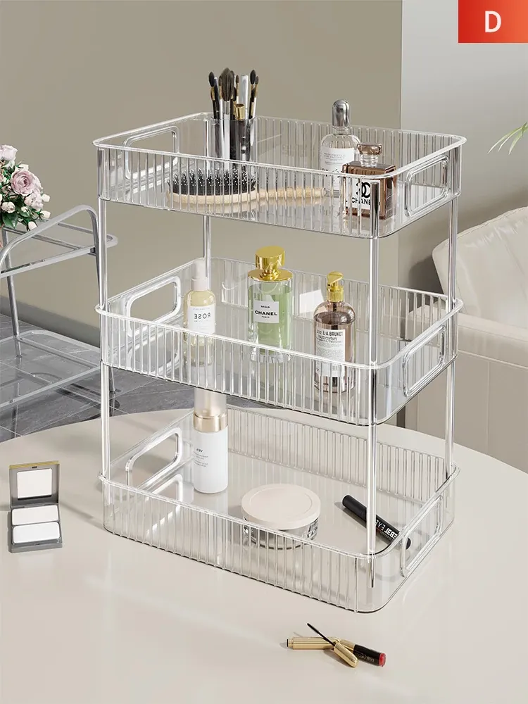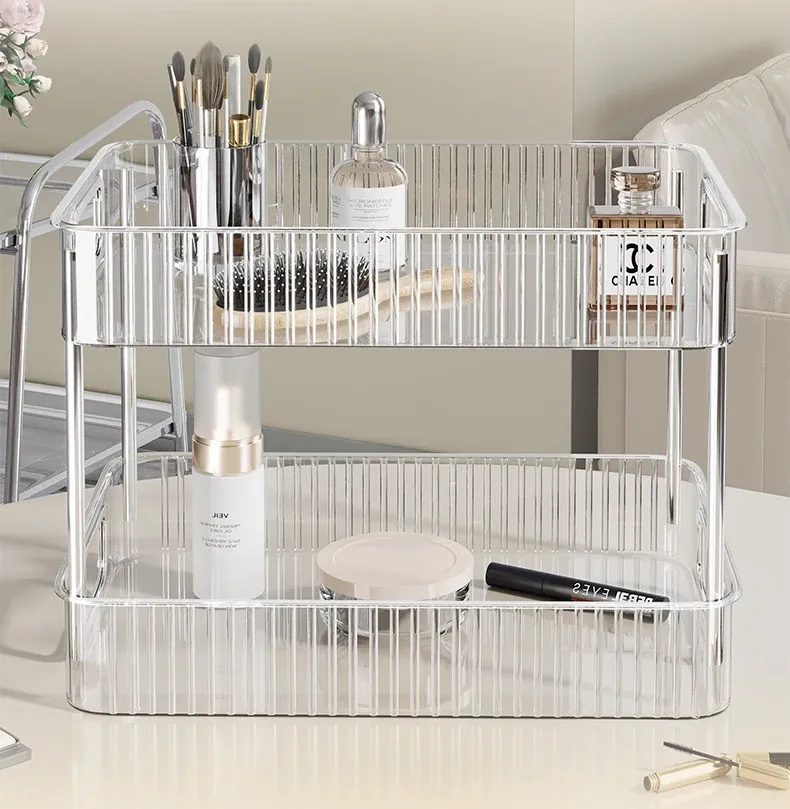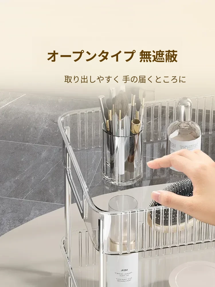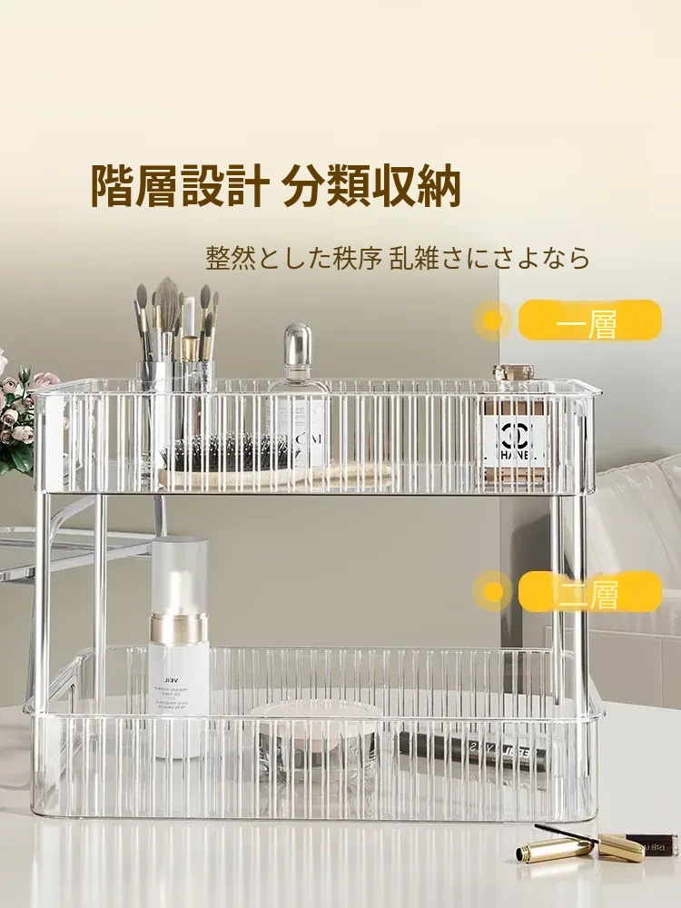 アクリル化粧品収納ラック - バスルームやドレッサーに最適な透明な収納ボックス!スキンケアアイテムをスタイリッシュに整理整頓。美しい空間を演出し、毎日の美容ルーチンを楽しく!