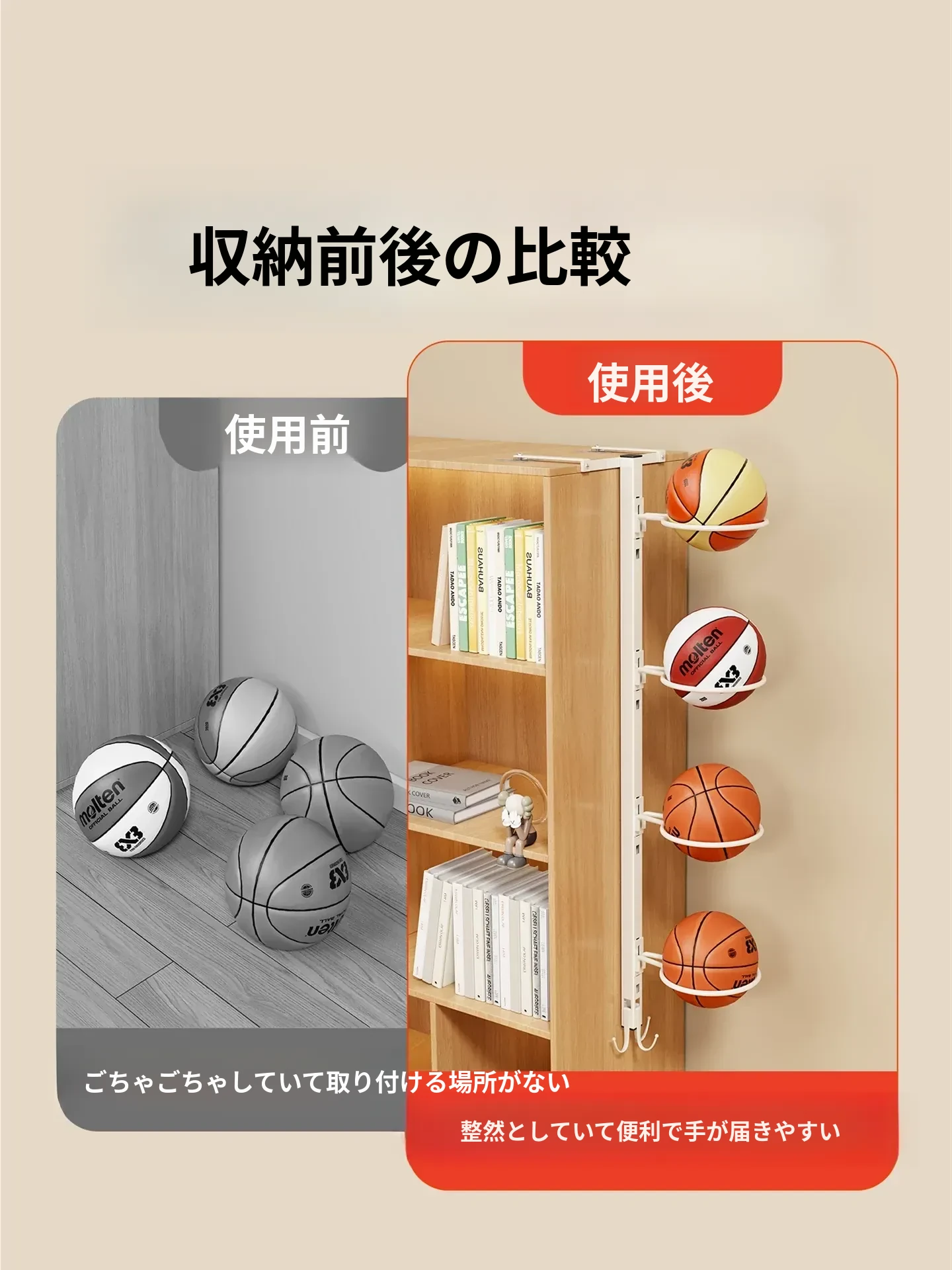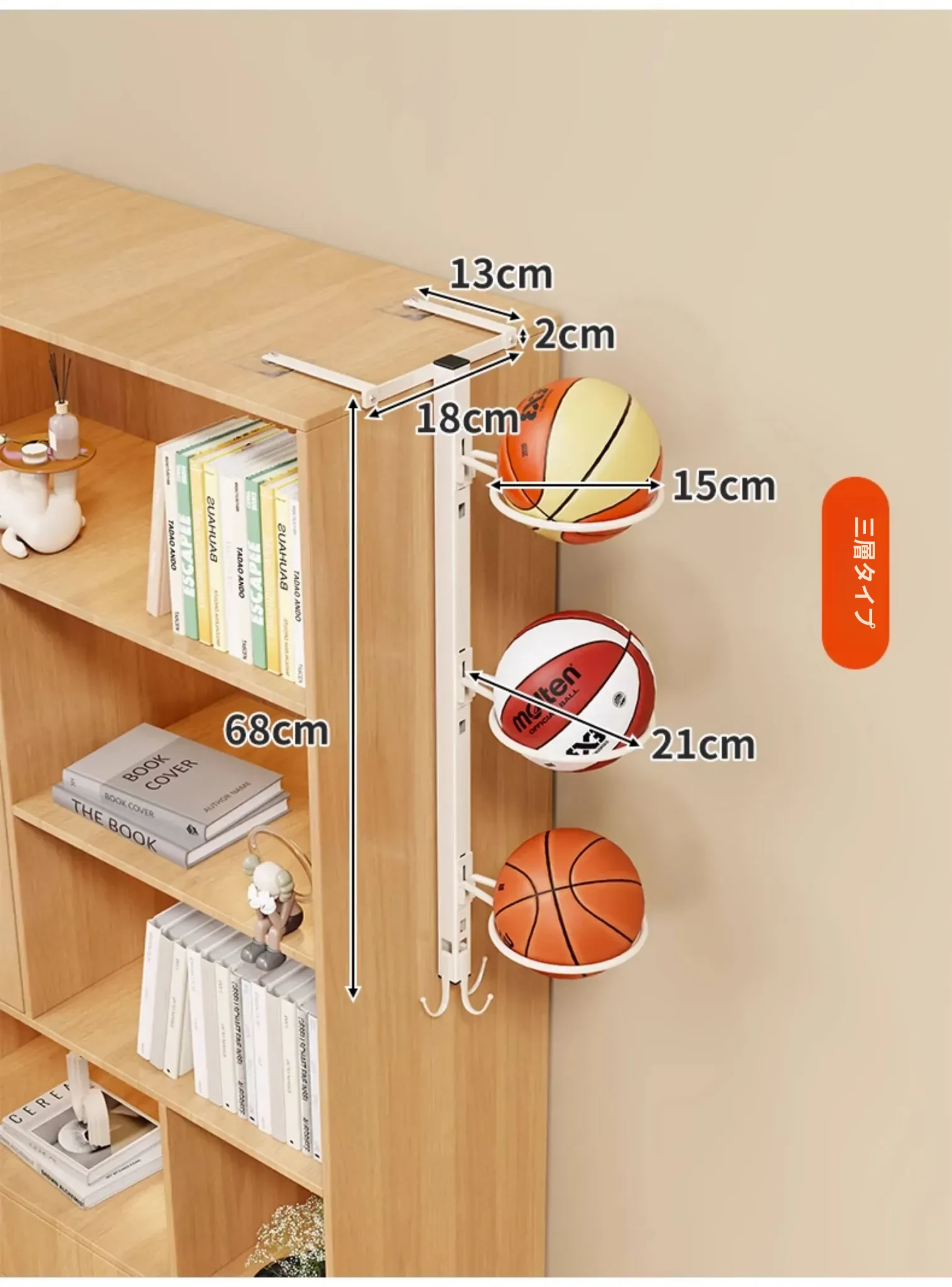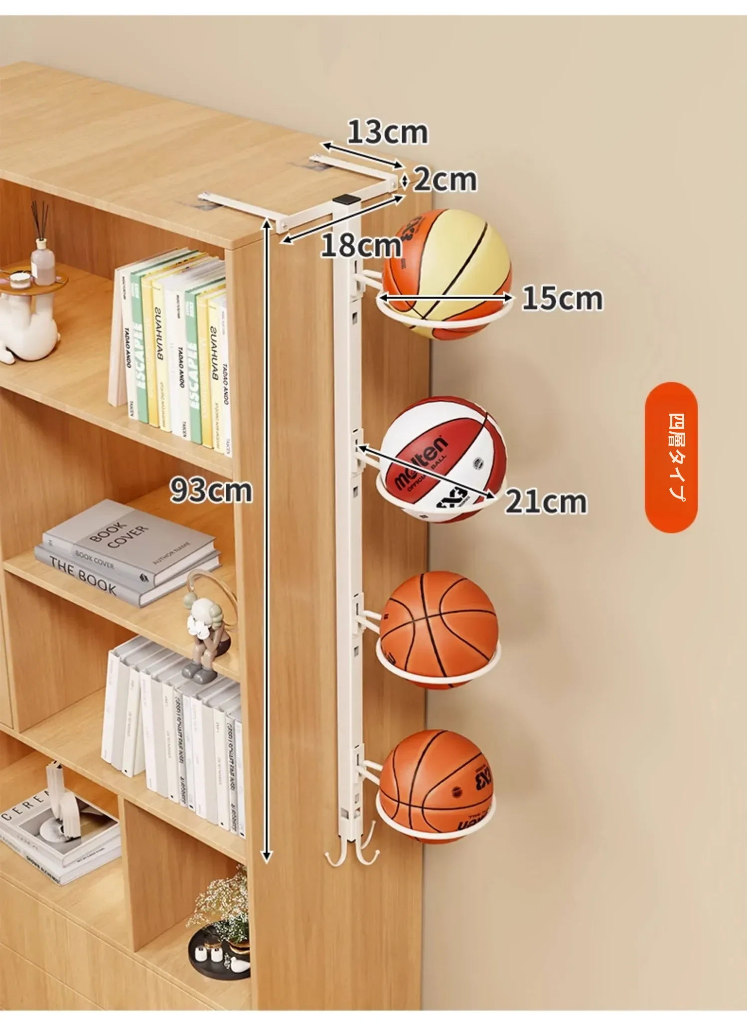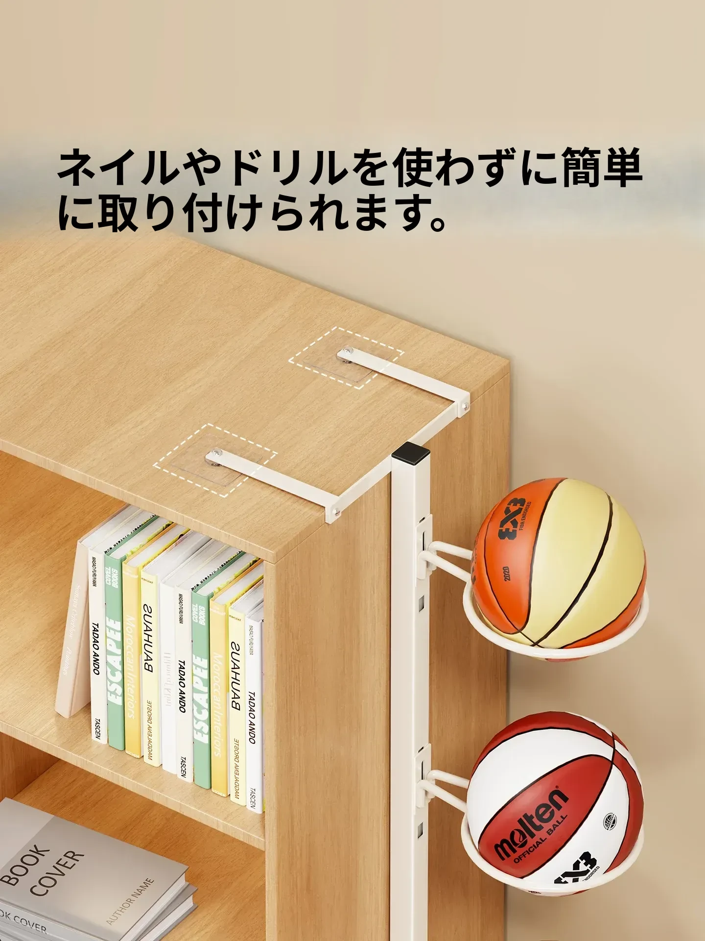 バスケットボール収納ラック 家庭用 壁掛けタイプ 穴を開けずに設置可能 サッカー・バレーボールも収納できる 子供向け ボール整理の救世主!
