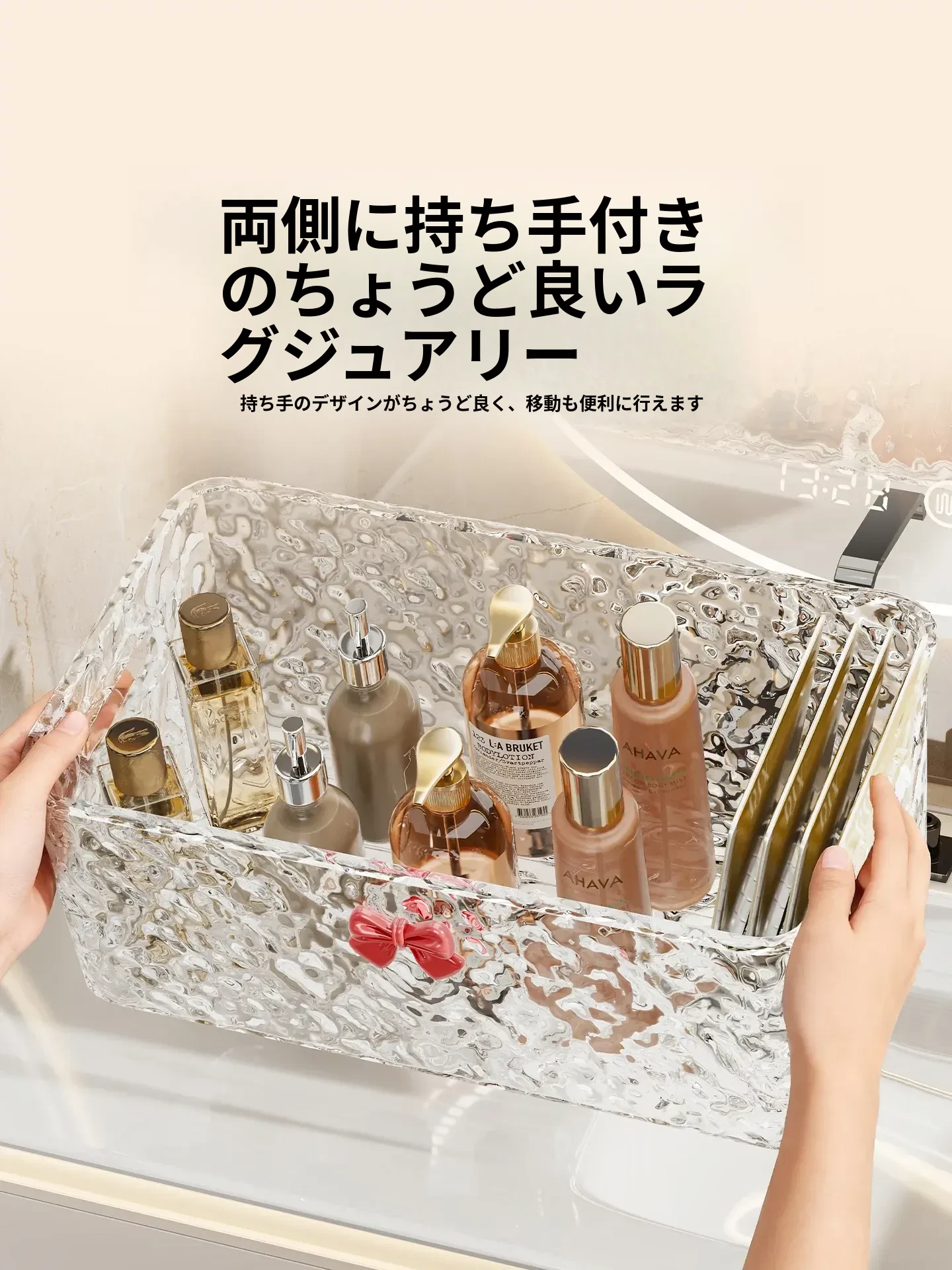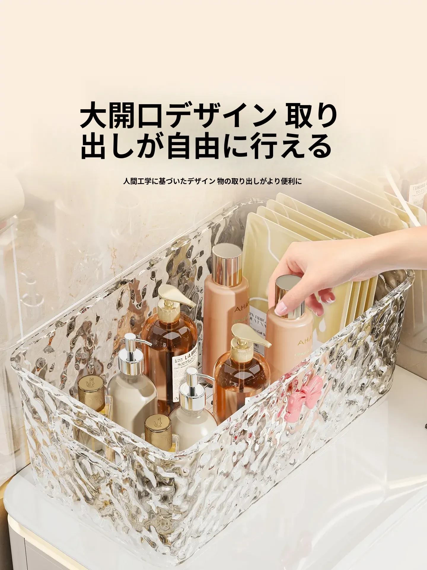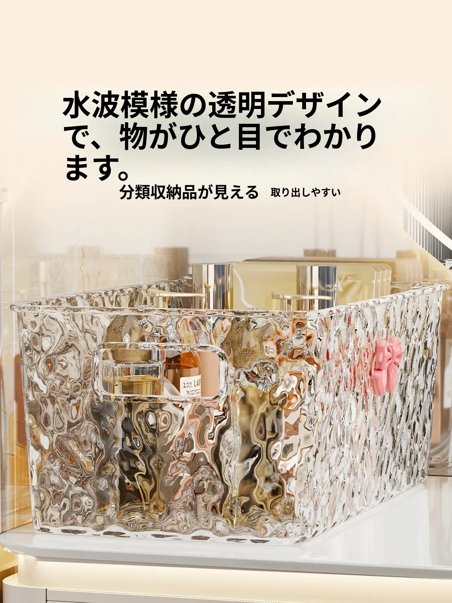 デスクトップ化粧品収納ボックス - 洗面台のスキンケアアイテムやフェイスマスクをすっきり整理!バスルーム用の口紅・香水・小物整理ボックスで、毎日の美しさをサポートします。