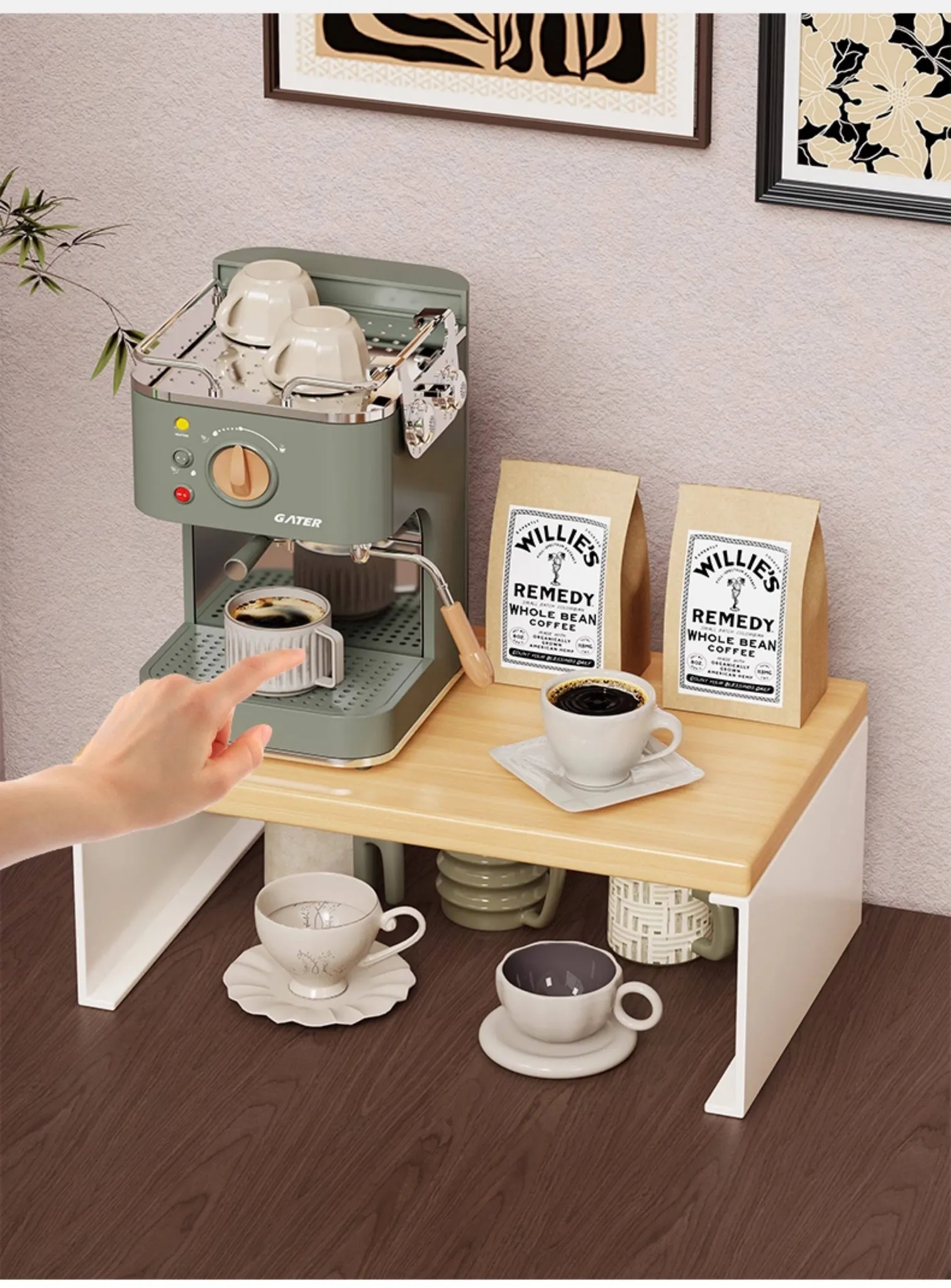 デスク上のマグカップ収納ラック - コーヒーやティー用品もすっきり整理!テーブルを美しく保つ小型カップスタンド。机上のスペースを有効活用し、毎日の飲み物を便利に!