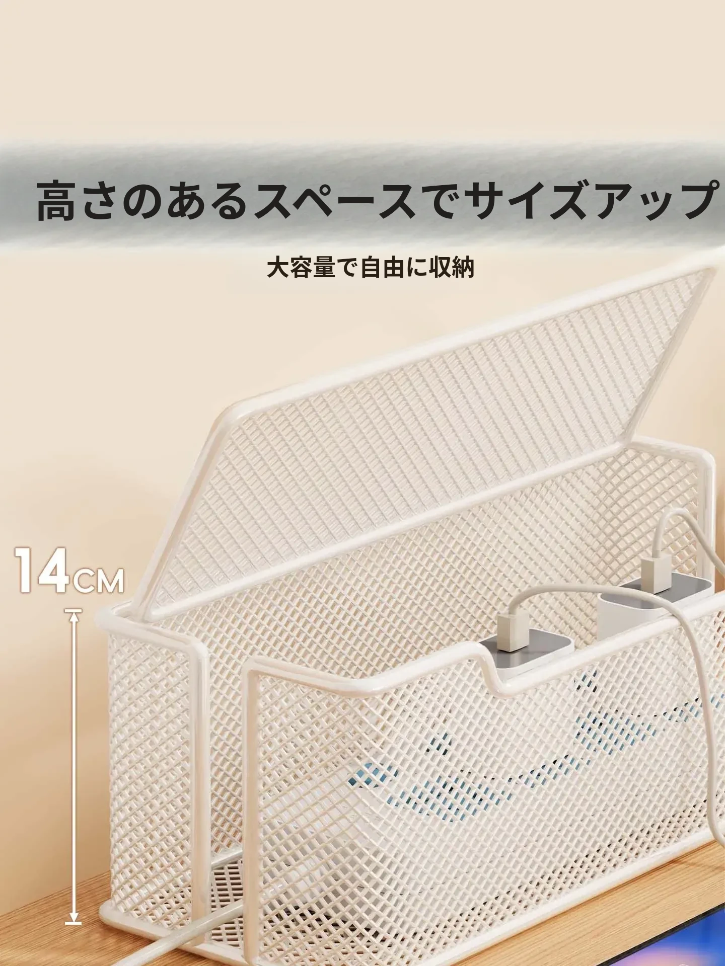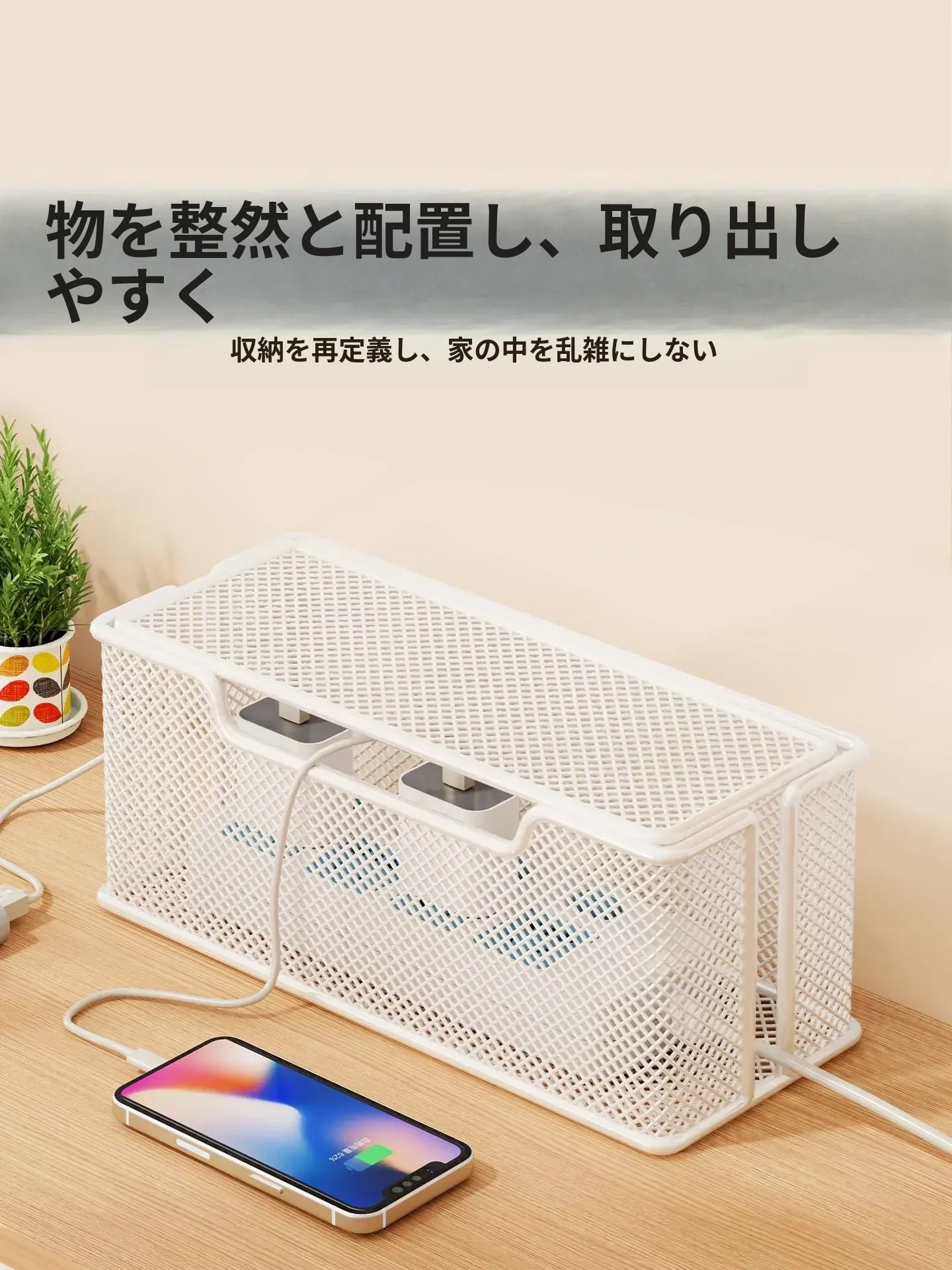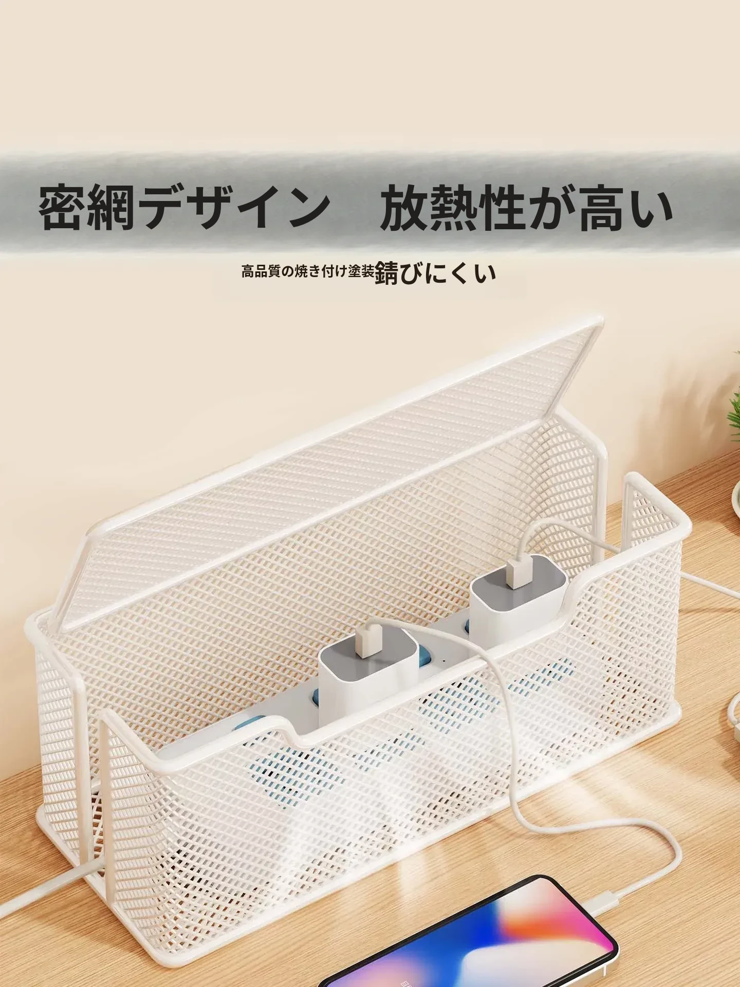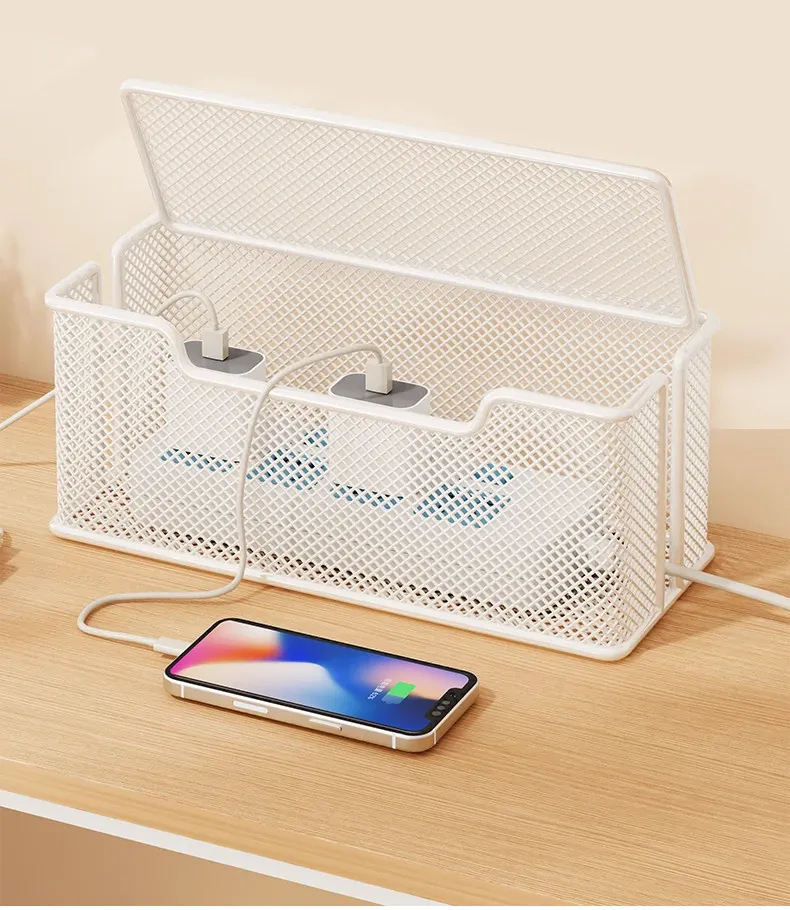 デスク周りをスッキリ整理!大容量電源タップ収納ボックス - 充電器・データケーブルを隠して、きれいな空間を実現する便利アイテム!