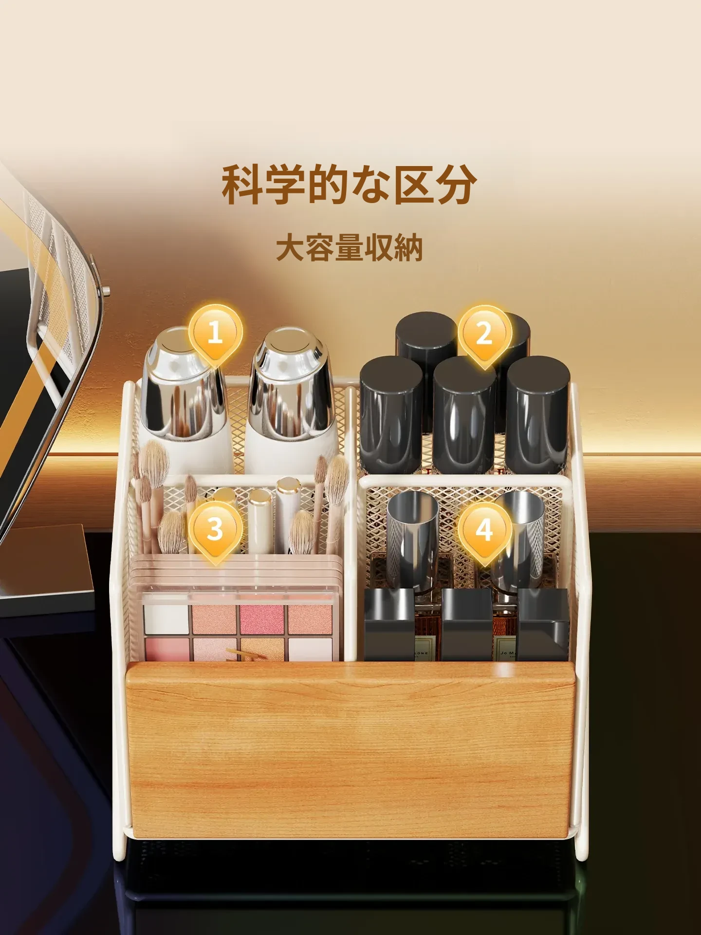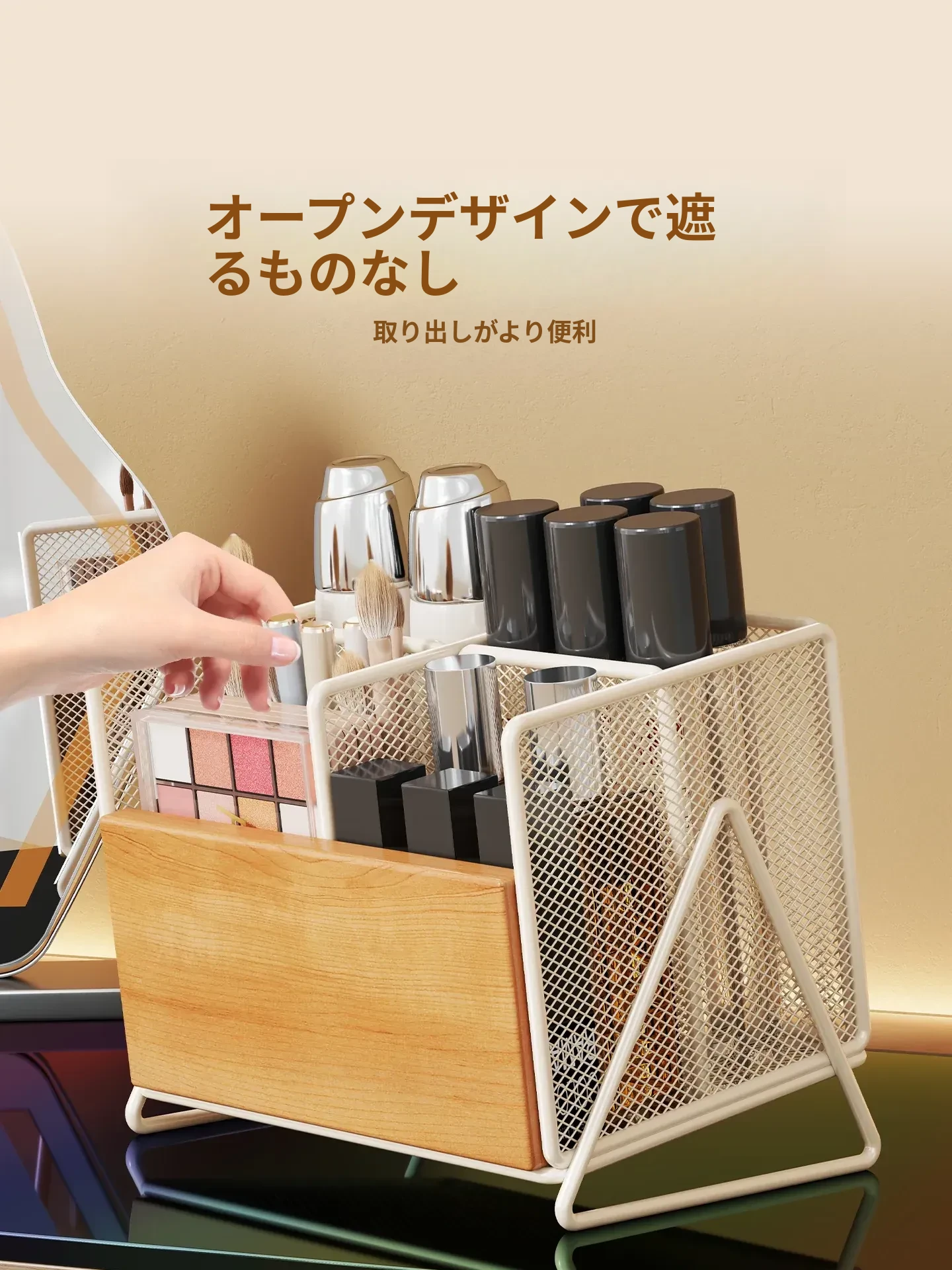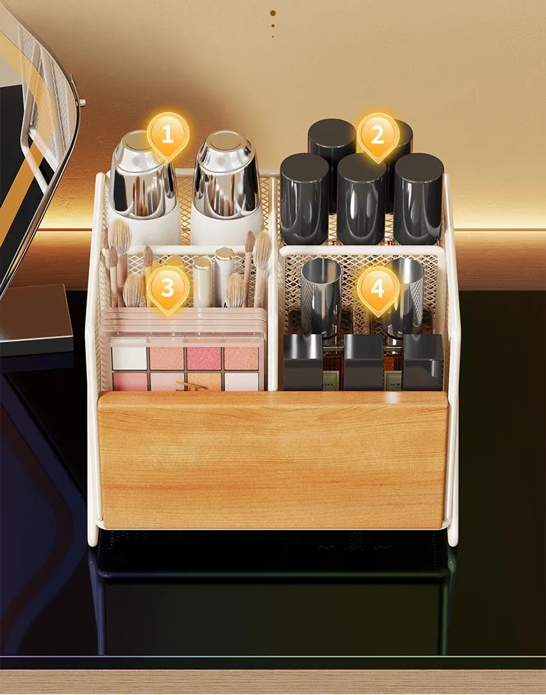 化粧品収納ボックス デスク上にぴったり!高級感溢れるリップ・メイクブラシ・小物整理に最適な多段収納ラック 洗面台の整理整頓を簡単にする便利アイテム!