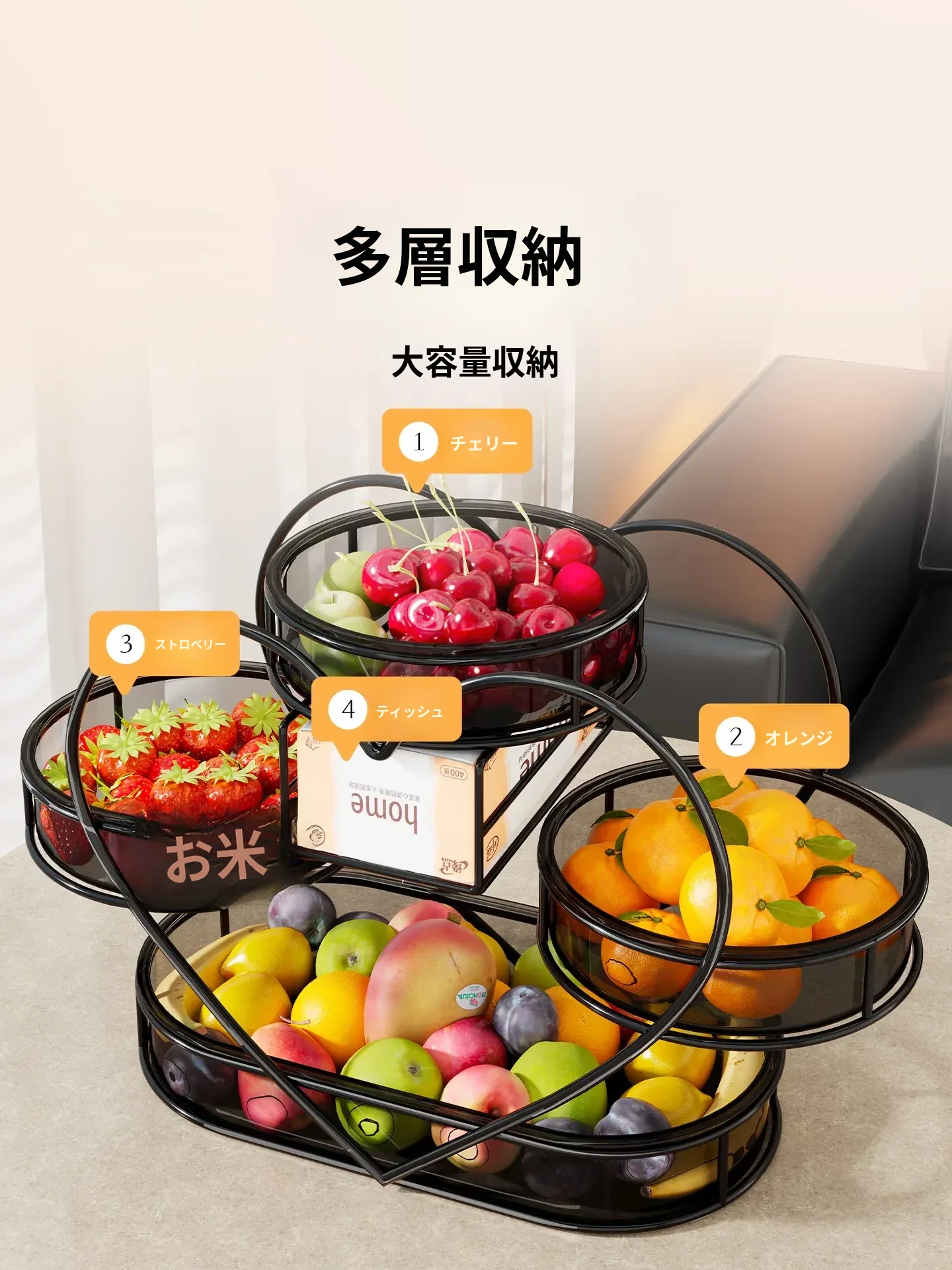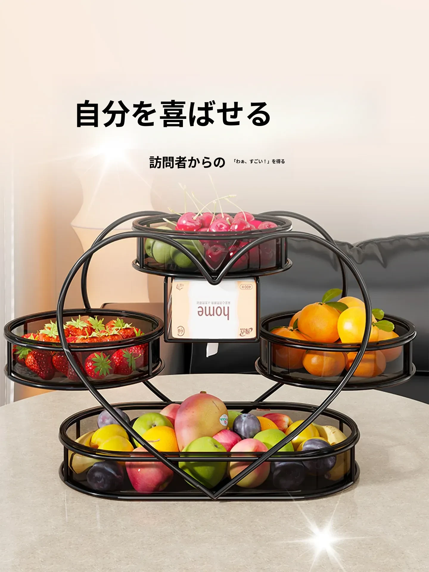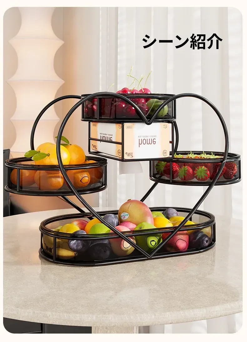 高級感溢れる多層フルーツトレイ - リビングのコーヒーテーブルに最適なスナック収納ボックス!美しいデザインで、おしゃれなインテリアを演出し、点心やおやつをスタイリッシュに収納します。あなたの空間を華やかに彩る一品です!