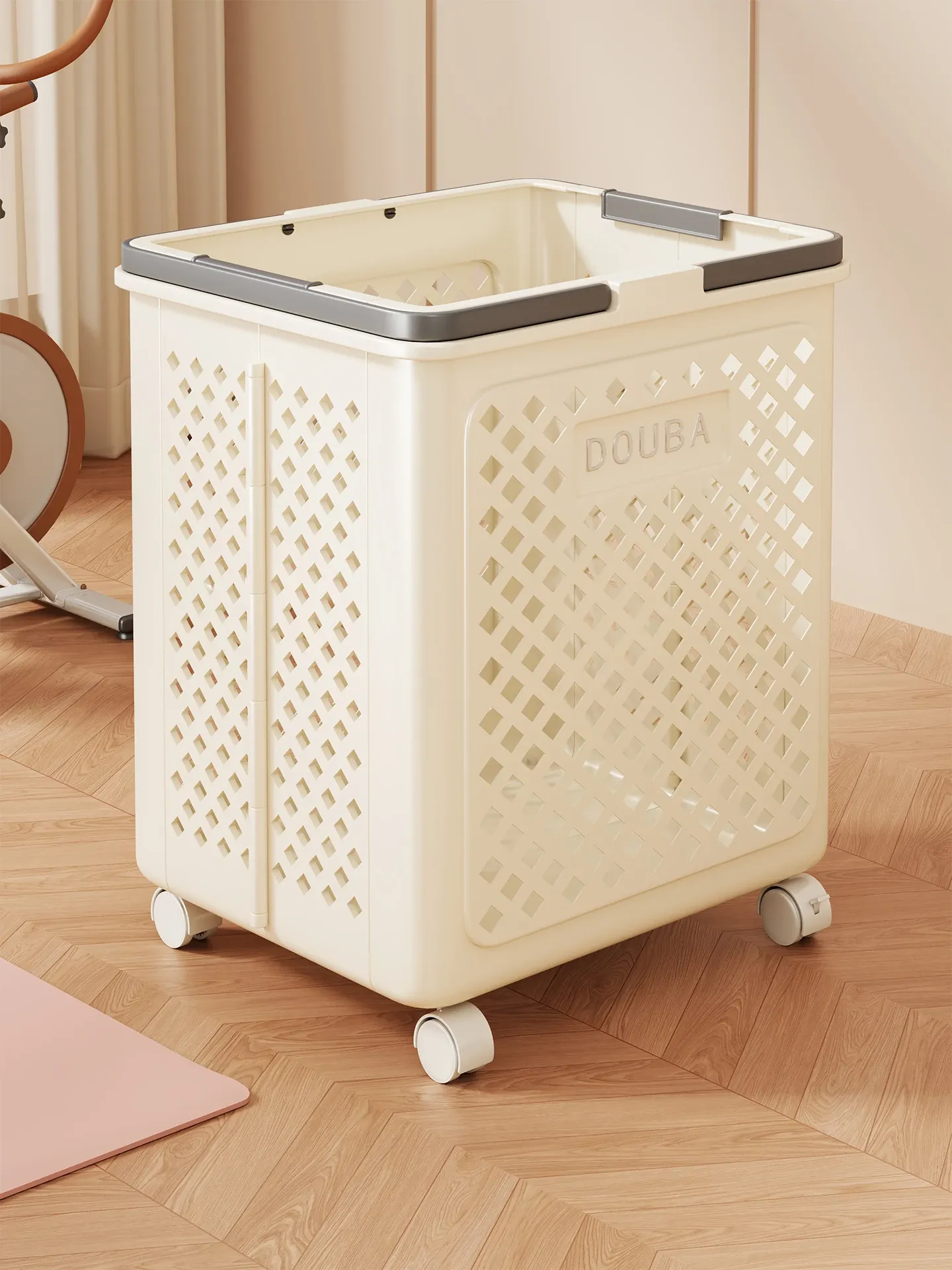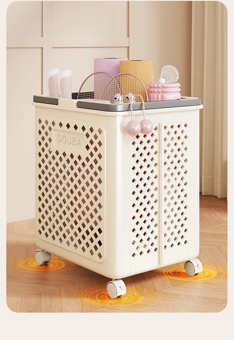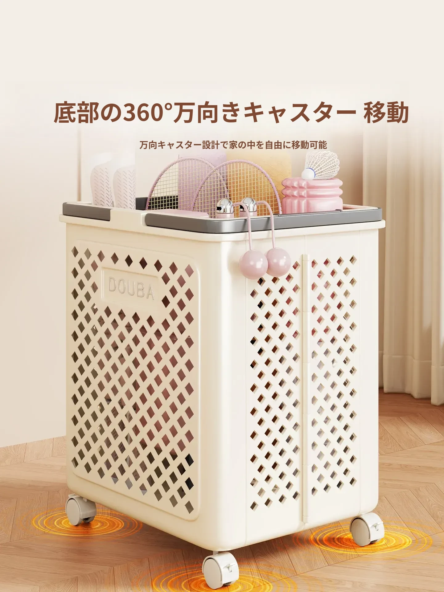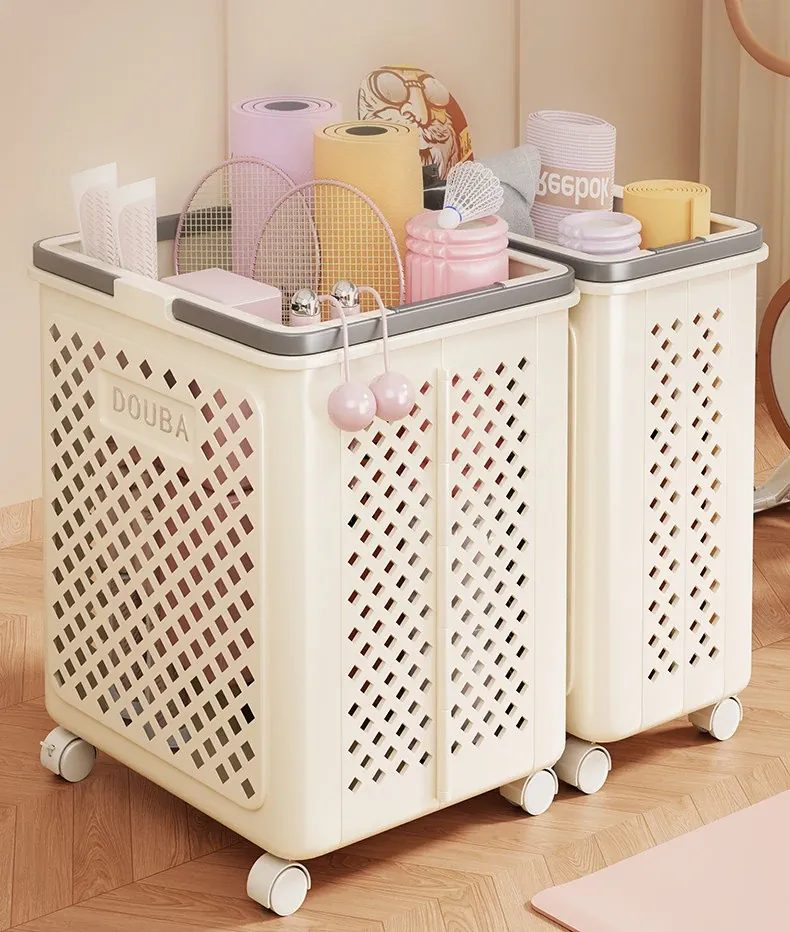 ヨガマット収納バスケット|家用|キャスター付きで移動ラクラク|フィットネス器具整理の必需品|折りたたみ可能なバドミントン収納バスケット|スッキリ片付けて快適な空間を実現!