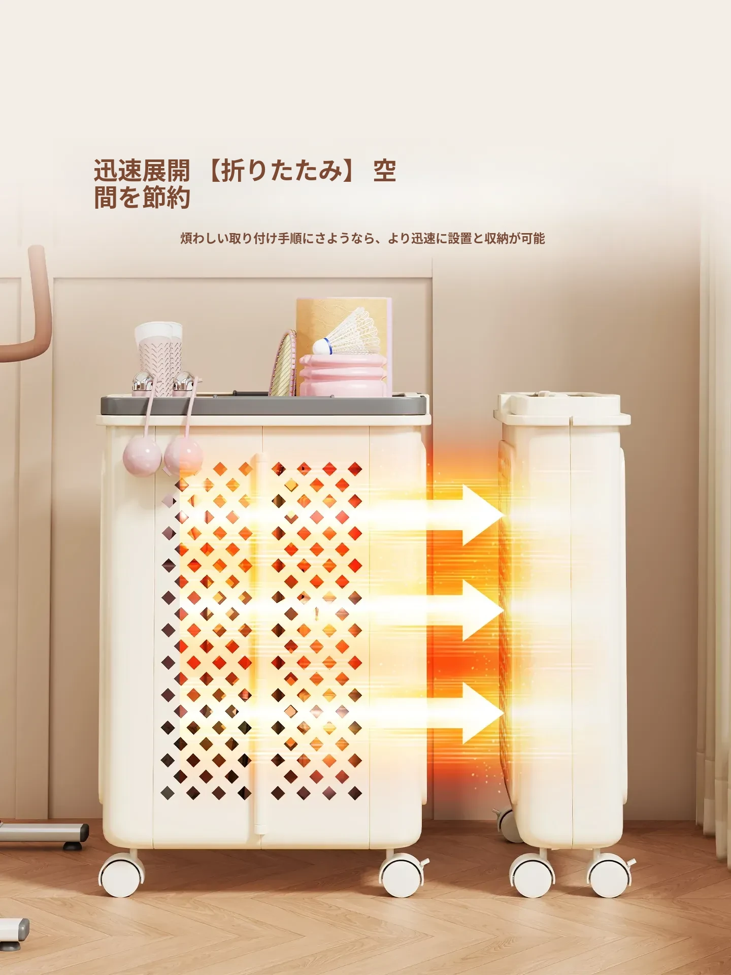 クリームホワイト⭐【中サイズ-キャスター付き】折りたたみ可
