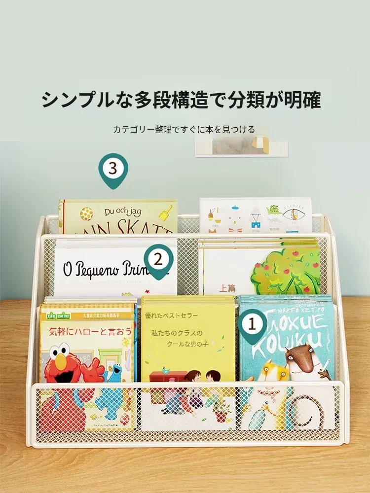 子供用デスクトップ絵本収納ボックス ベッドサイド・窓辺にぴったり!小さなお子様のための本やおもちゃを整理整頓。おしゃれな読書ラックで、楽しい読書時間を演出します!
