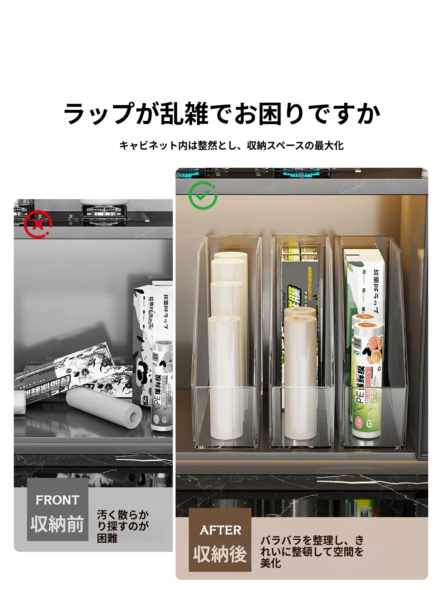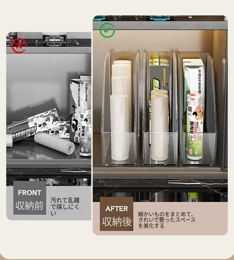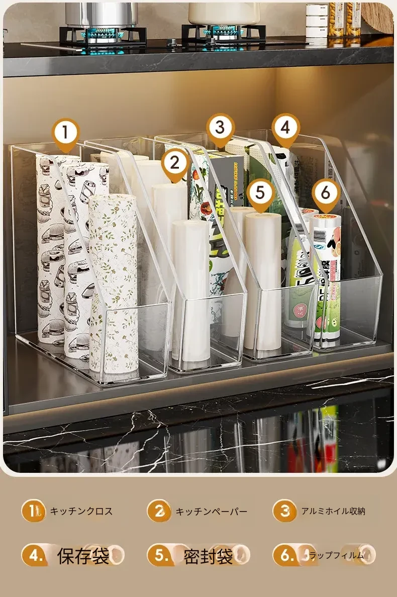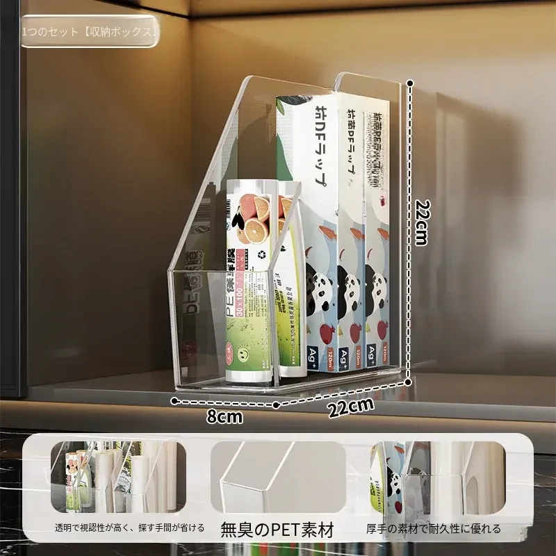 キッチン収納の必需品!透明な密封袋とプラスチック袋をスッキリ整理できる保鮮膜収納ラック。使いやすく、家事の効率をアップ!おしゃれで実用的なアイテムです。