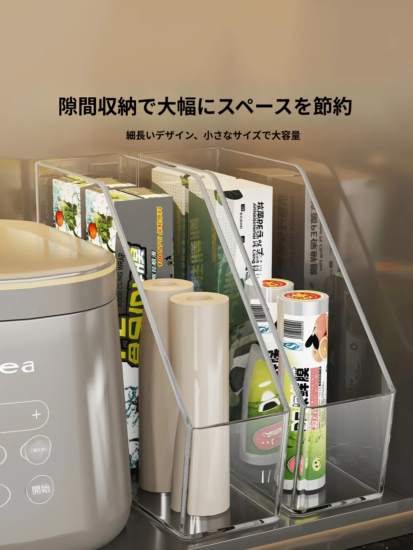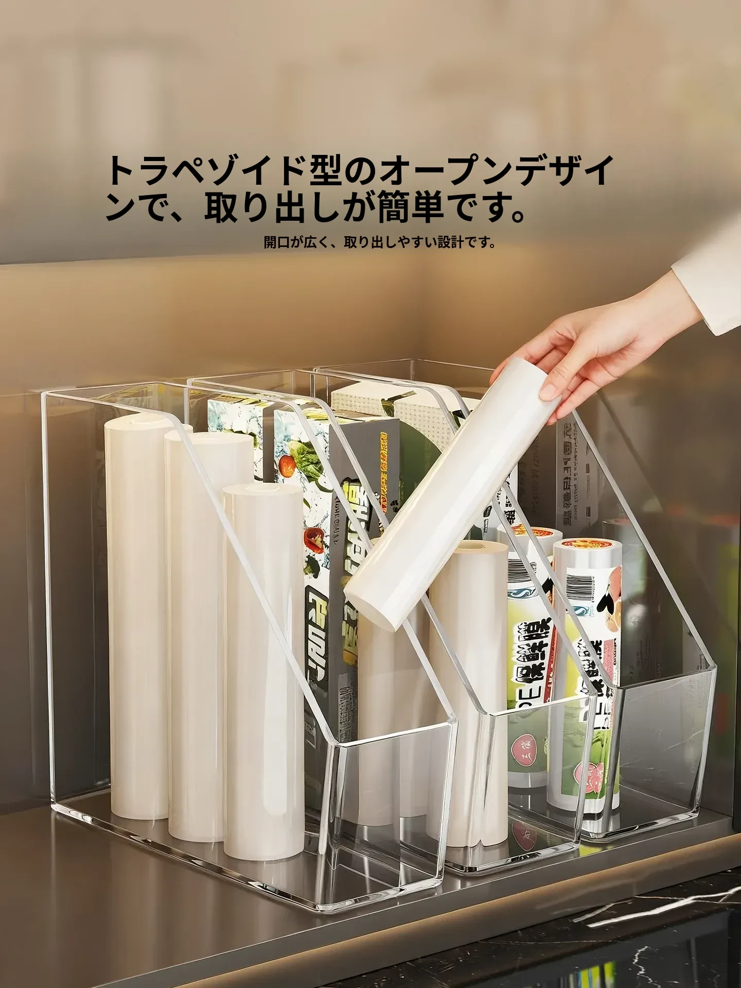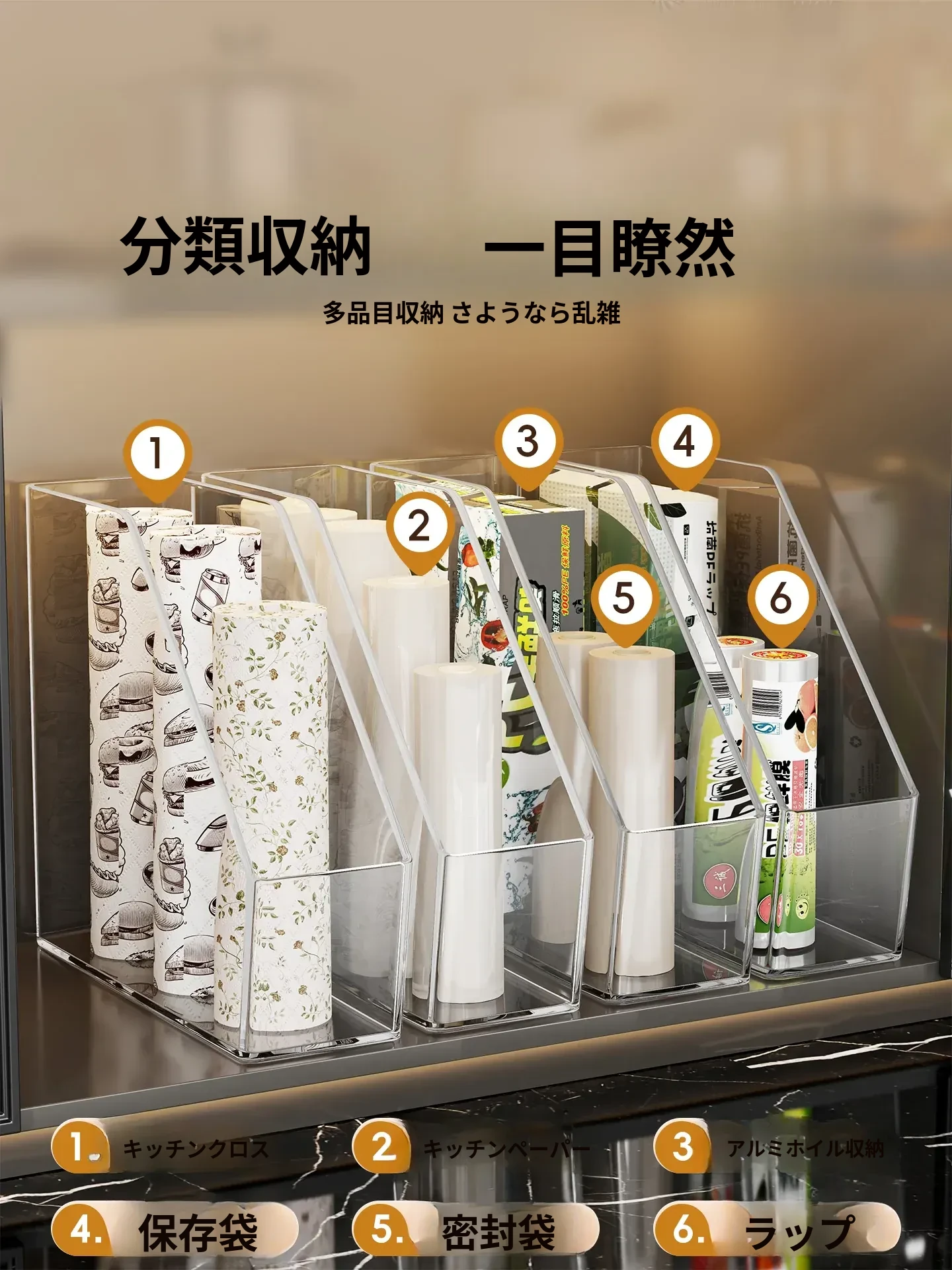 キッチン収納の必需品!透明な密封袋とプラスチック袋をスッキリ整理できる保鮮膜収納ラック。使いやすく、家事の効率をアップ!おしゃれで実用的なアイテムです。