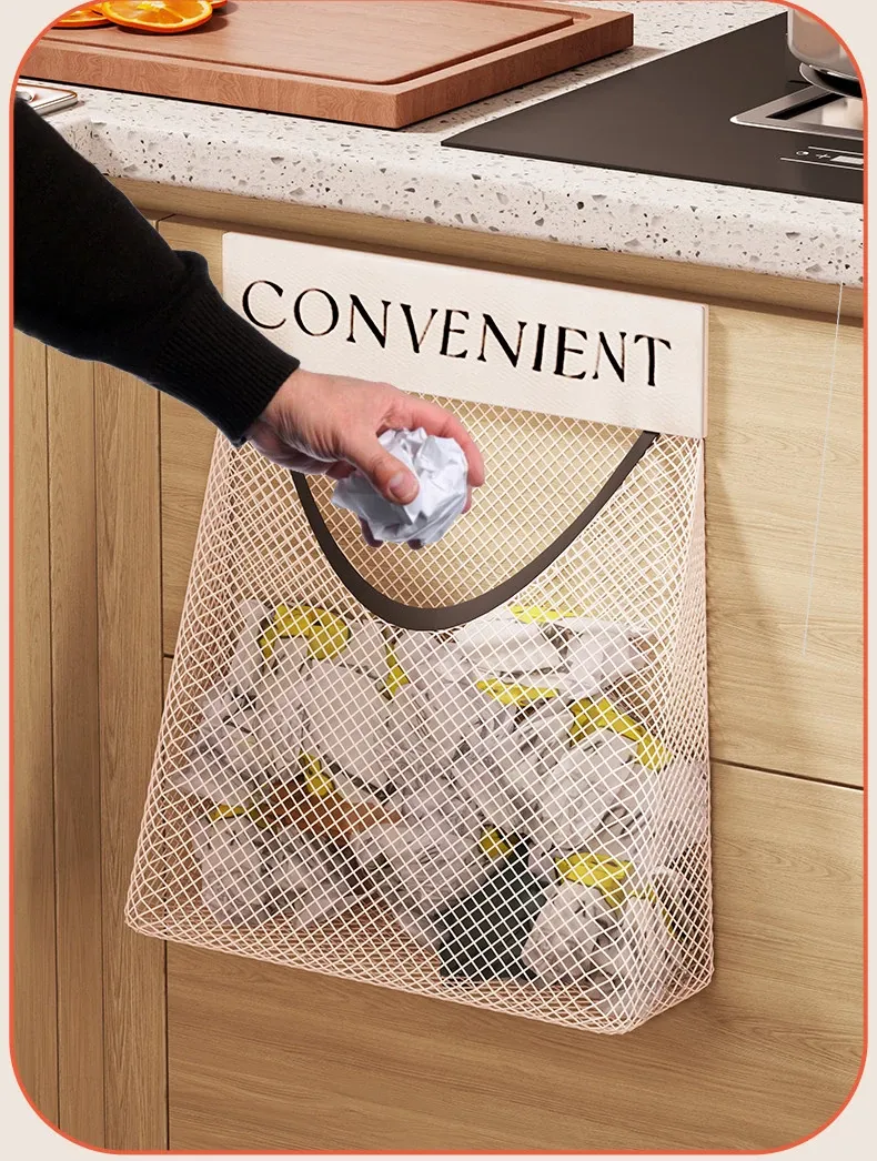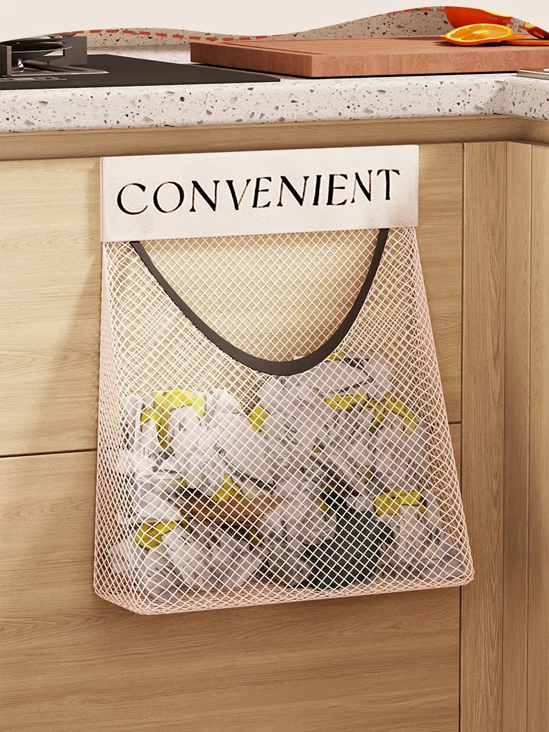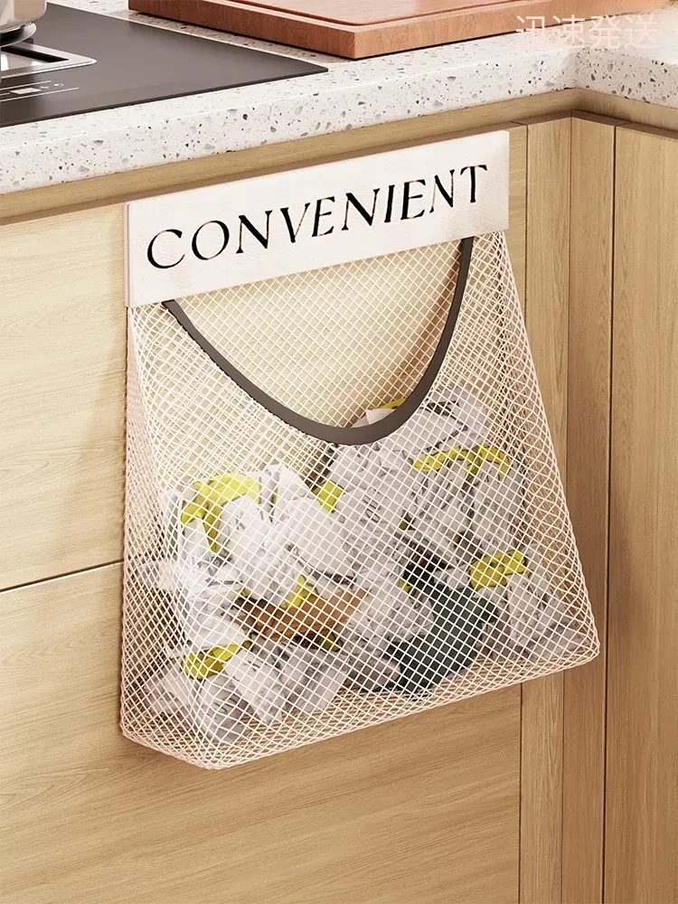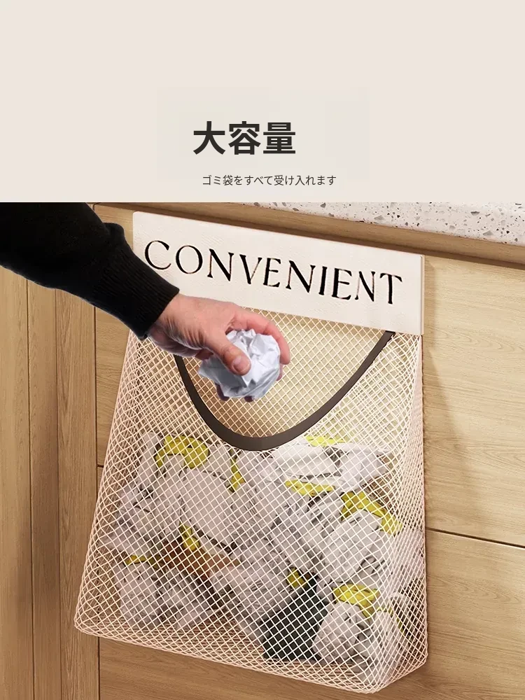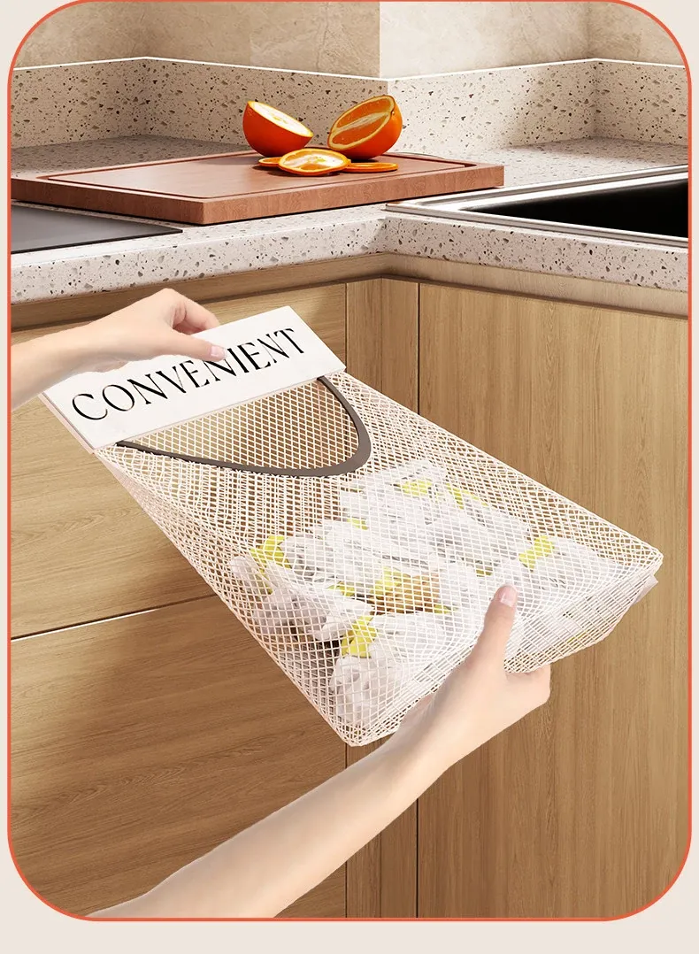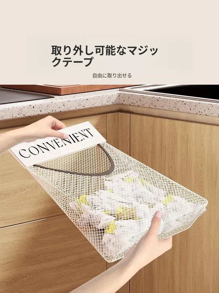 キッチン壁掛け大容量ゴミ袋収納器!プラスチック袋をすっきり整理できる便利なネットポケット。スペースを有効活用し、いつでも使いたい時にサッと取り出せる!生活をもっと快適にする必須アイテム!