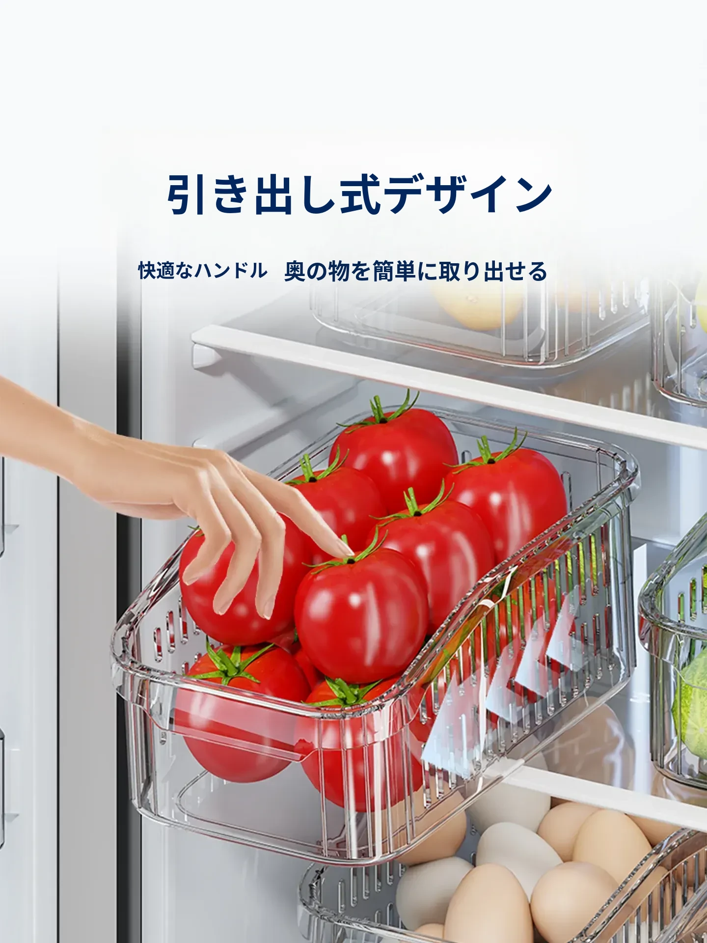 大容量冷蔵庫収納ボックス!食品保存に最適な引き出し式キッチン用野菜・卵整理収納グッズ。おしゃれで便利、キッチンをスッキリ整頓!