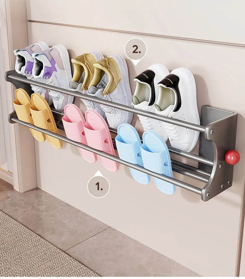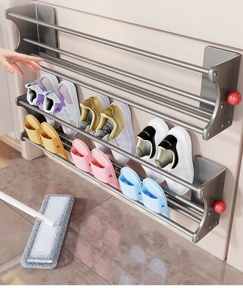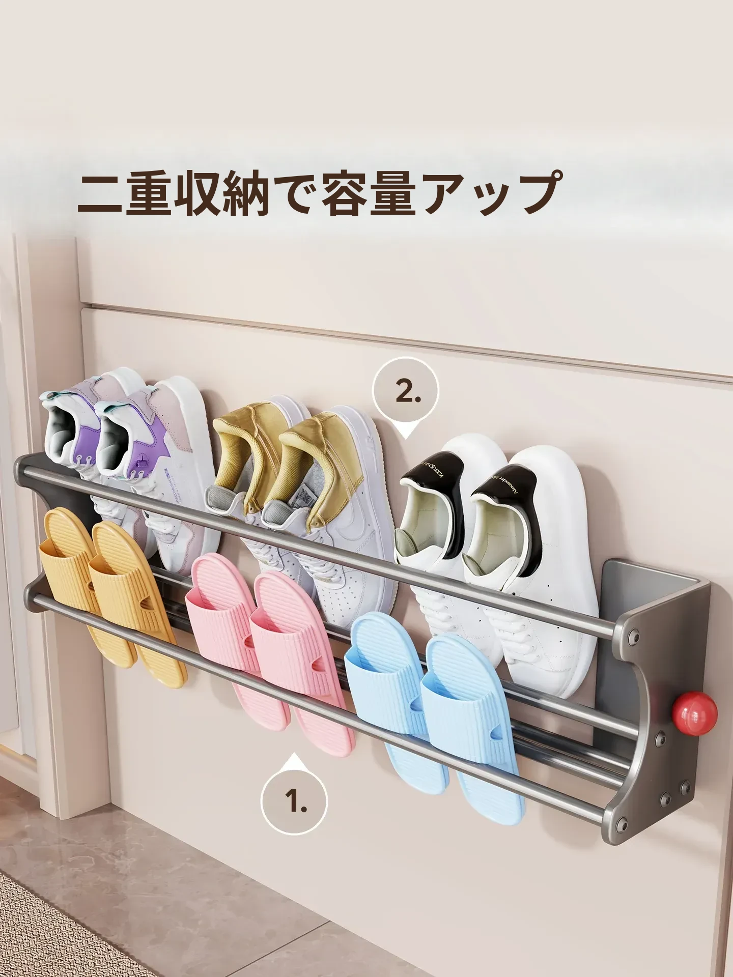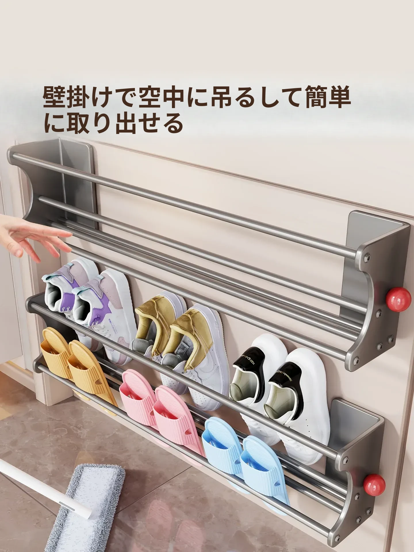 マグネットシューズラック 玄関ドア背面取り付け不要の靴収納ラック 家庭用スリッパ整理棚 浴室・洗面所壁掛け靴水切りラックで、スペースを有効活用!おしゃれで便利な収納アイテム!