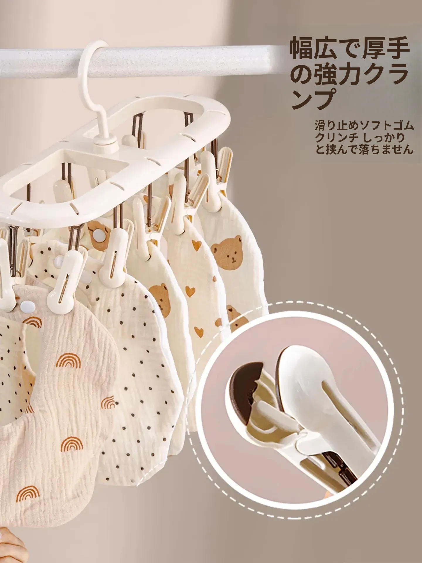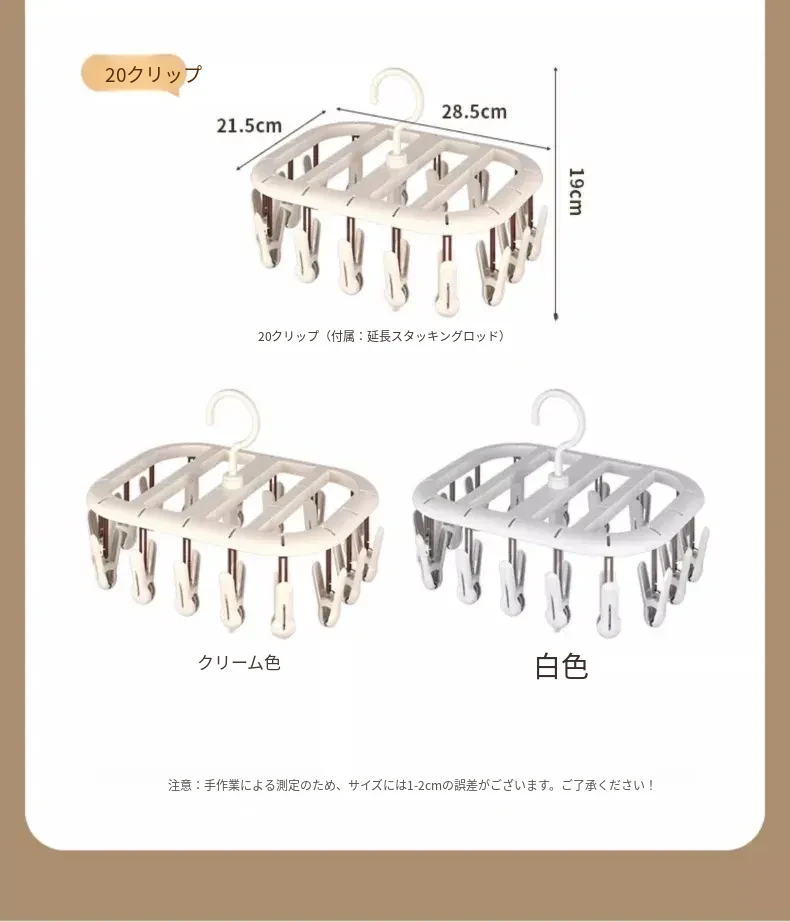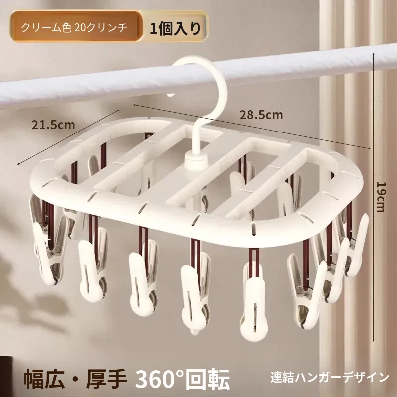 20クリップクリーム色【360°回転丨厚手で連結可能】