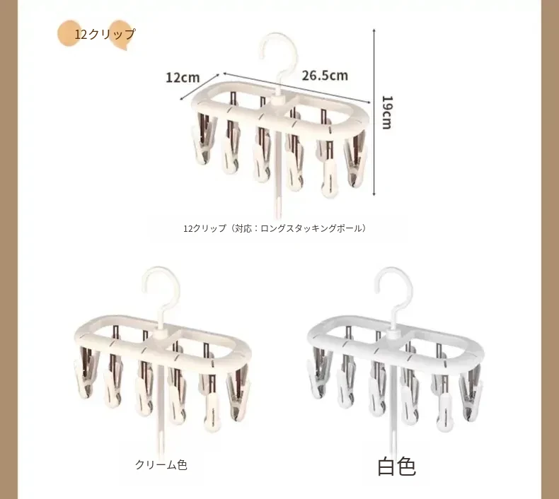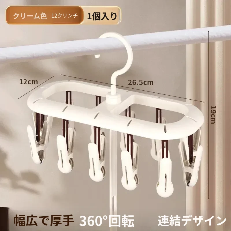 12クリップクリーム色【360°回転丨厚手で連結可能】