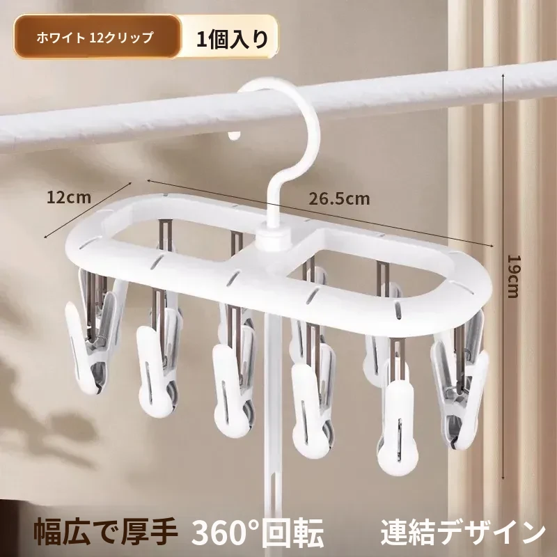 12クリップホワイト【360°回転丨厚手で連結可能】