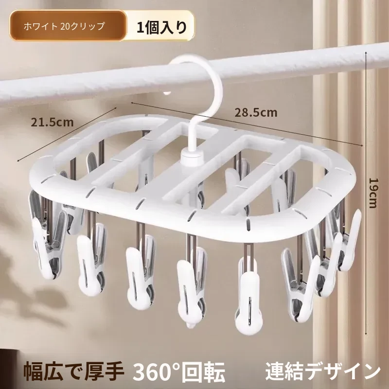 20クリップホワイト【360°回転丨厚手で連結可能】