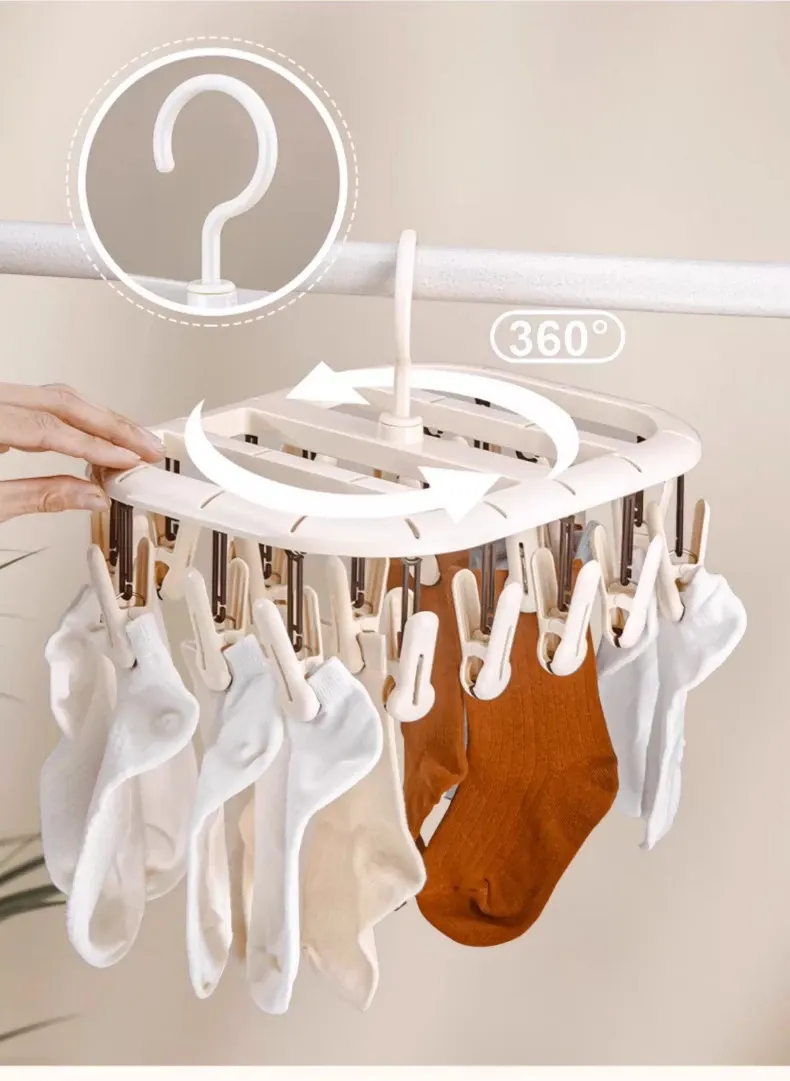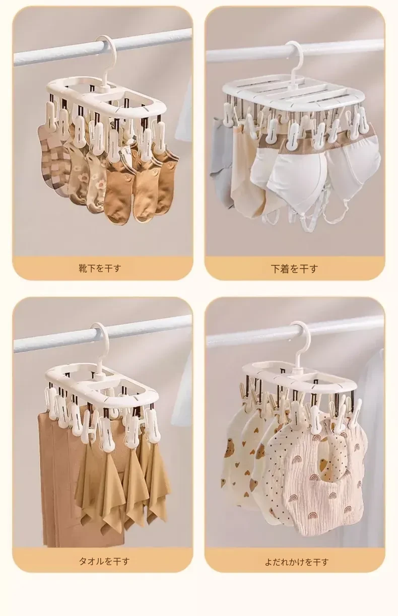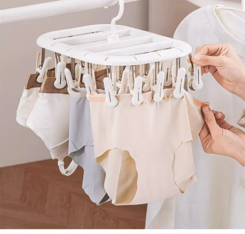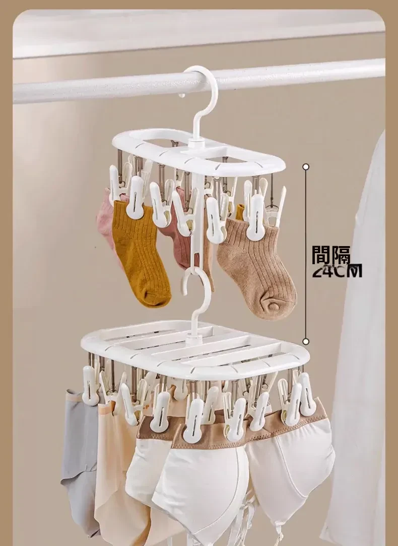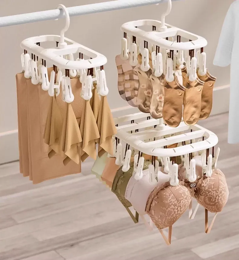 多機能ソックスクリップ付き衣類干しラック - 靴下や下着を簡単に干せる学生寮専用の便利アイテム!おしゃれで省スペース、衣類の乾燥がスムーズに!