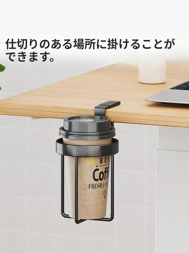 デスクサイドにぴったり!オフィスや教室で大活躍の水杯&コーヒー置き架!椅子のアームレストにも取り付け可能で、スペースを有効活用。飲み物をすっきり収納して、快適な作業環境を実現!