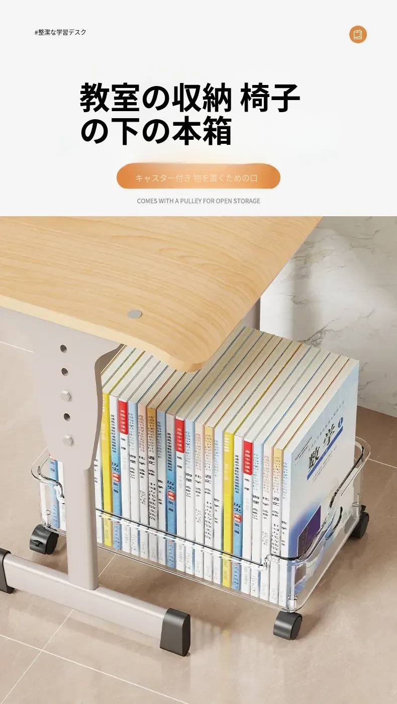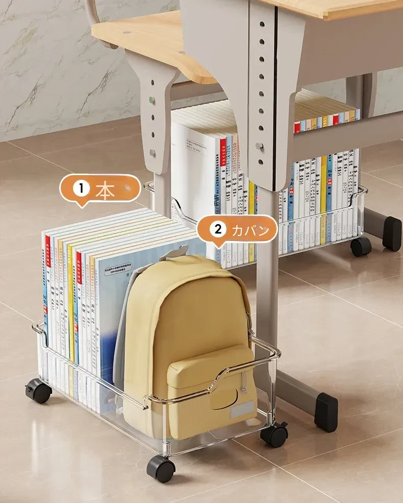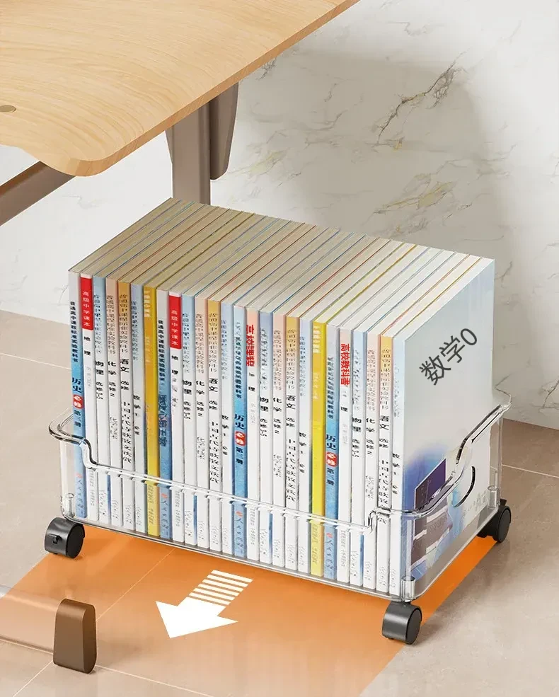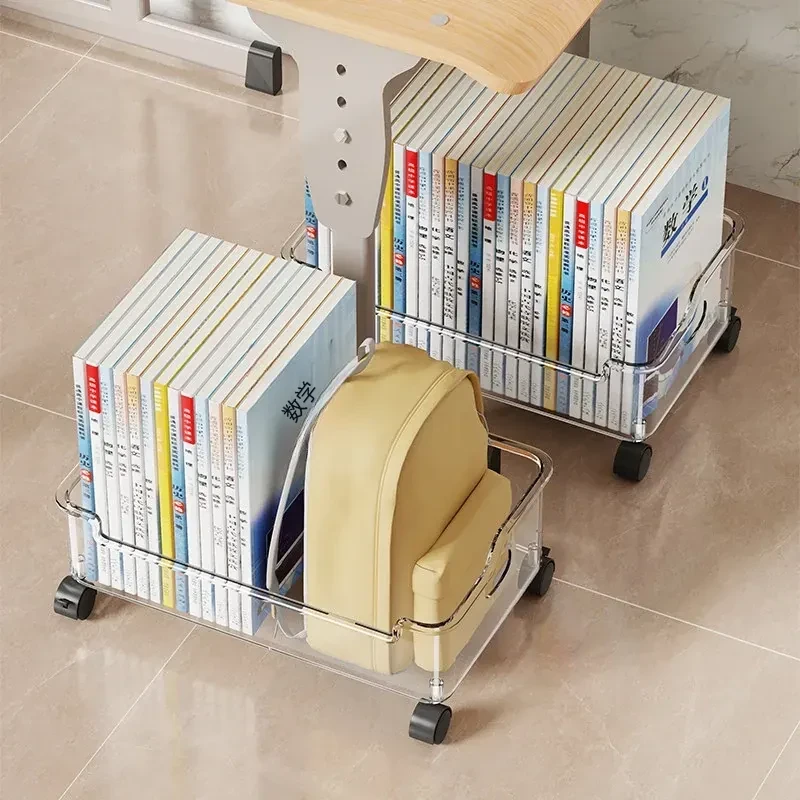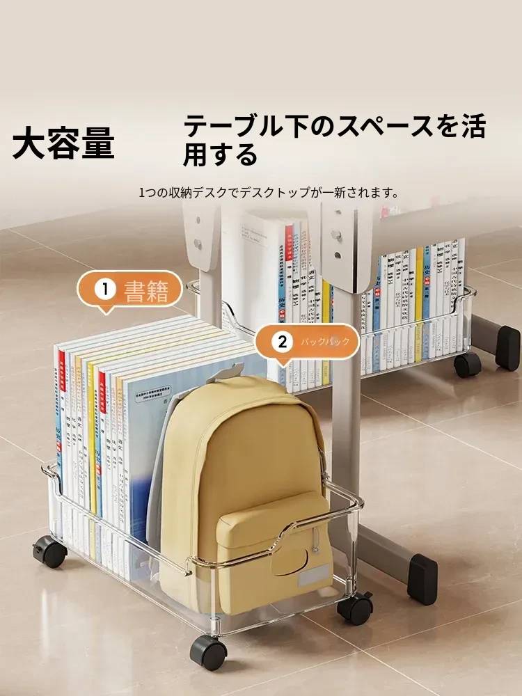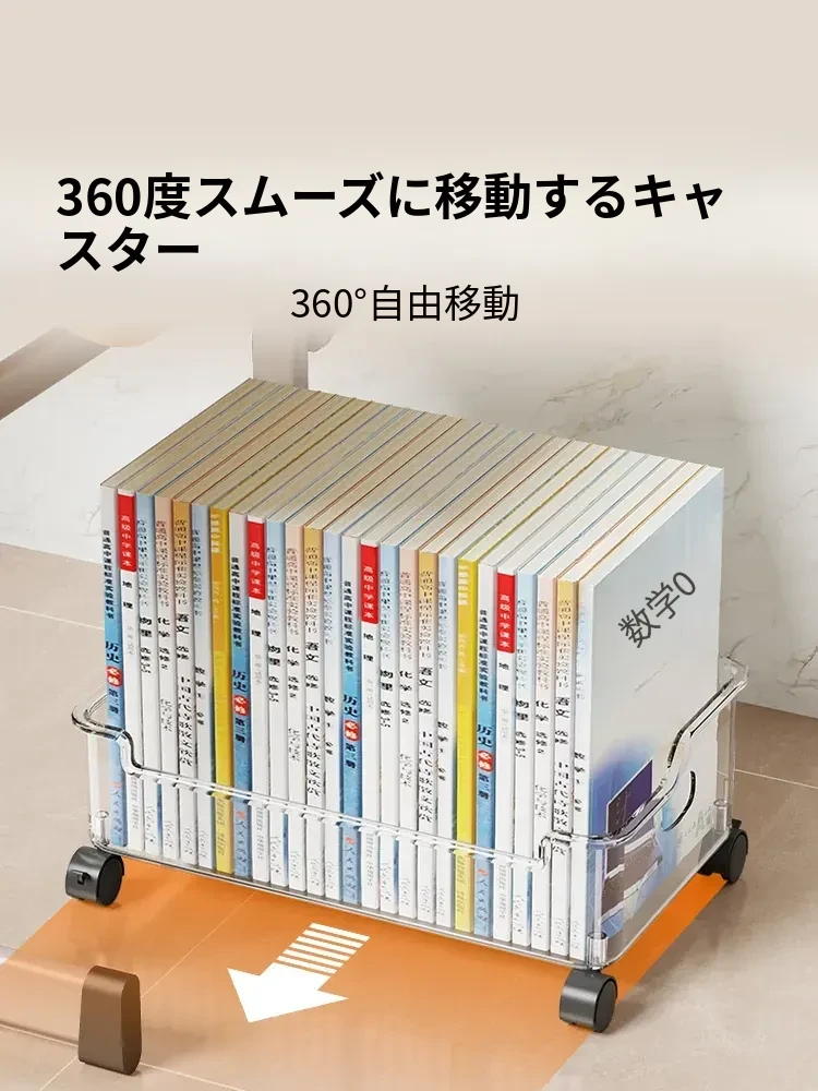 多機能大容量ブック収納ボックス - 移動式キャスター付き、デスク下にぴったり!家庭用バック整理ラックでスッキリ収納!