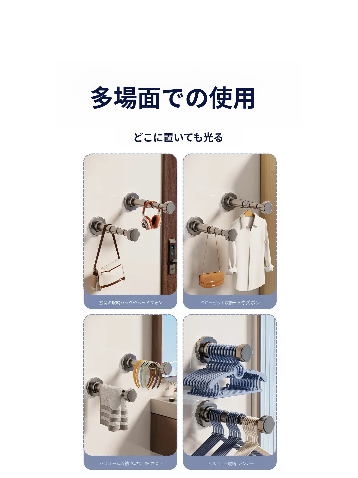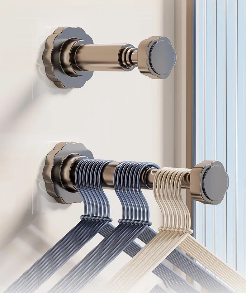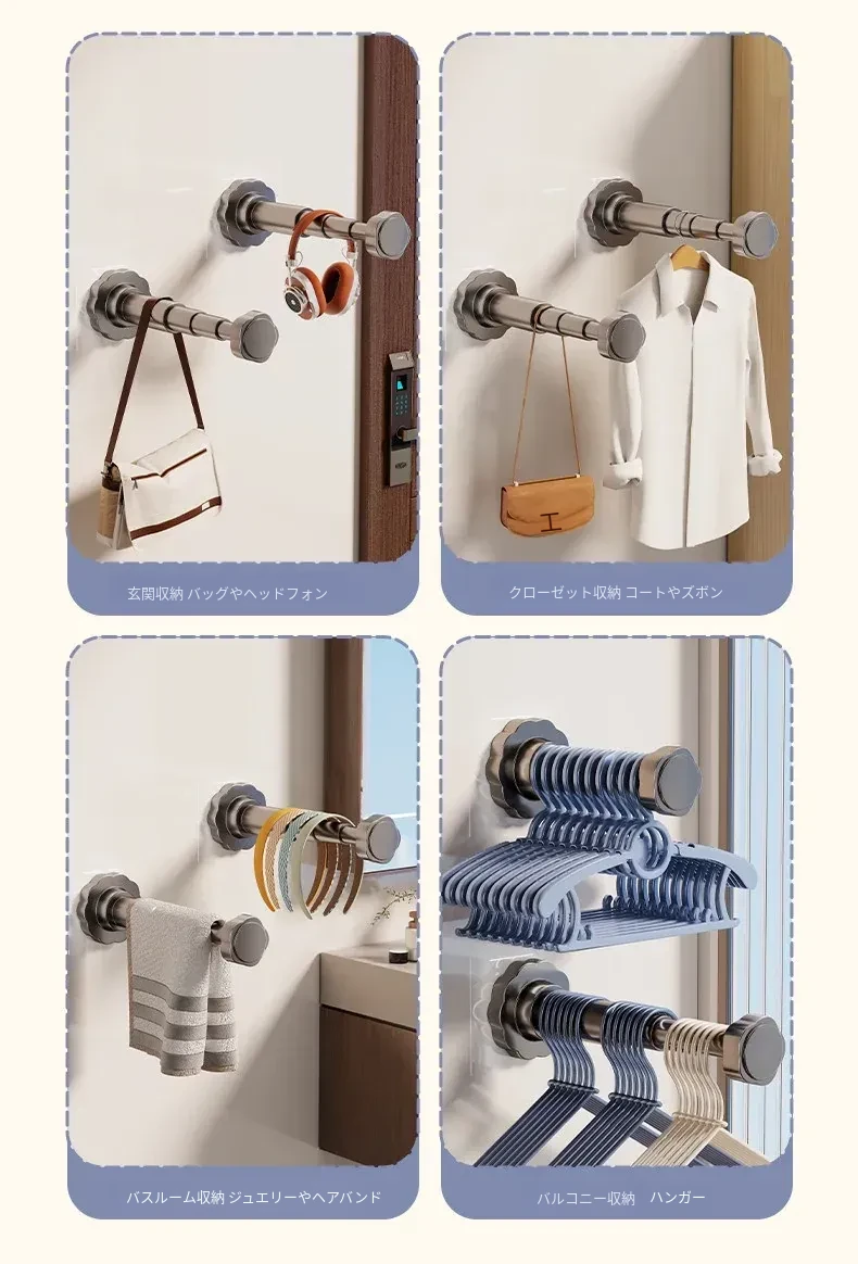 吸盤式衣類ハンガー収納神器!家用・バルコニー向け、マルチ機能の伸縮式で穴なし・跡なし!壁掛けでスペースを有効活用、便利でスタイリッシュな収納を実現!