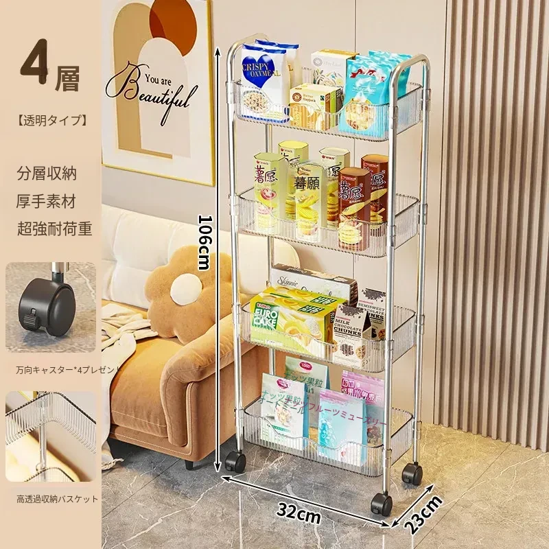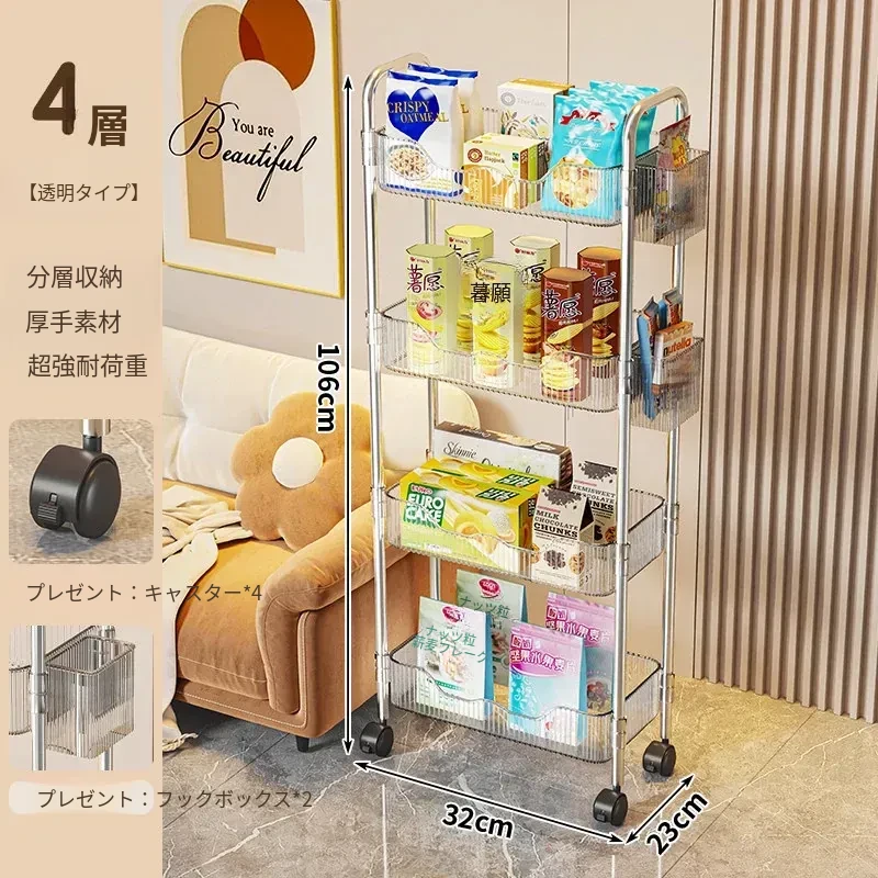 透明❤4層【プレゼント:バスケット*2+キャスター*4】