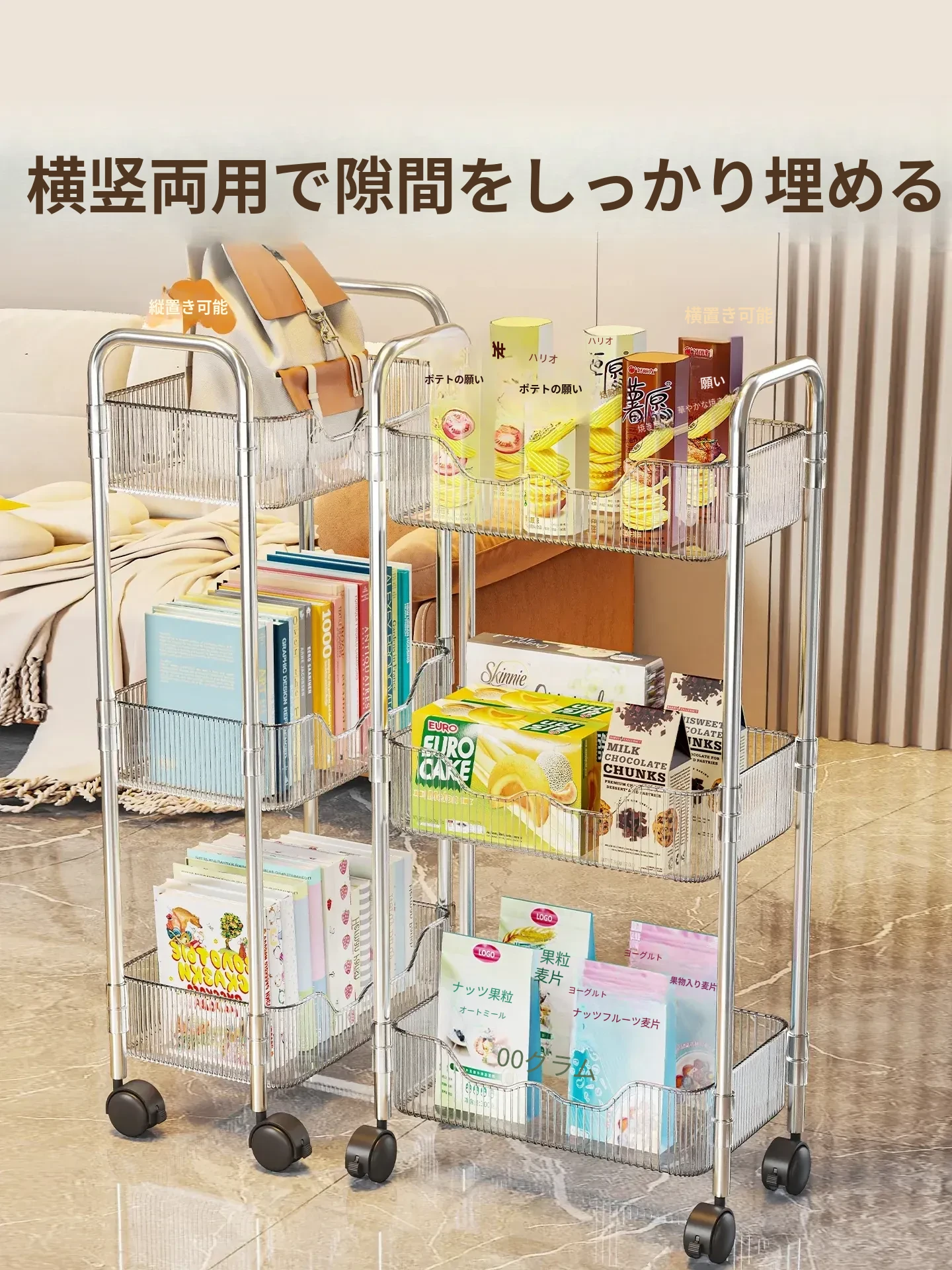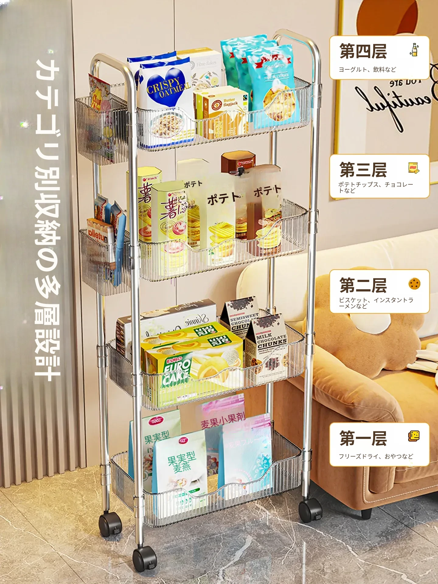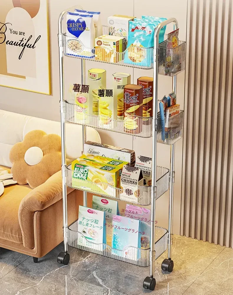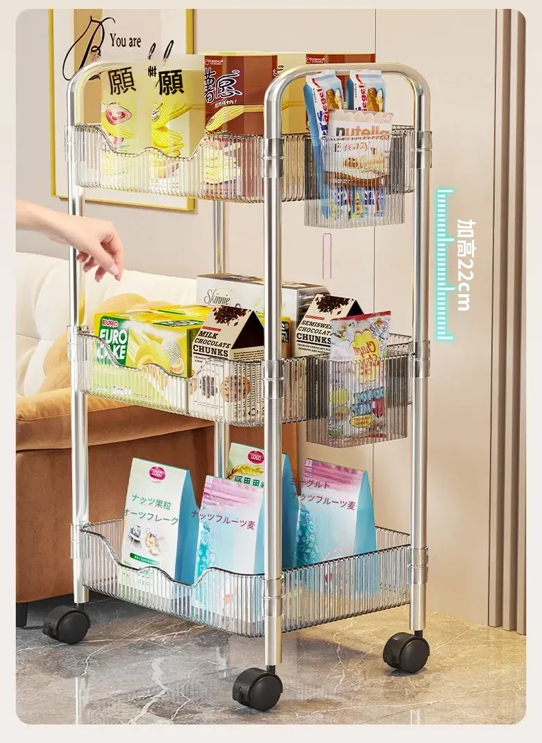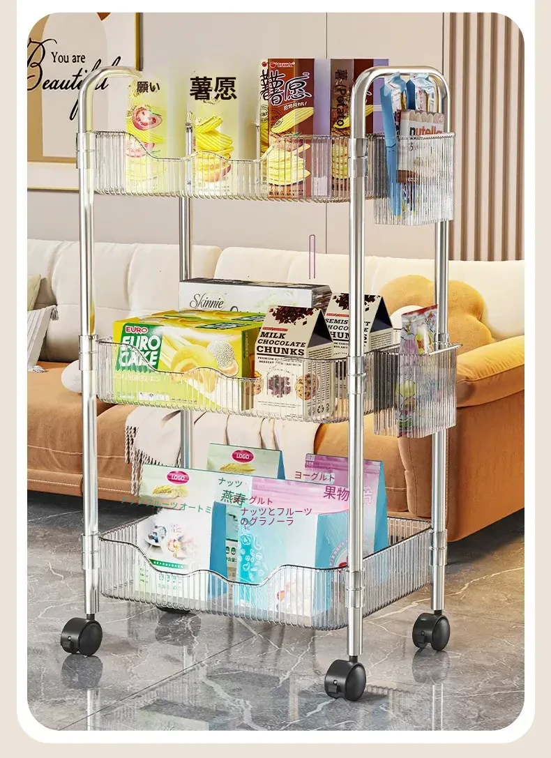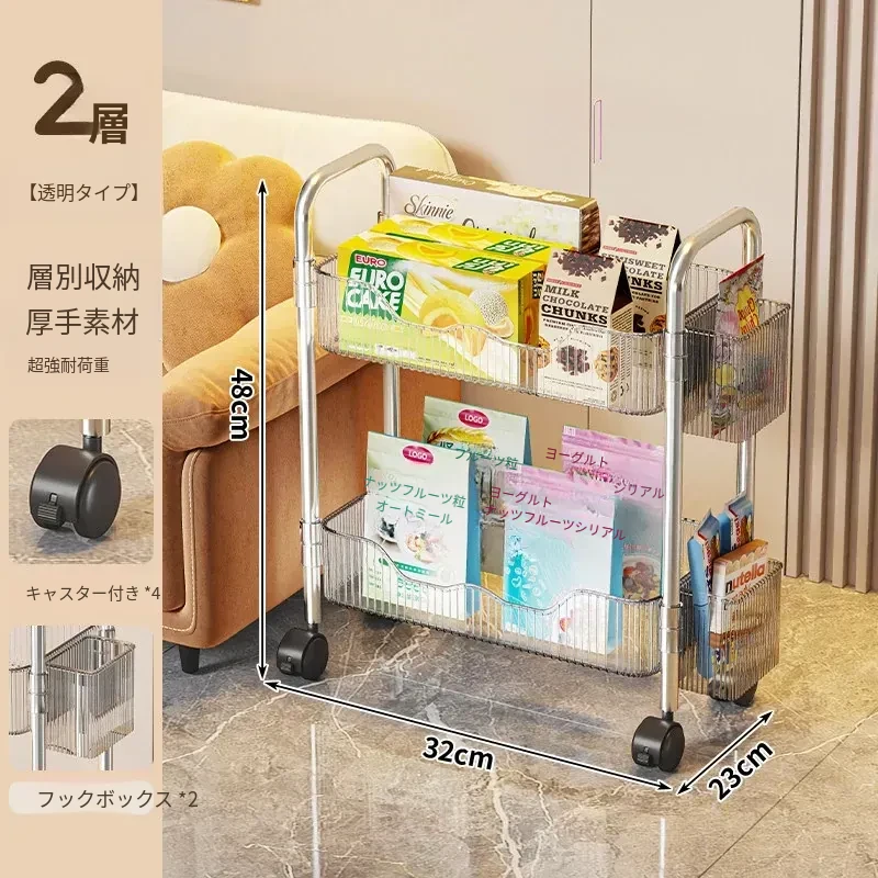 多機能小型キャリーラック - 家庭用のスタイリッシュな多層収納棚!お菓子やリュックもスッキリ整理できるアクリル製のデスク下収納の必需品!あなたの生活空間をおしゃれに変身させましょう!