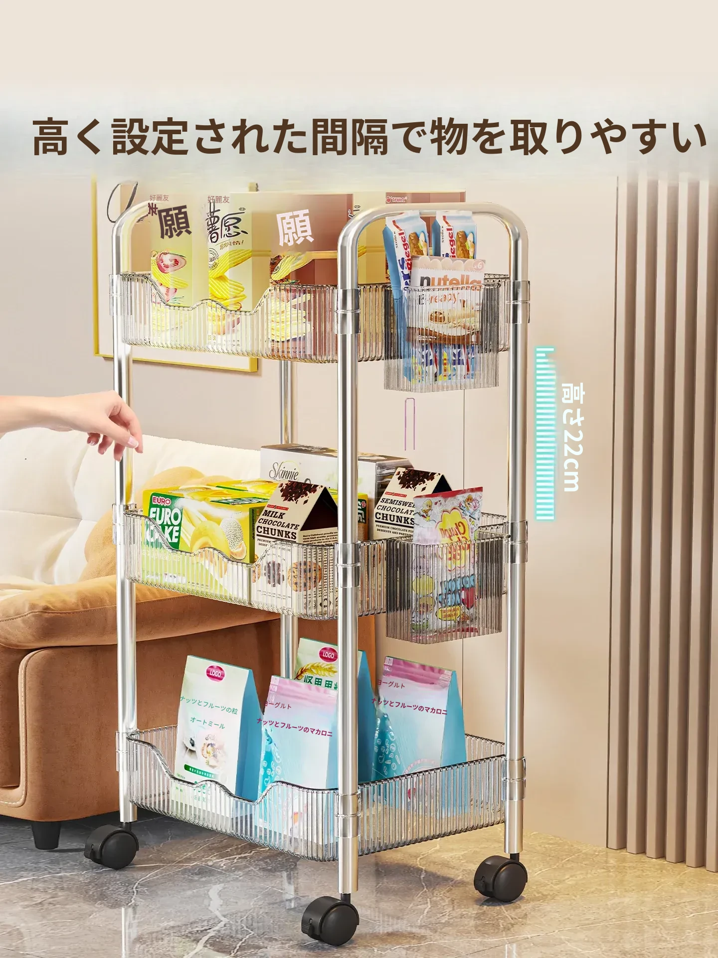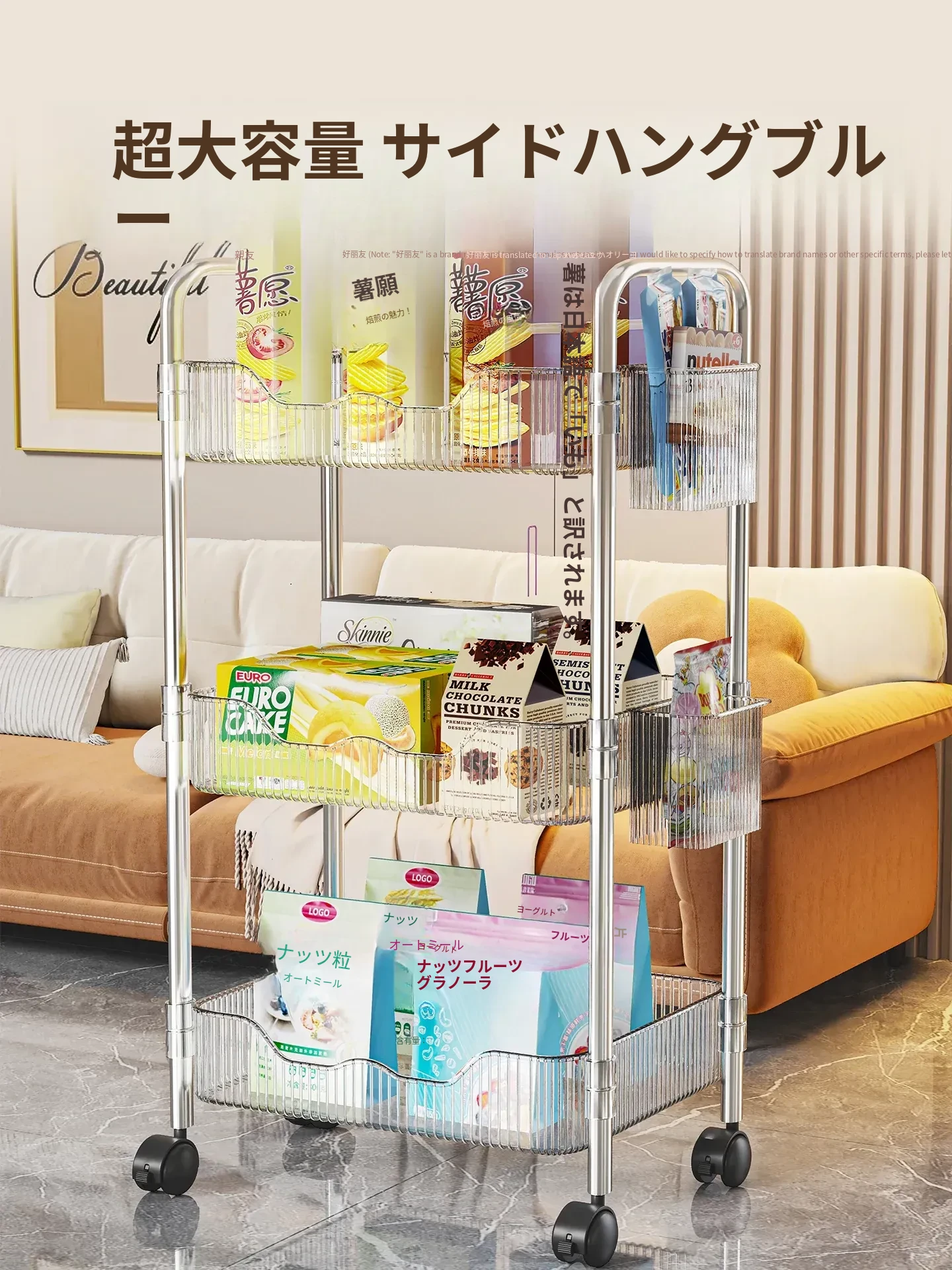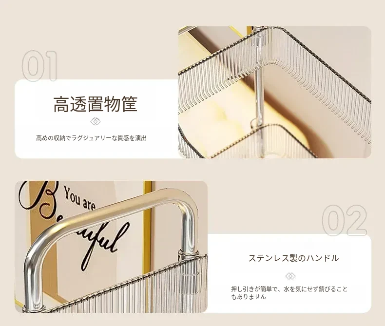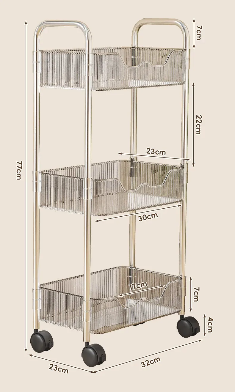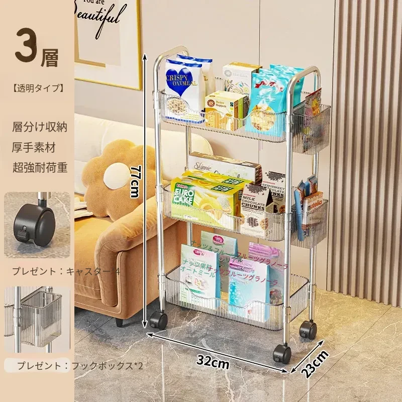 透明❤3層【プレゼント:バスケット*2+キャスター*4】