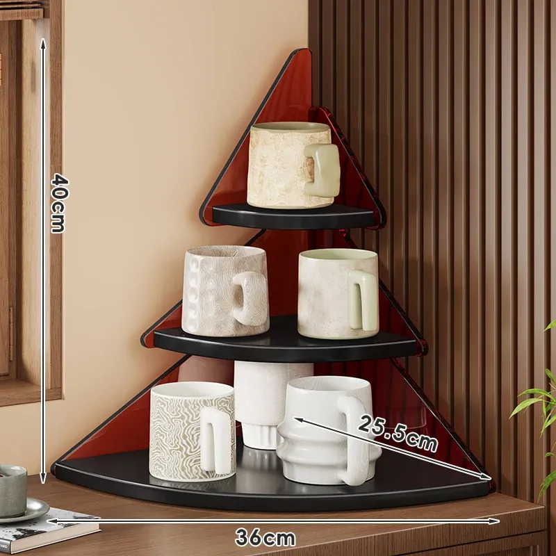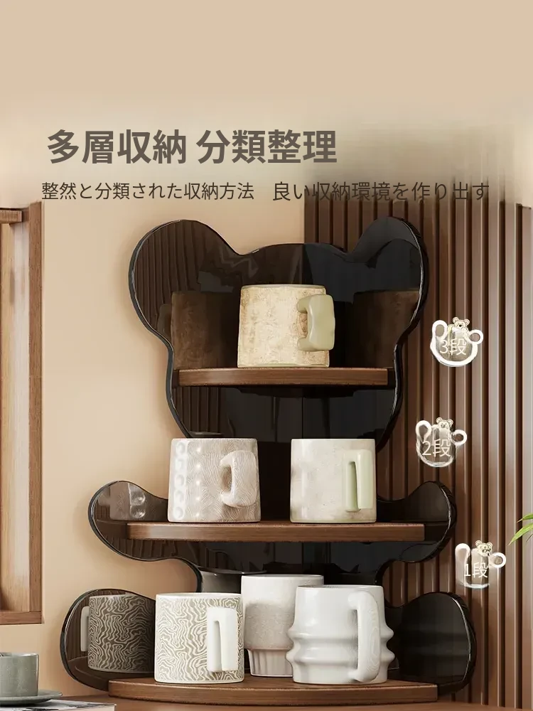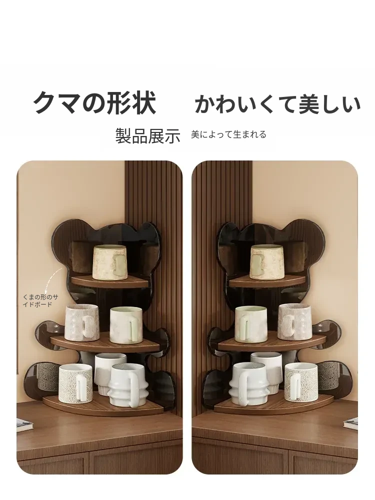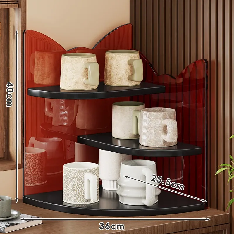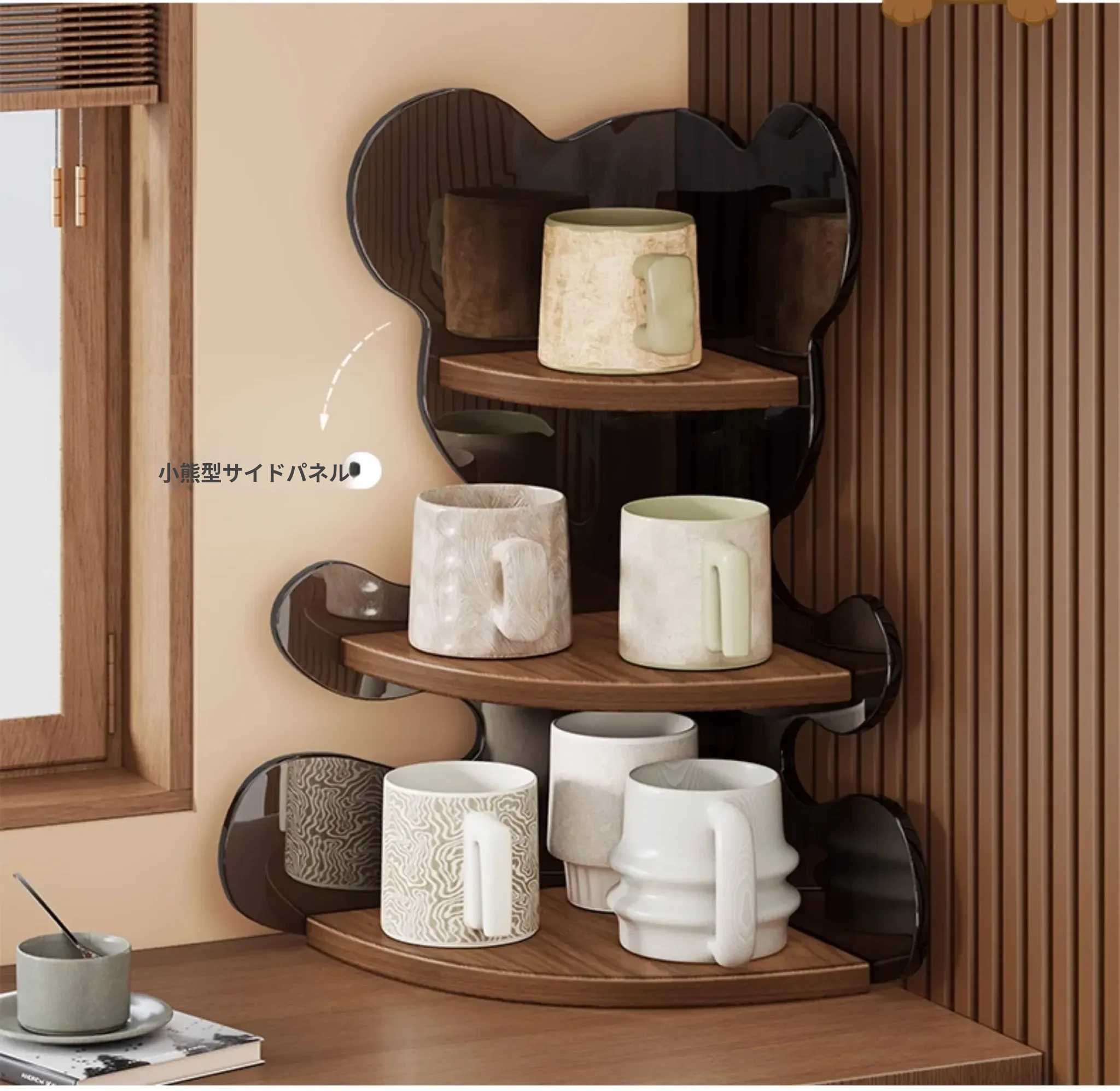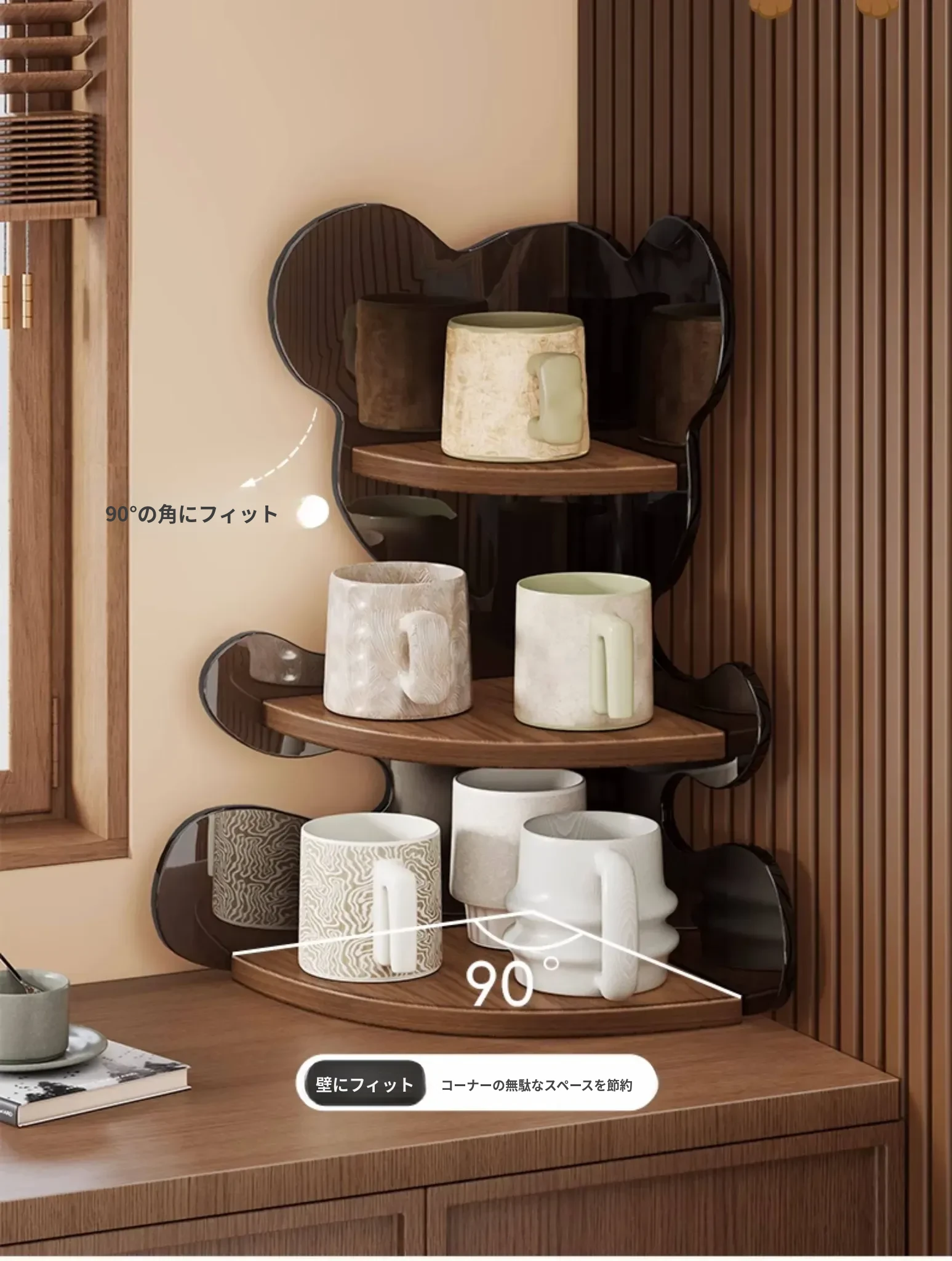 デスク用コーナー収納ラック - エントランスやキッチン、ダイニングテーブル、ドレッサーに最適!多層設計で水杯や化粧品をすっきり整理。小型で場所を取らず、スタイリッシュな空間を演出します!