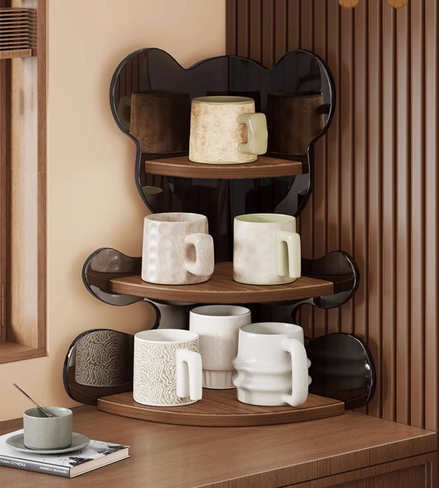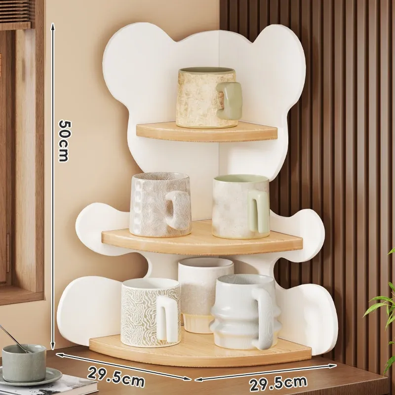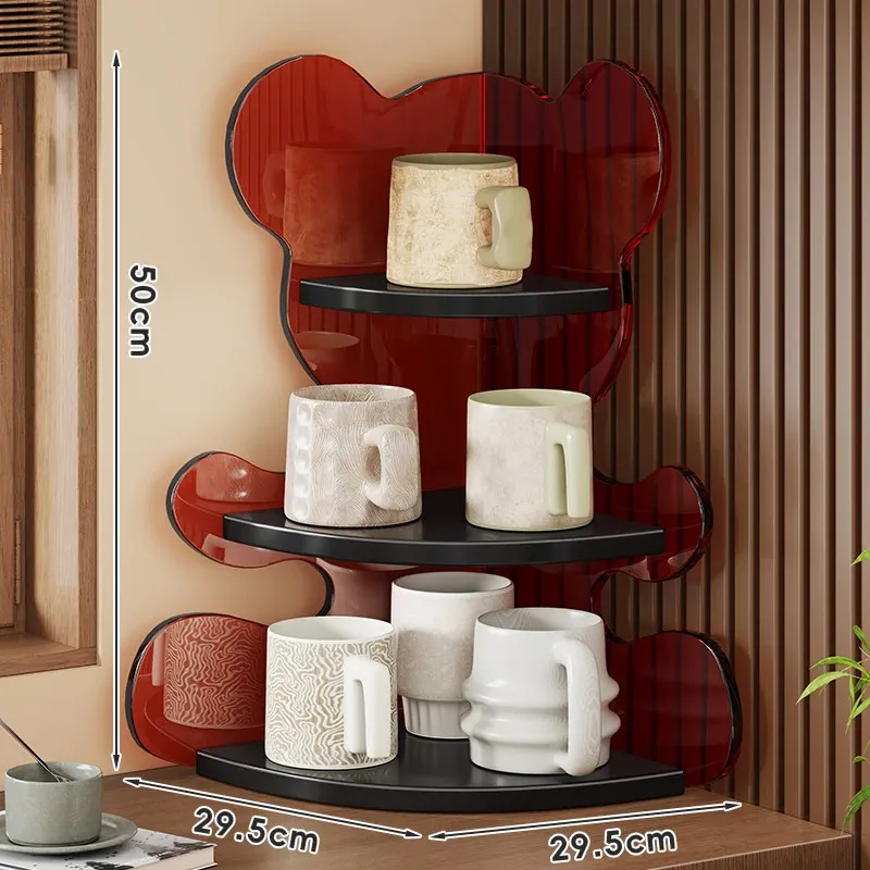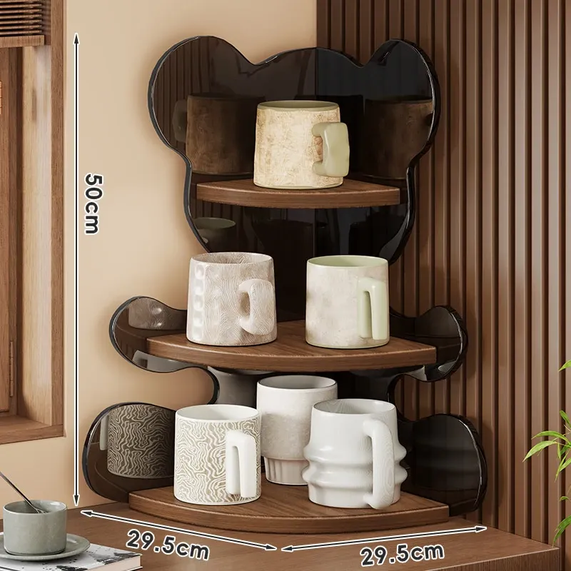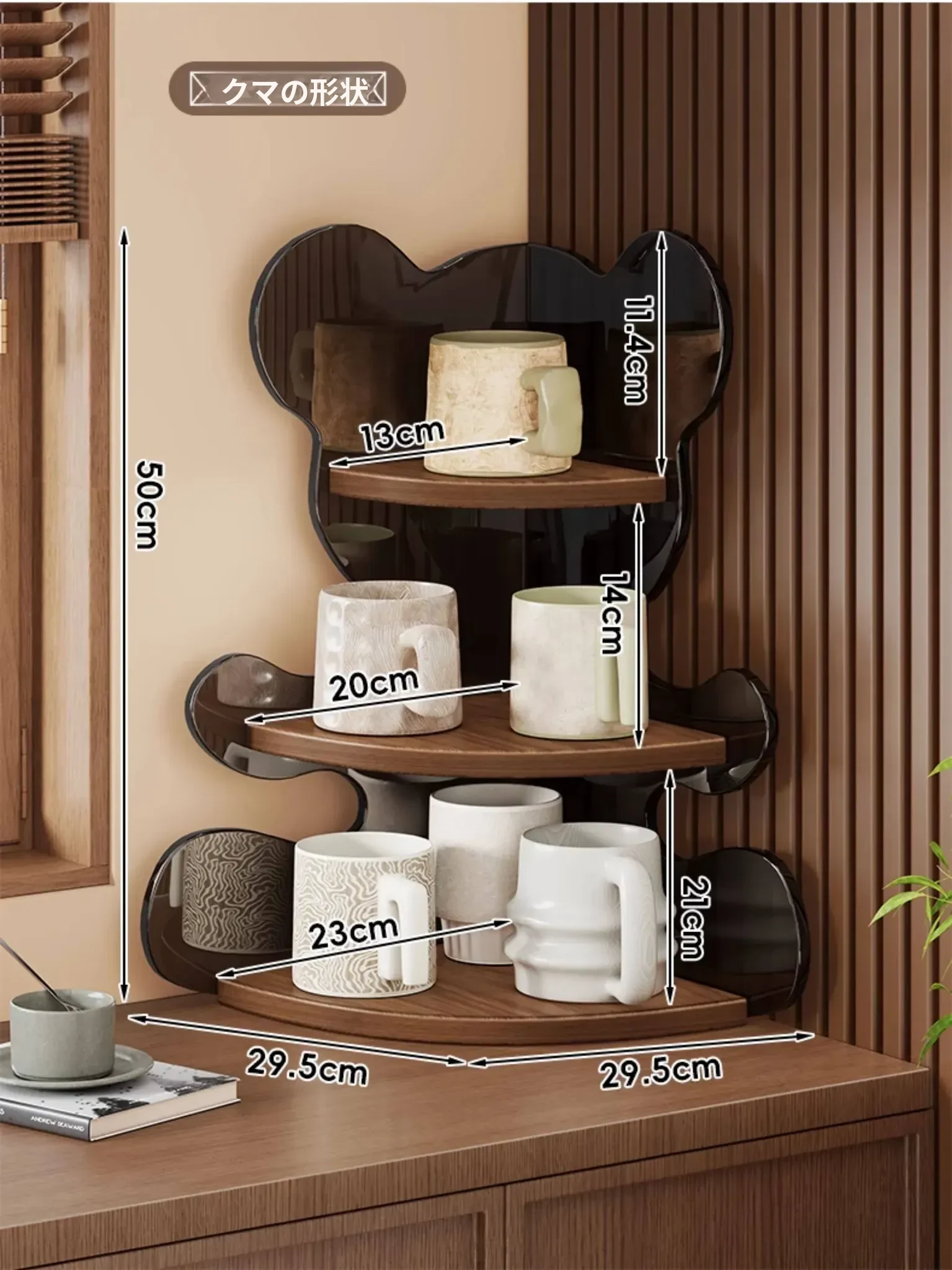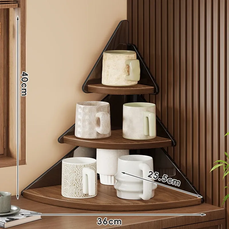 デスク用コーナー収納ラック - エントランスやキッチン、ダイニングテーブル、ドレッサーに最適!多層設計で水杯や化粧品をすっきり整理。小型で場所を取らず、スタイリッシュな空間を演出します!