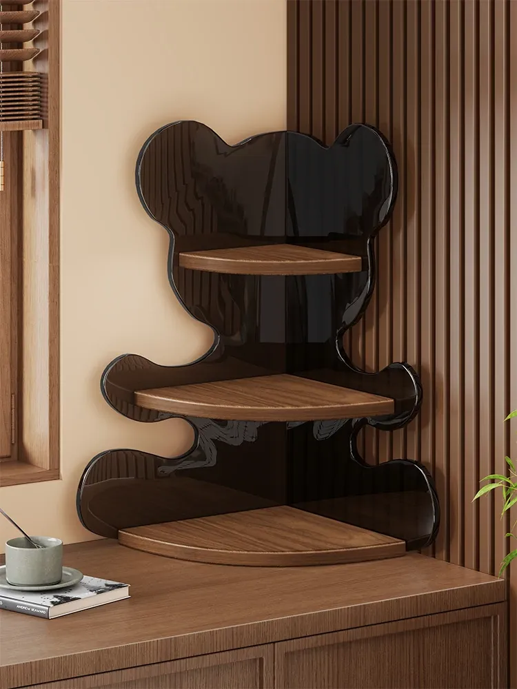 ❤クマ型❤コーナーラック【ウォールナット-黒茶】