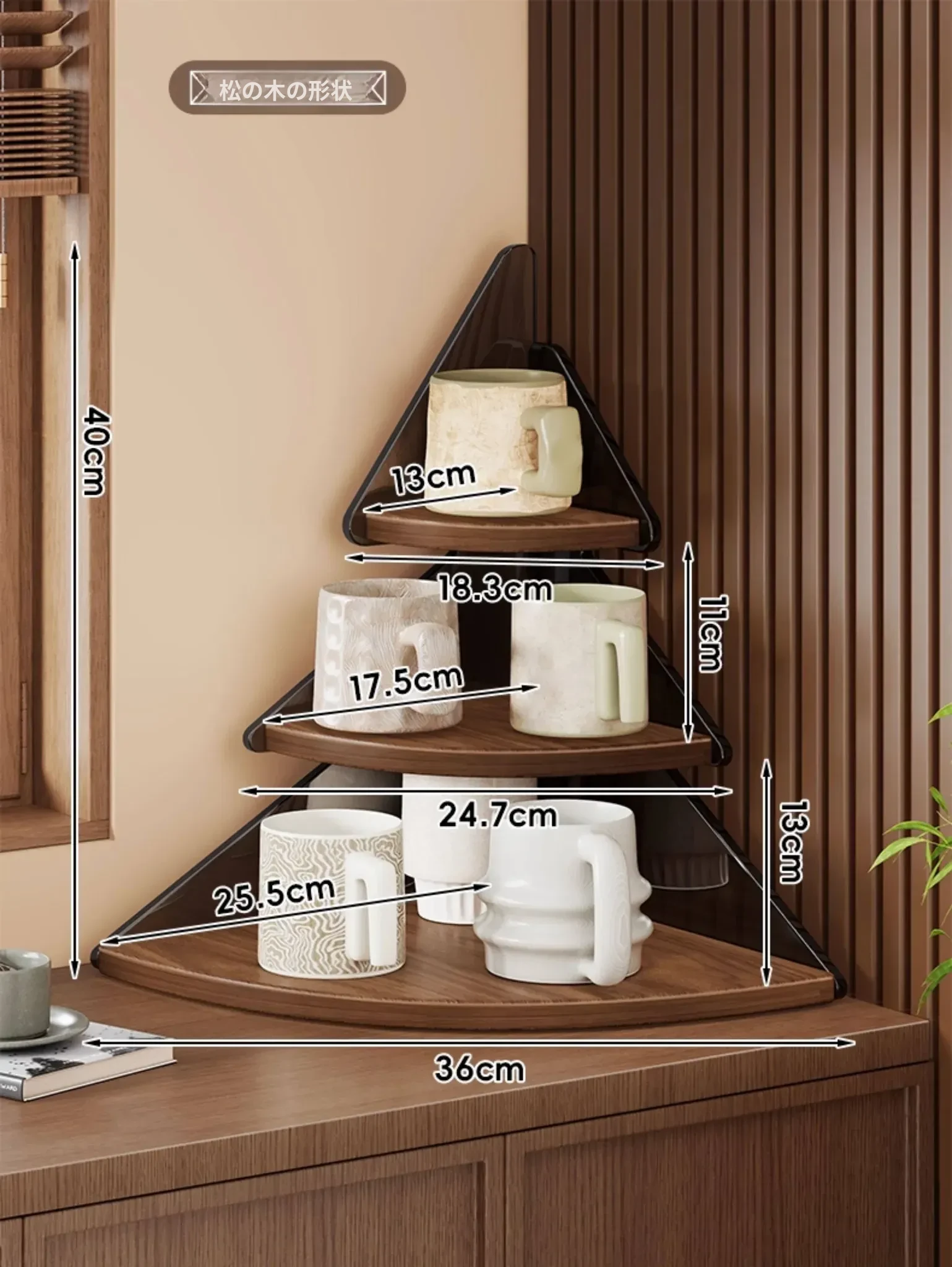 ⭐松の木型⭐コーナーラック【ブラック-紅茶】