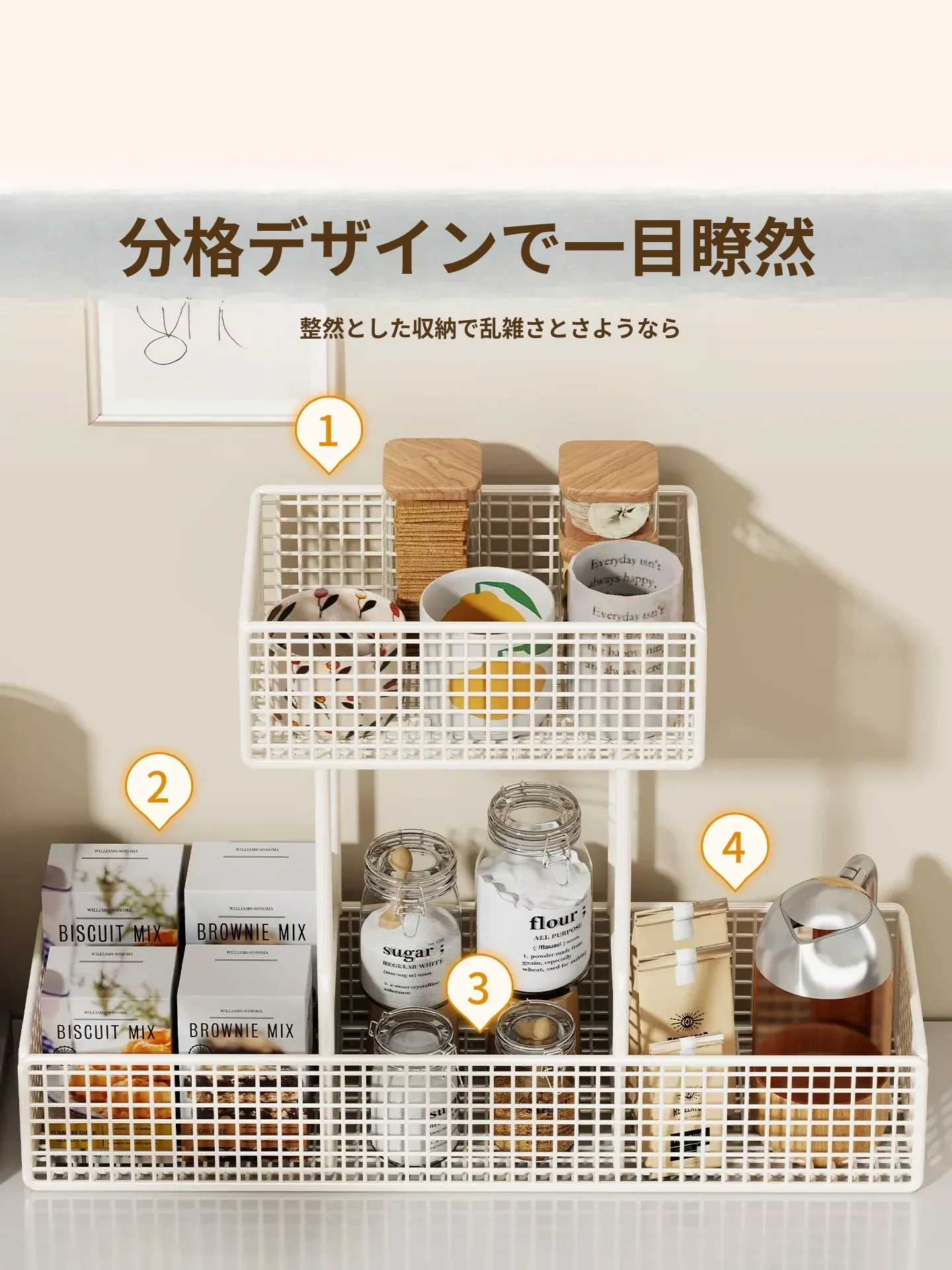 デスク上の整理整頓に最適!多層ティーバッグ&スナック収納ラック - キッチンやダイニングテーブルをスッキリ整頓。調味料も一目でわかる便利なアイテム!