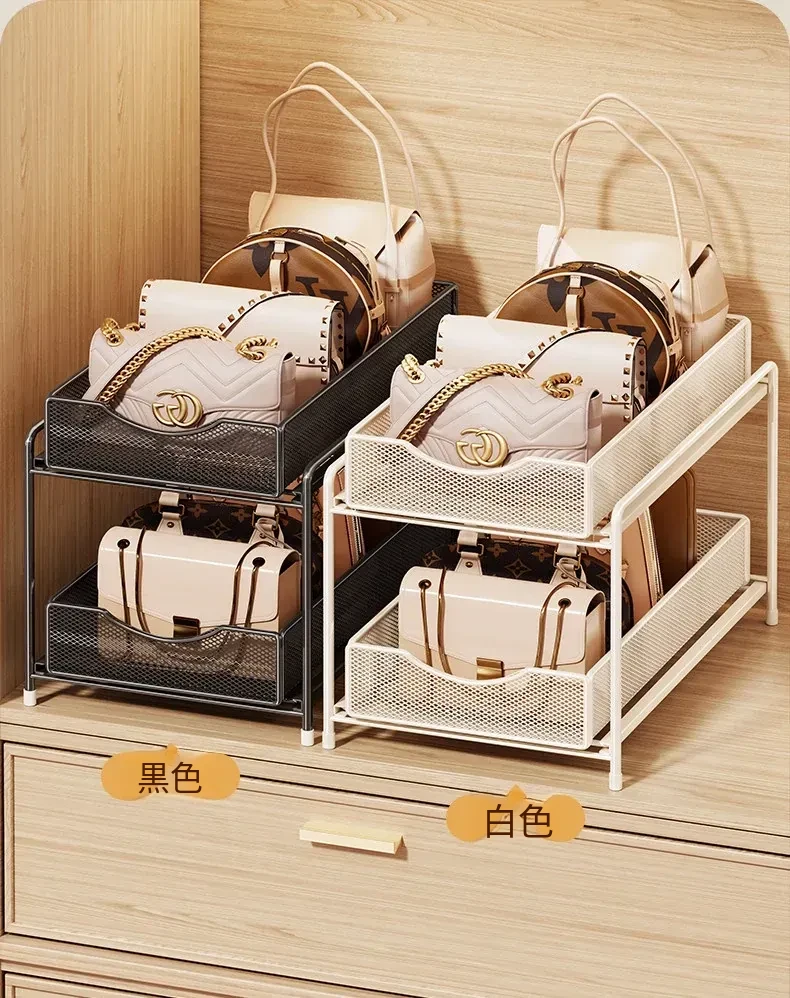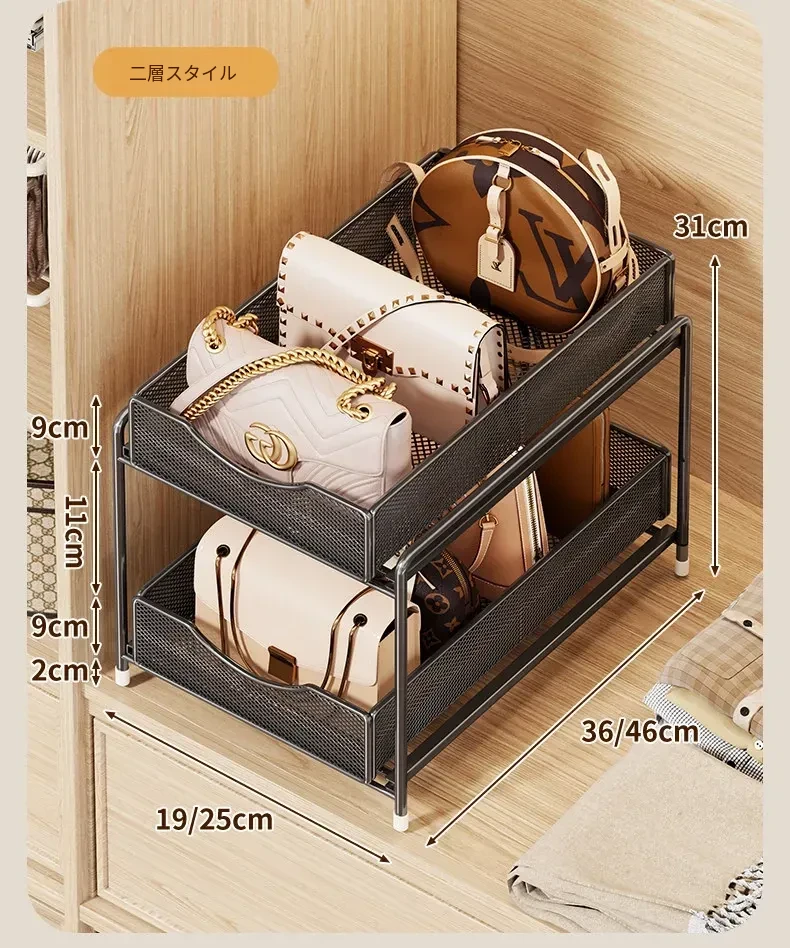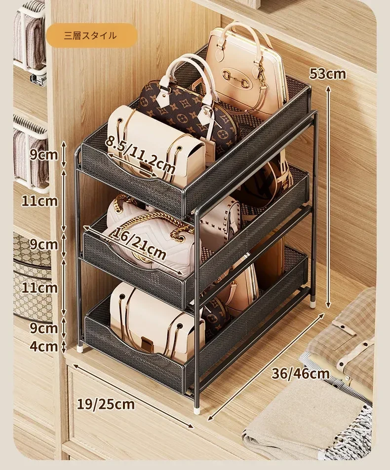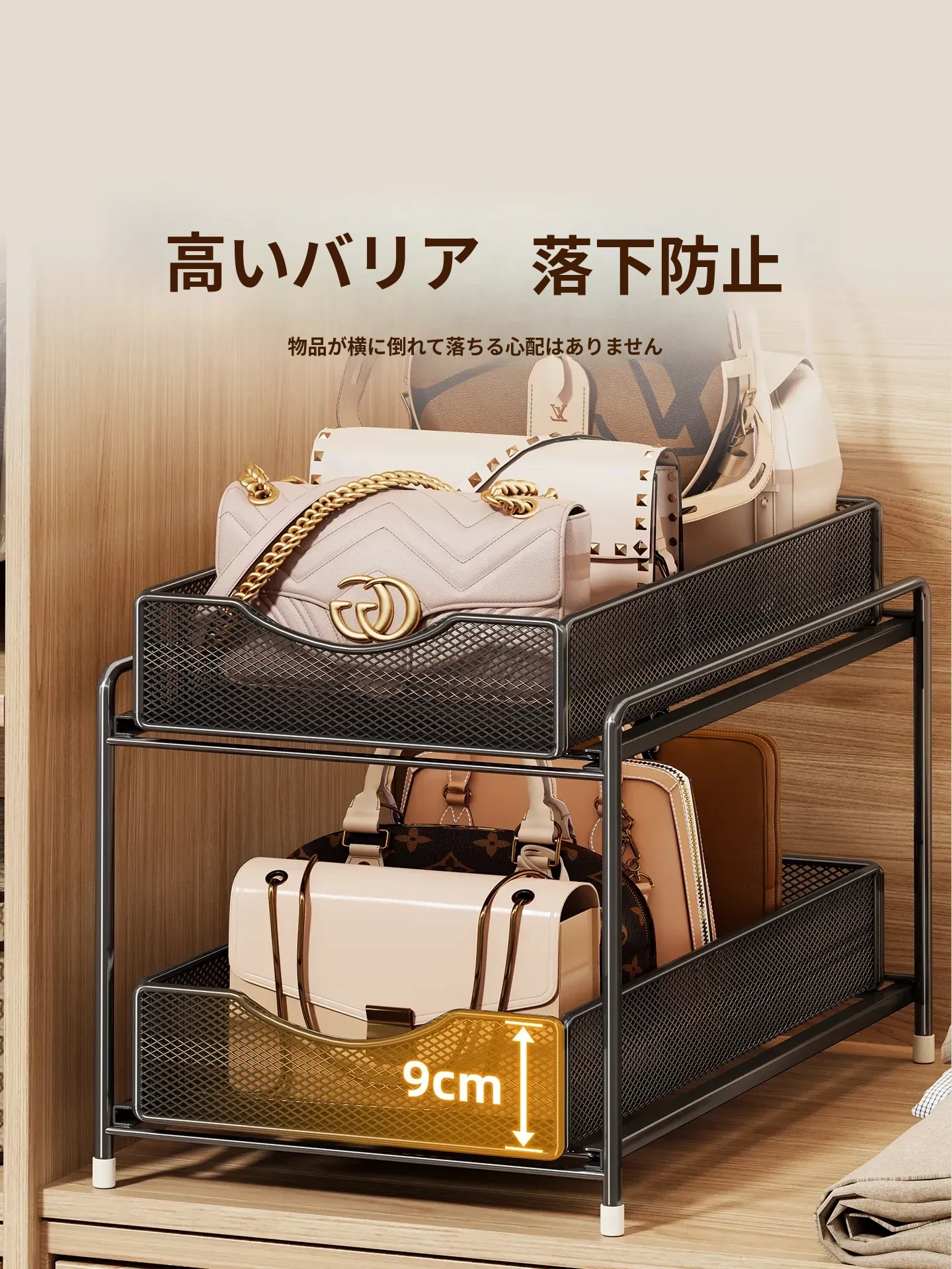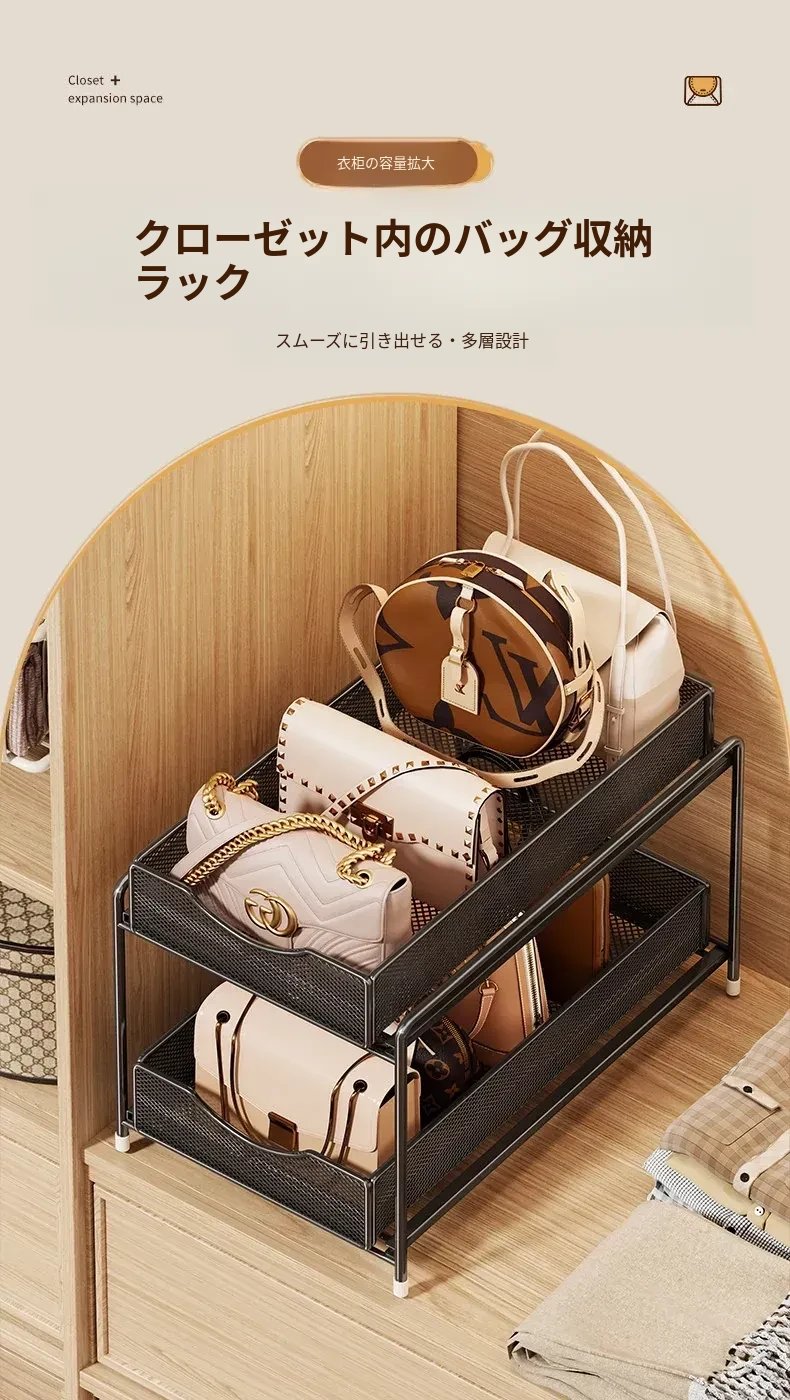 収納力抜群!バッグ収納ラック - 衣類やバッグを整理整頓できる多層仕切り付き!クローゼット内での皮製品や下着の収納に最適なハンガーラックです。あなたの衣類スペースをすっきりさせましょう!