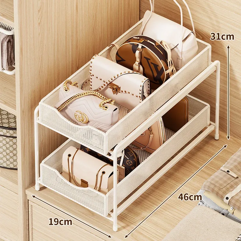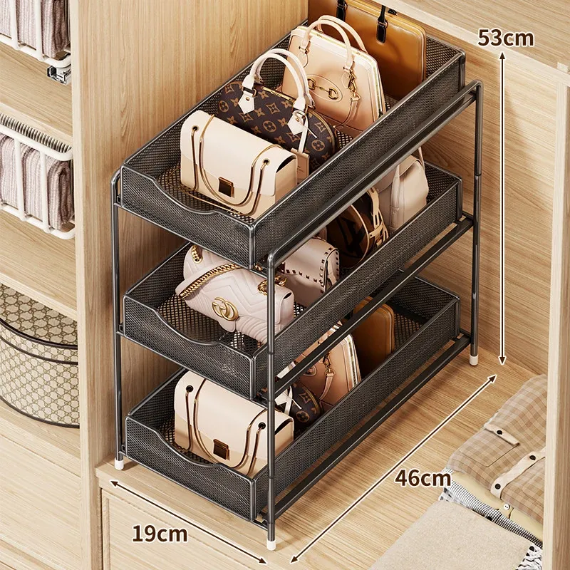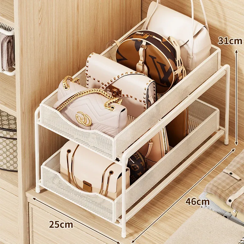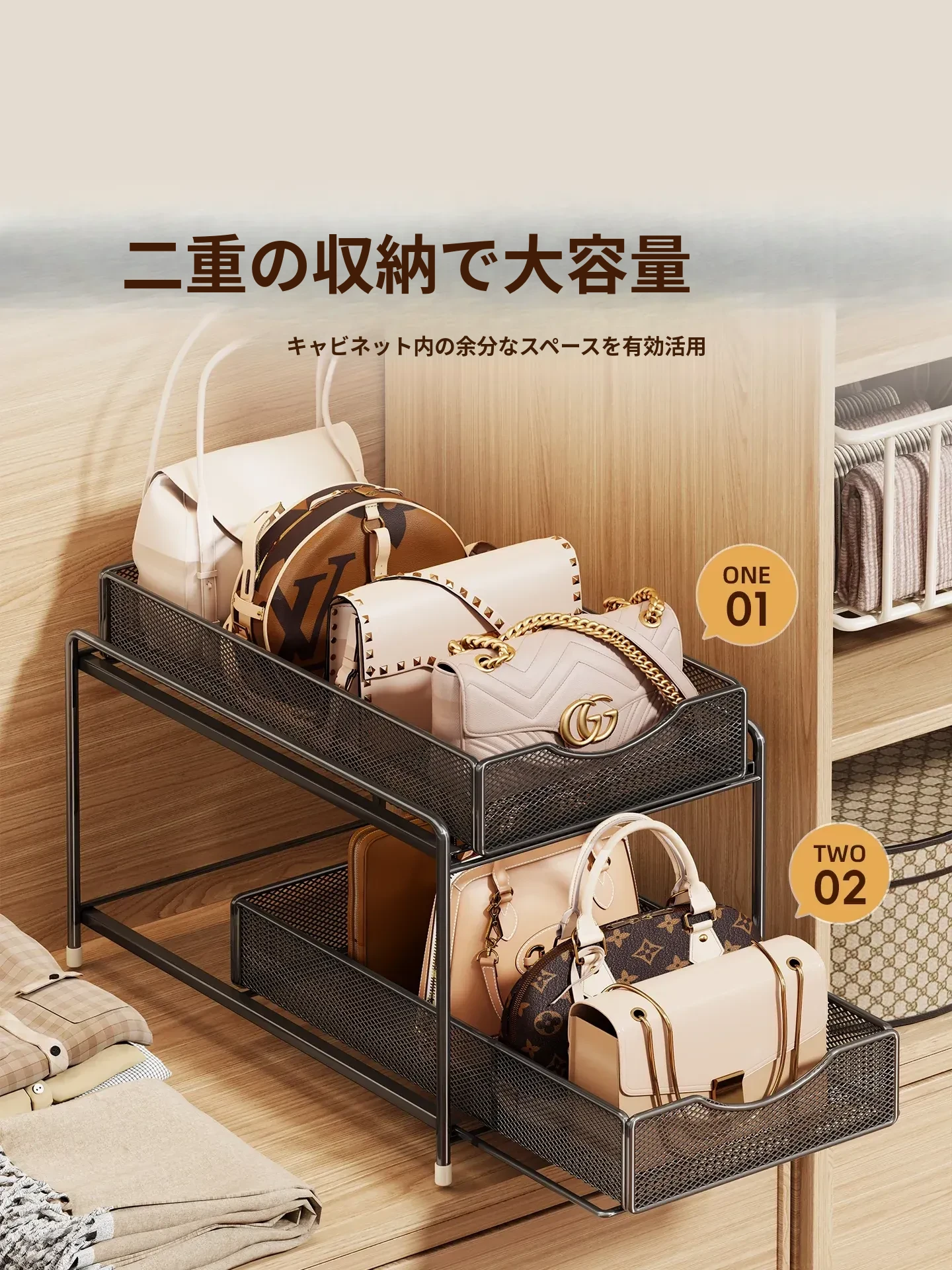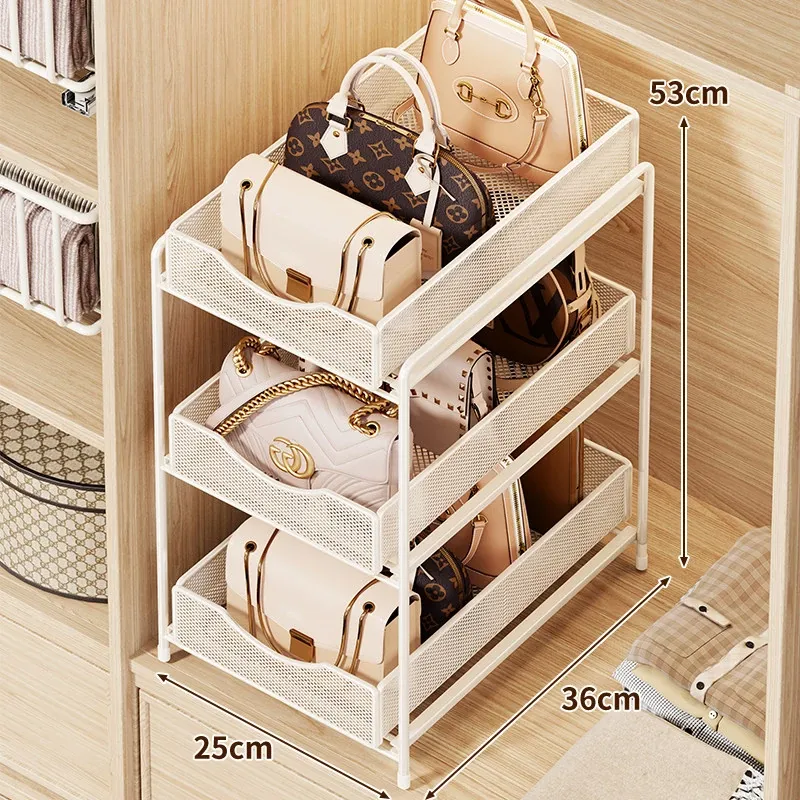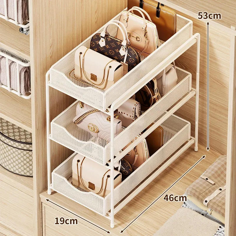 収納力抜群!バッグ収納ラック - 衣類やバッグを整理整頓できる多層仕切り付き!クローゼット内での皮製品や下着の収納に最適なハンガーラックです。あなたの衣類スペースをすっきりさせましょう!