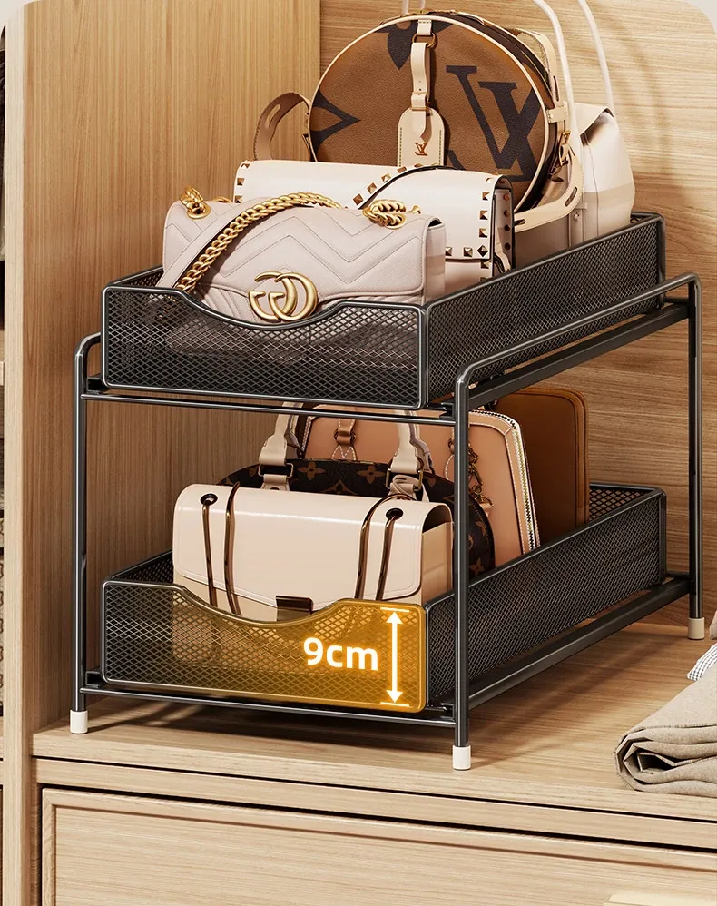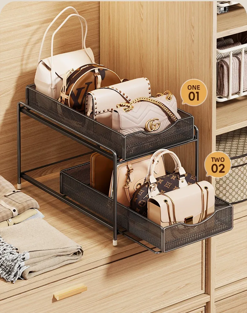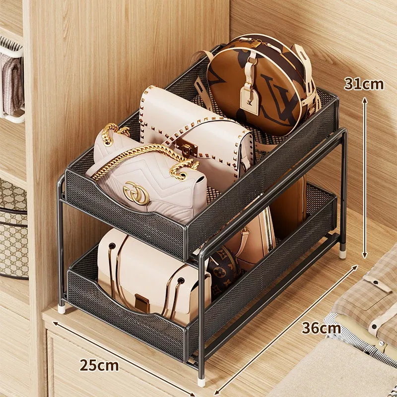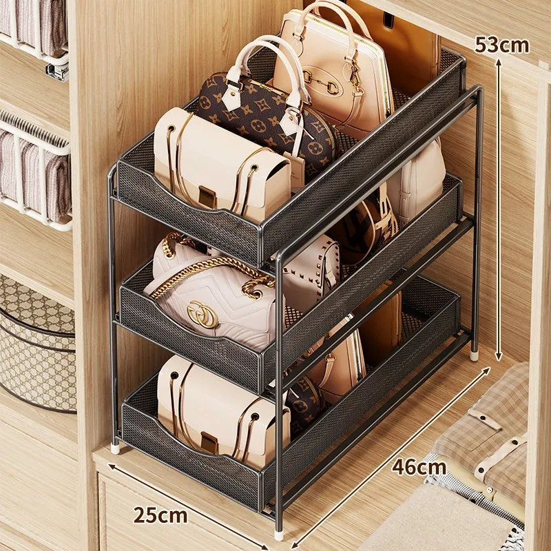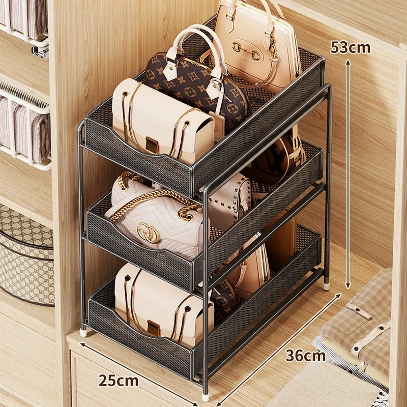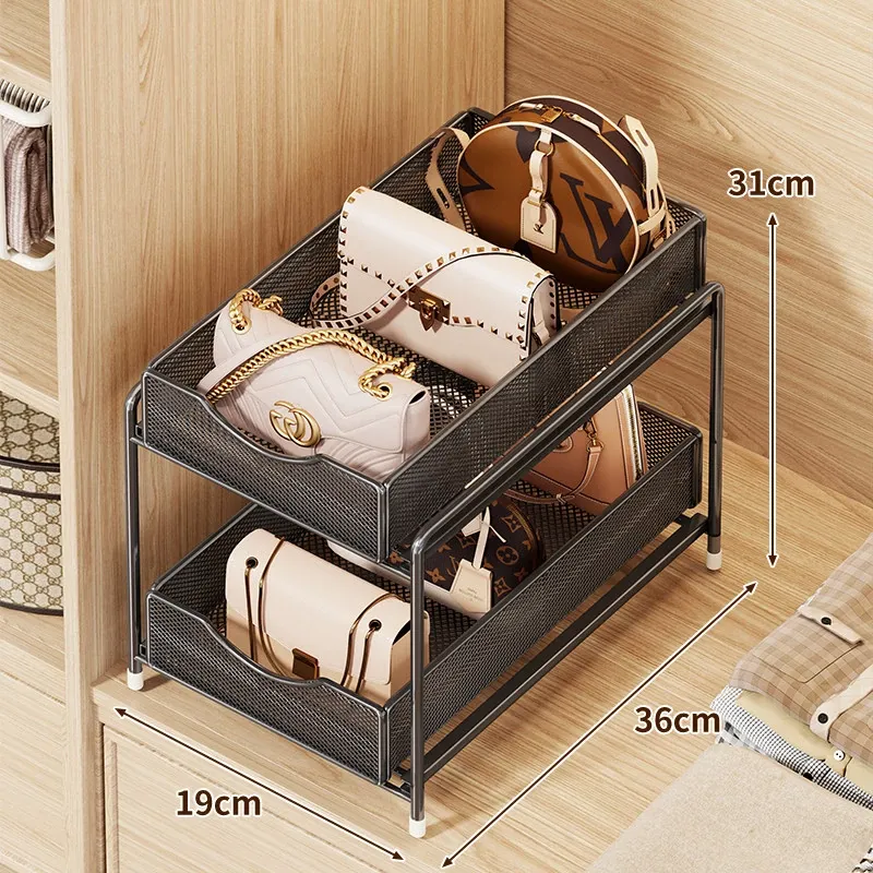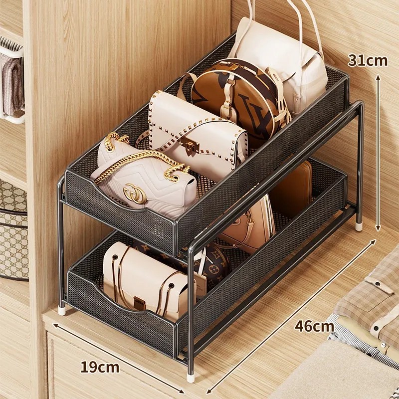 収納力抜群!バッグ収納ラック - 衣類やバッグを整理整頓できる多層仕切り付き!クローゼット内での皮製品や下着の収納に最適なハンガーラックです。あなたの衣類スペースをすっきりさせましょう!