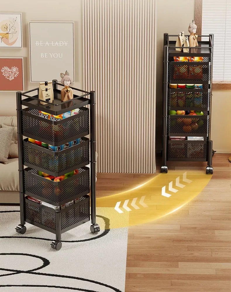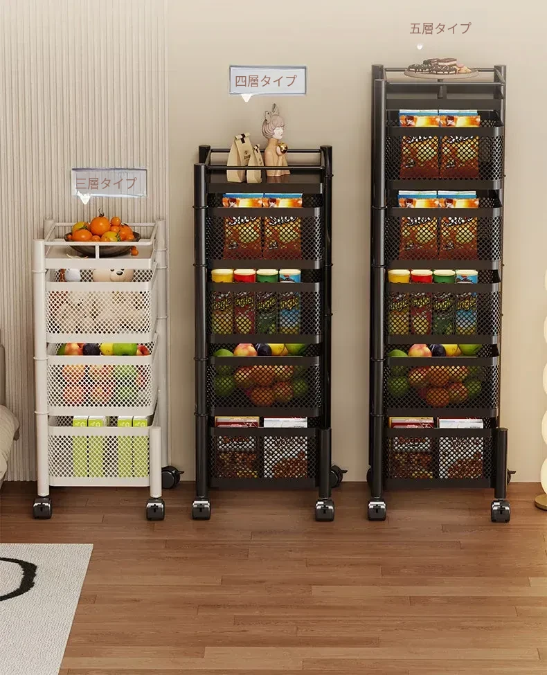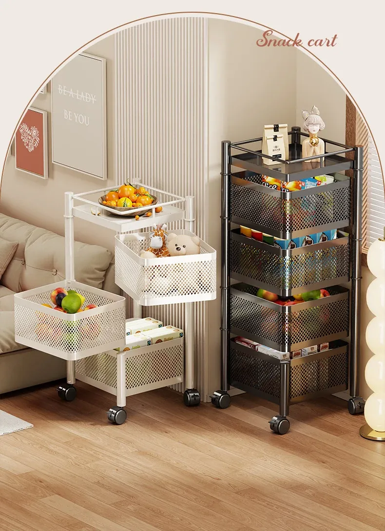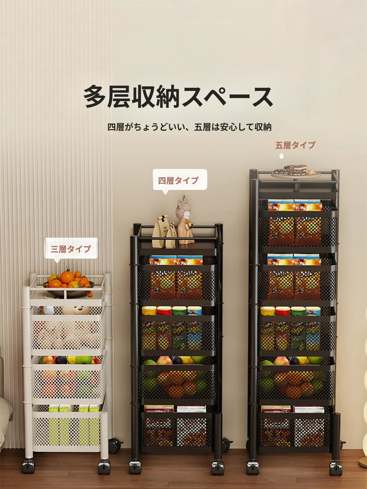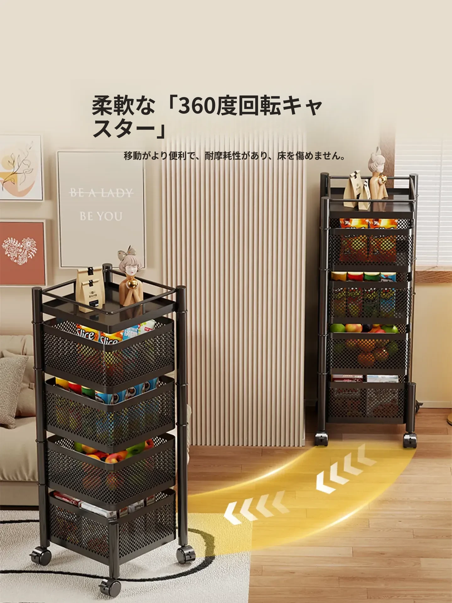回転式マルチ収納キャリーワゴン - おしゃれで便利なスナック・フルーツ・書類整理ラック!多層デザインでスペースを有効活用!どこでも簡単に移動可能!